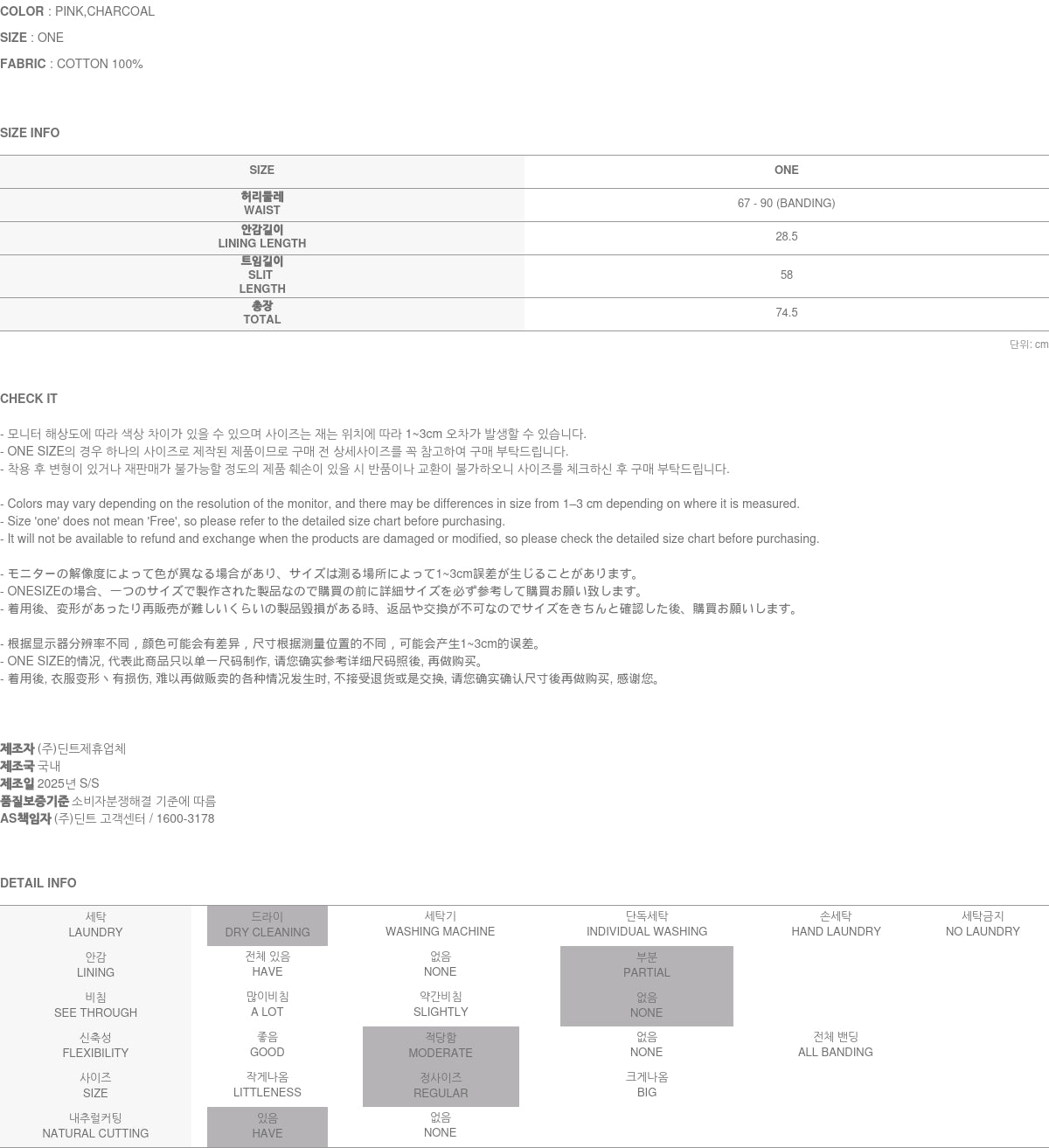 Clothing from DINT Co., Ltd. may become damaged or deformed if machine washed or tumble dried. We strongly recommend following the care instructions provided below.