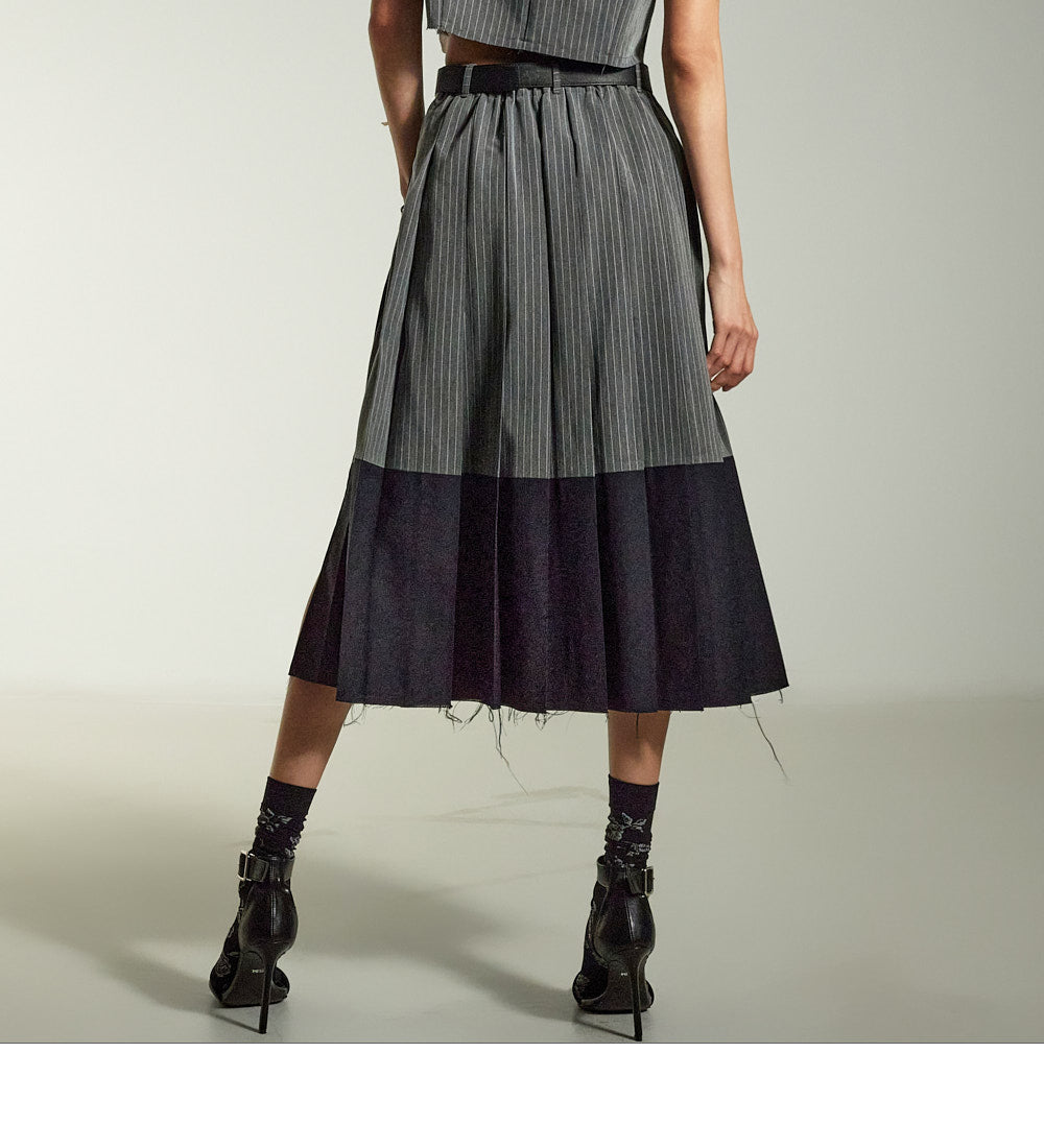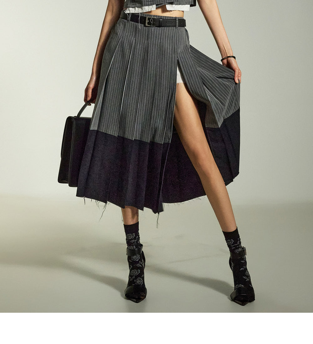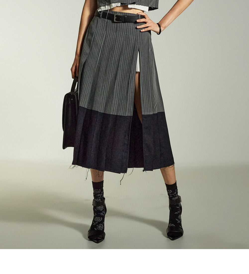 This is a uniquely styled cut-off design midi skirt.