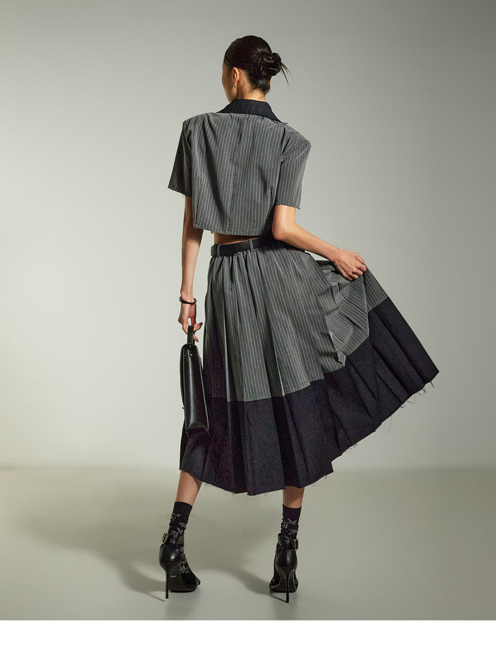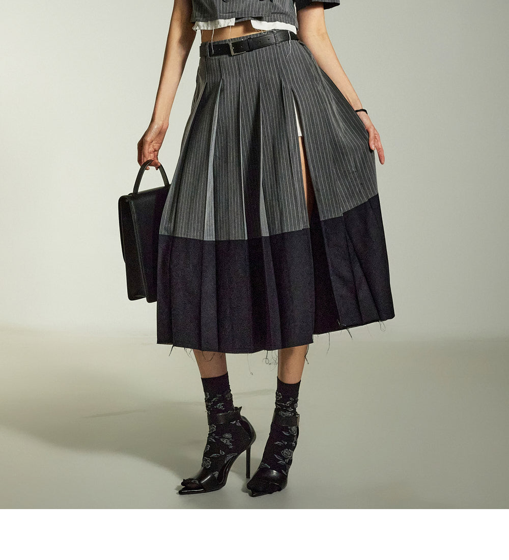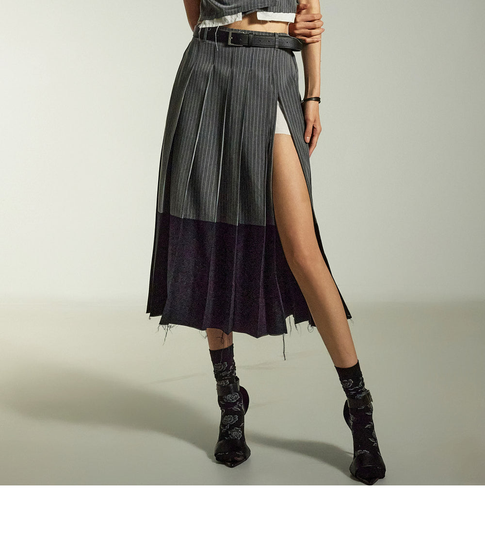 This is a uniquely styled cut-off design midi skirt.