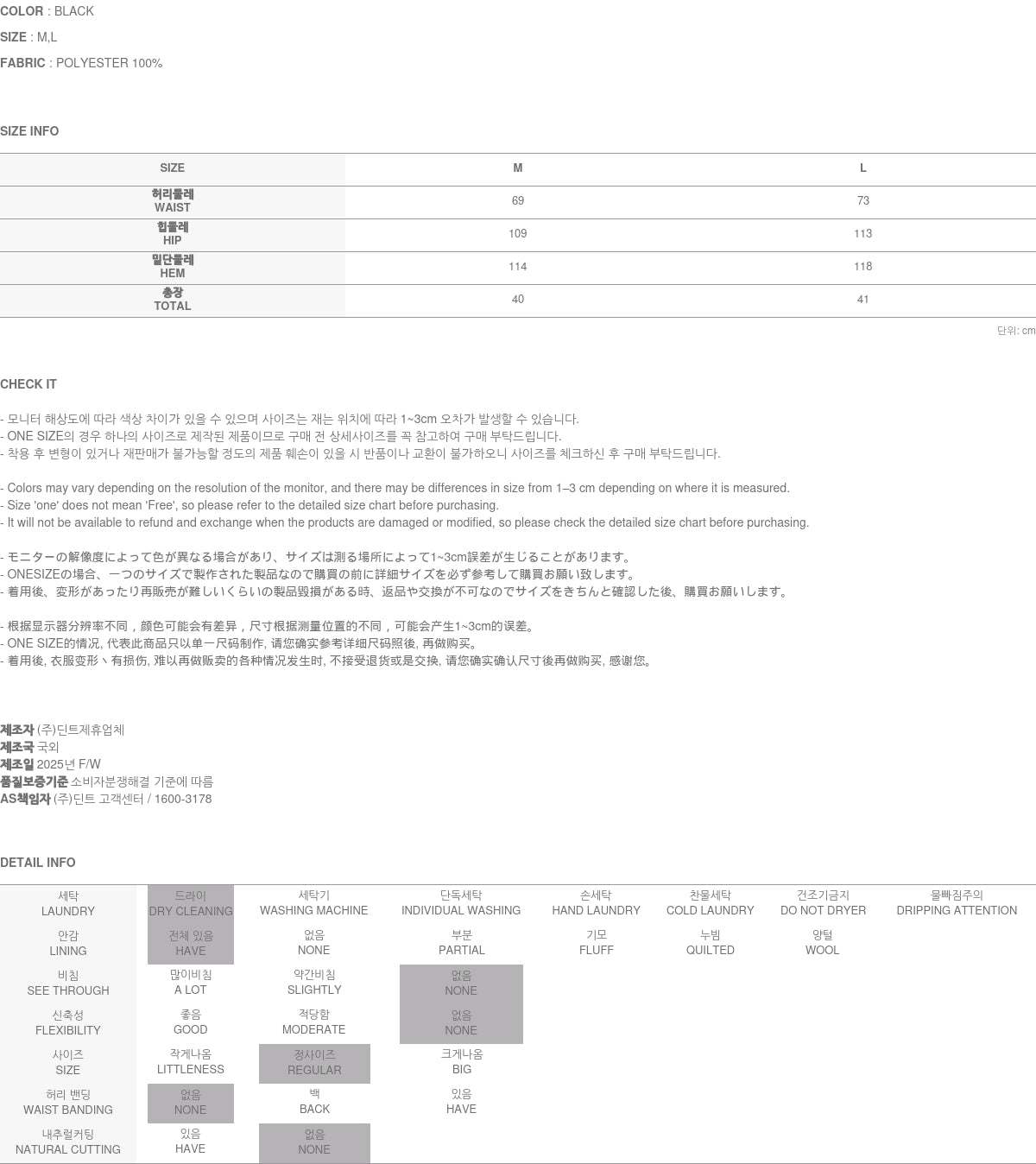 Clothing from DINT Co., Ltd. may become damaged or deformed if machine washed or tumble dried. We strongly recommend following the care instructions provided below.