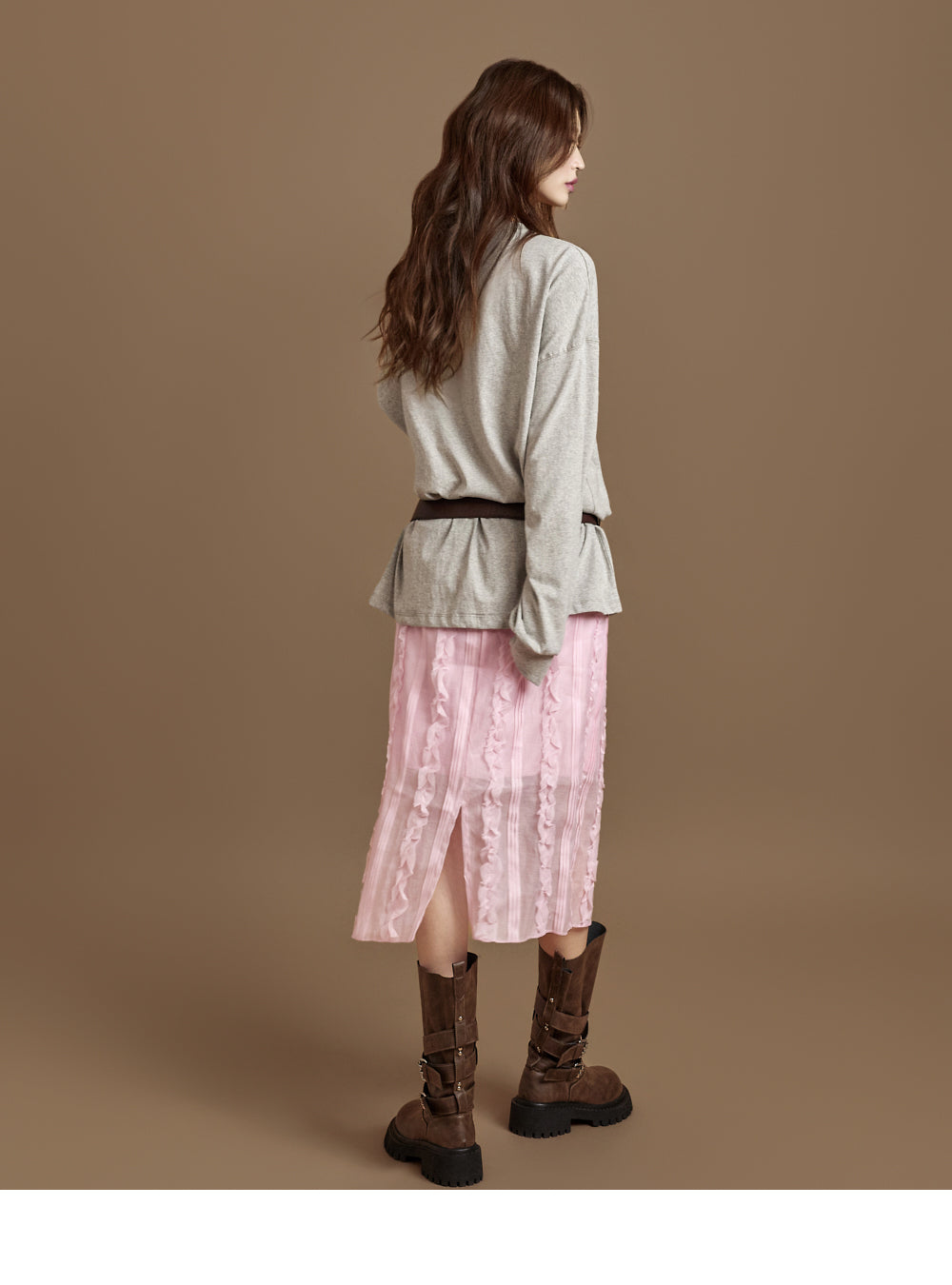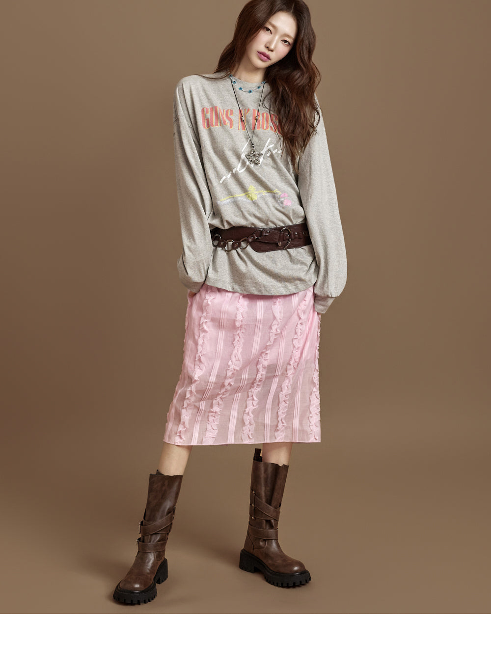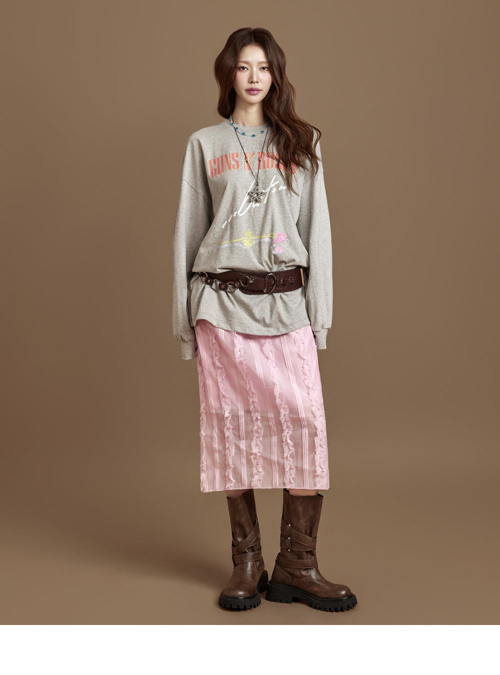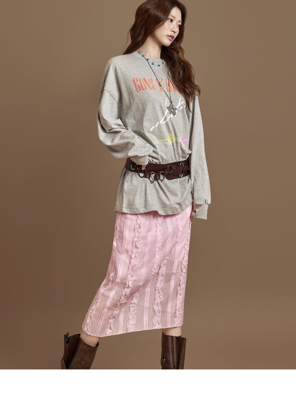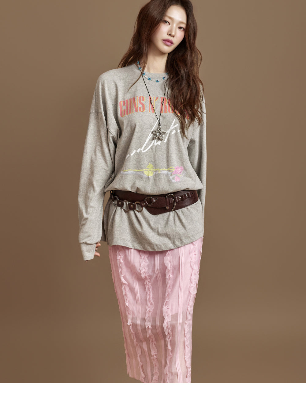 This versatile piece adds a romantic touch to a casual look.