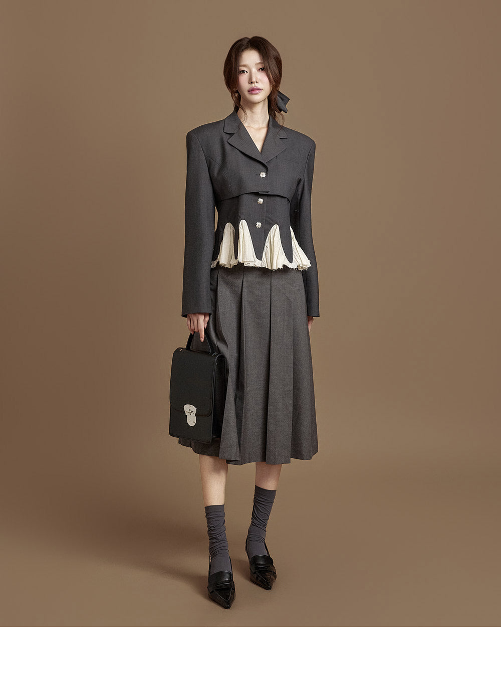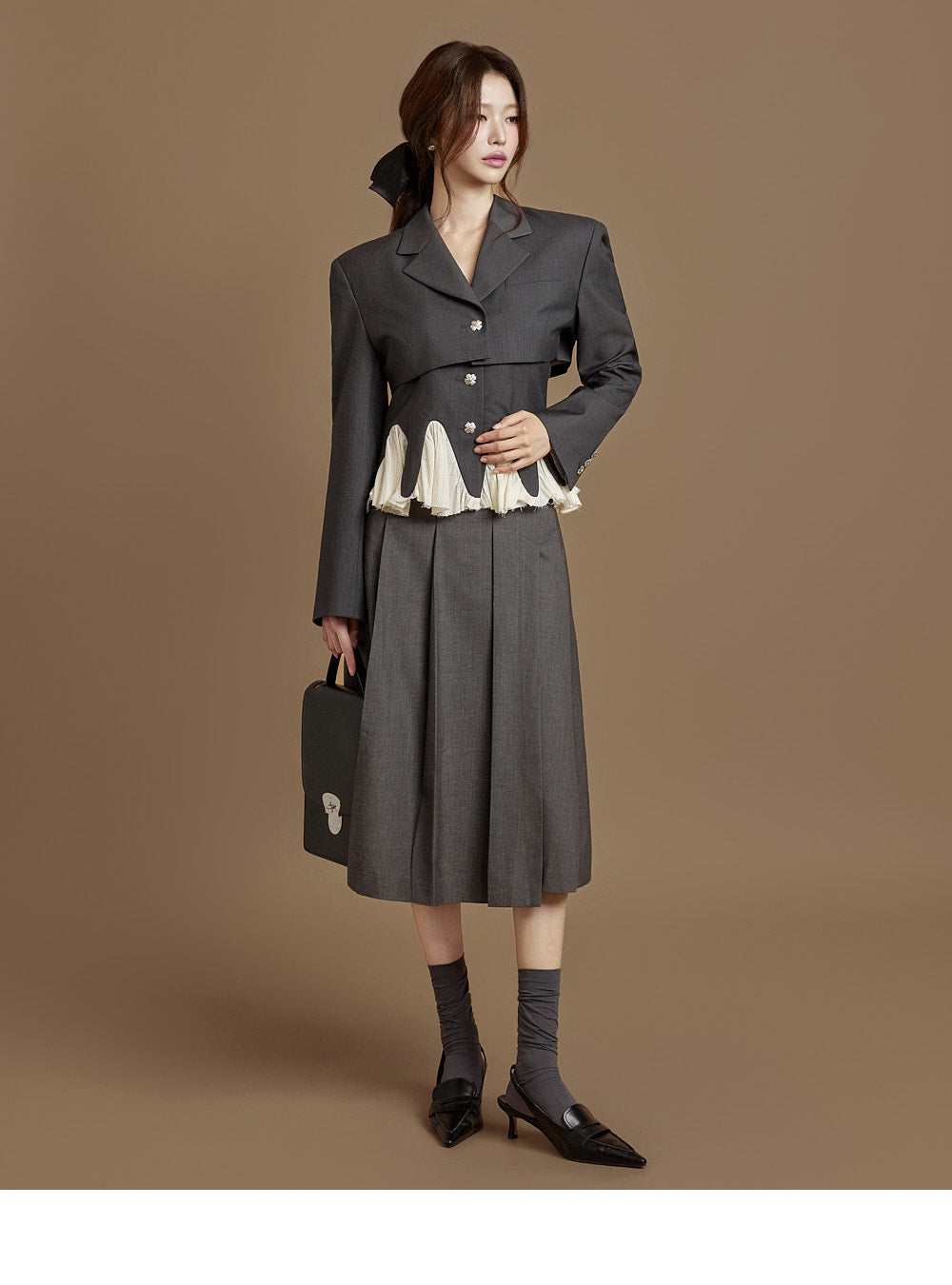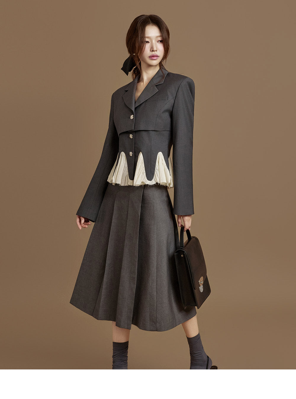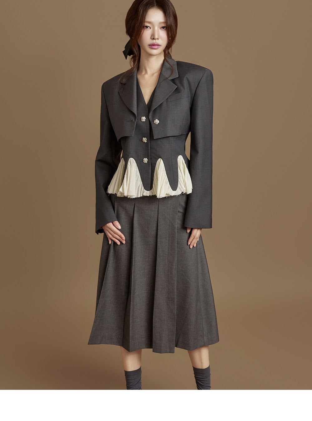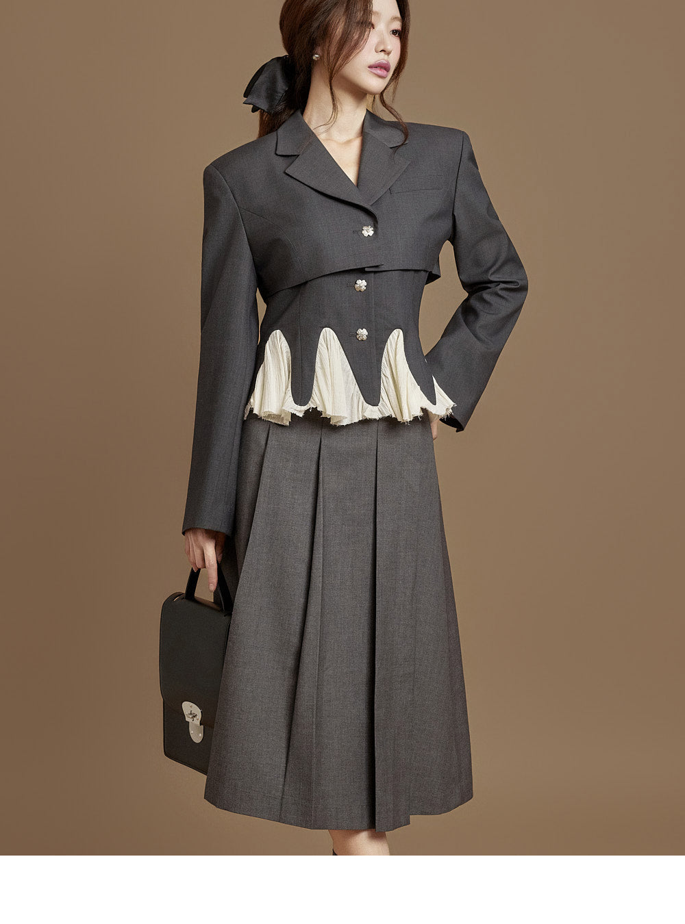 This pleated wrap skirt exudes a modern vibe.