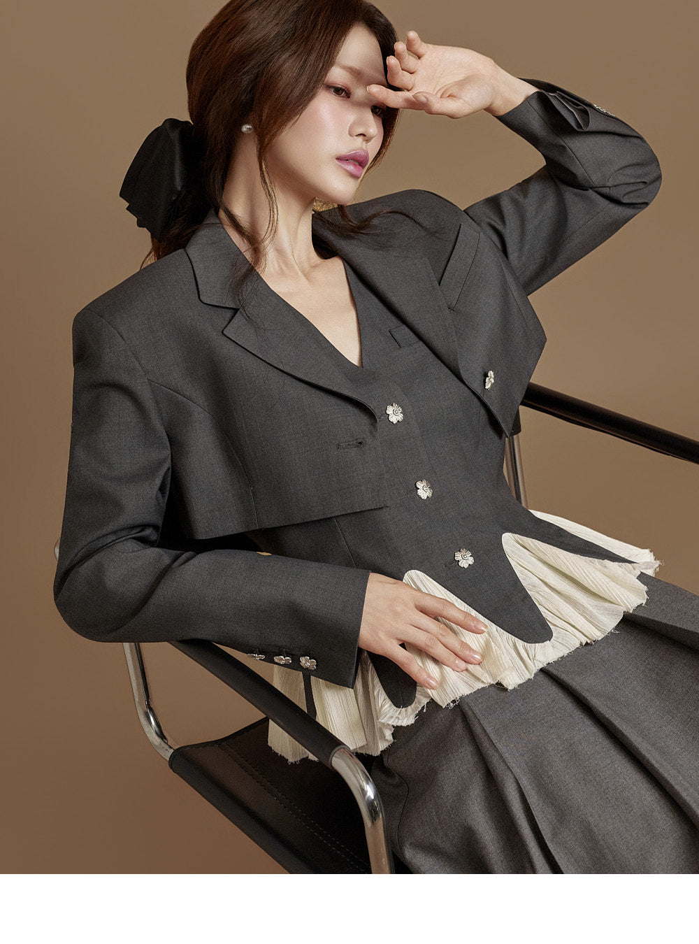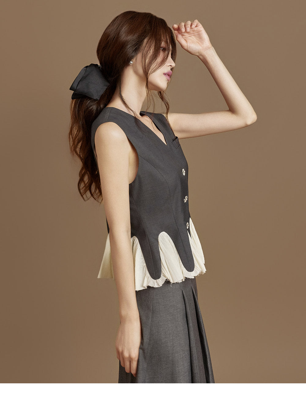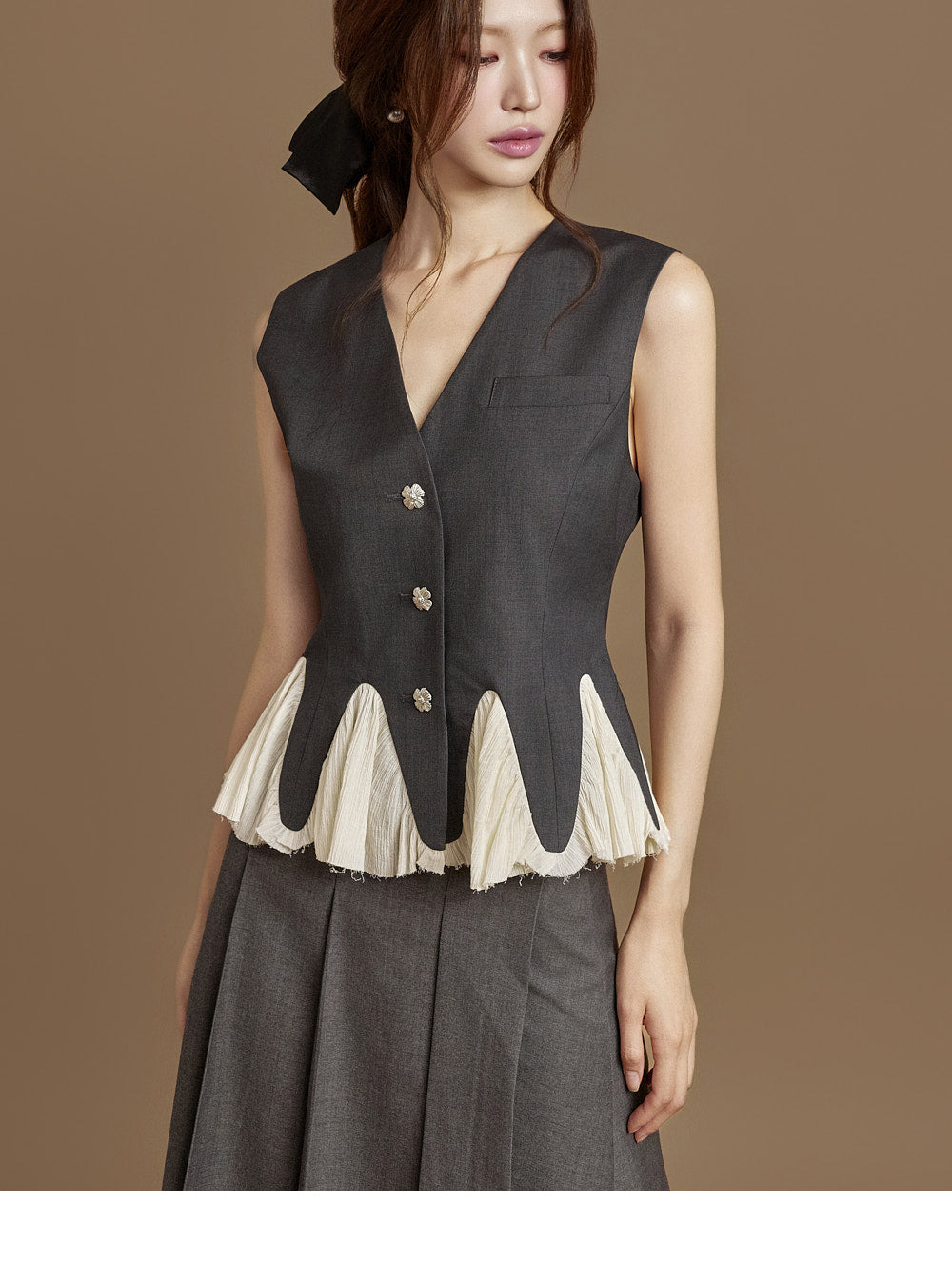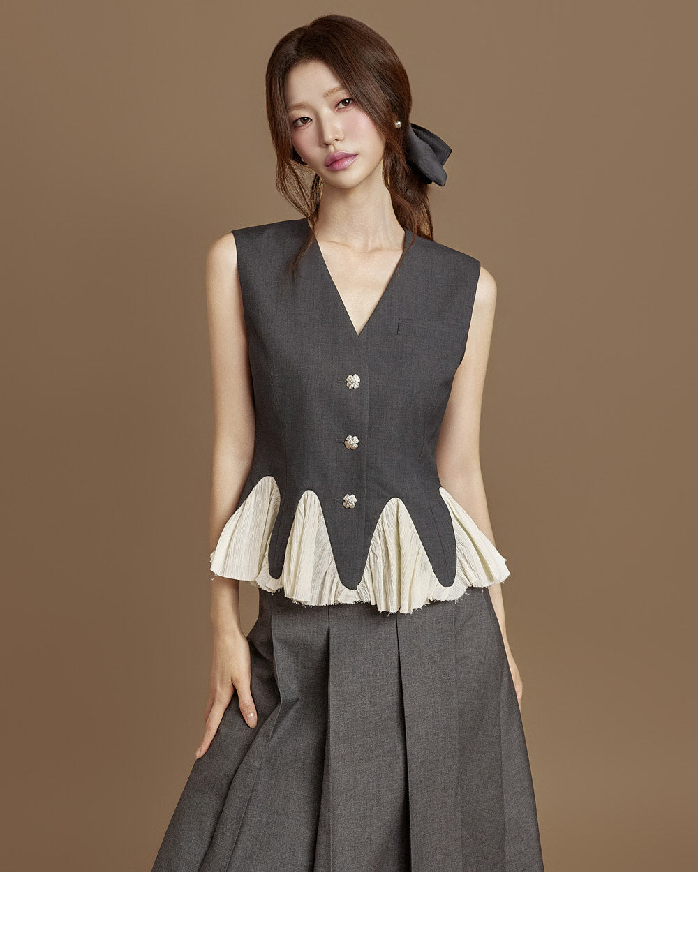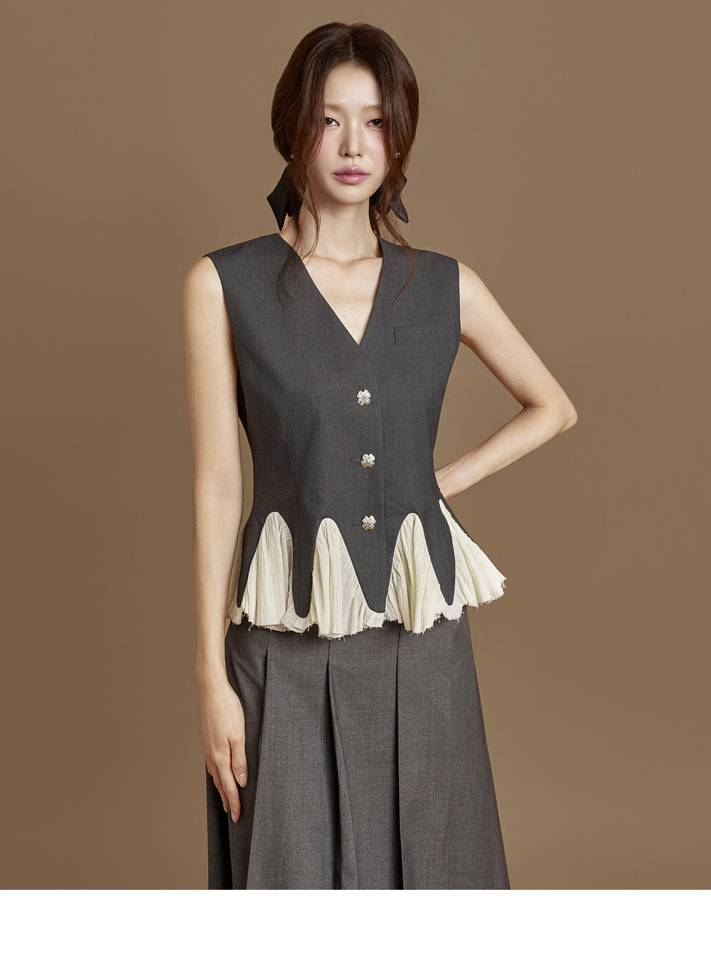 This pleated wrap skirt exudes a modern vibe.