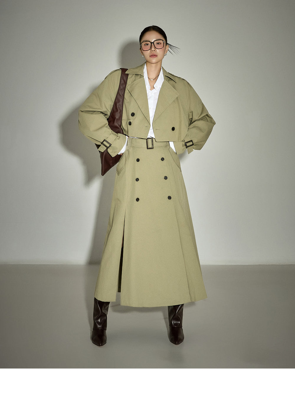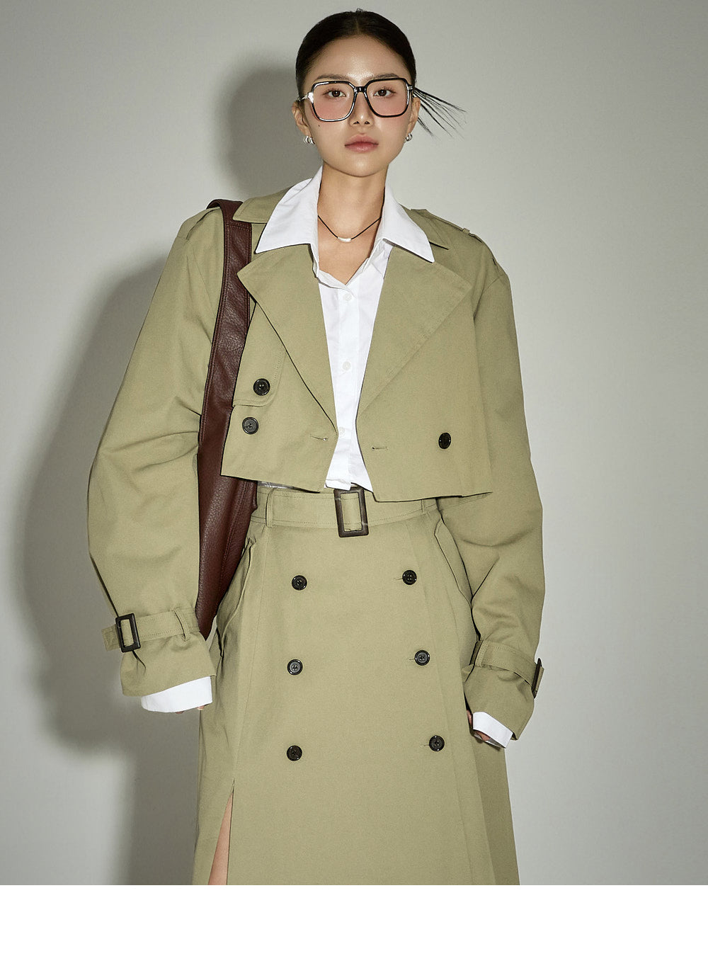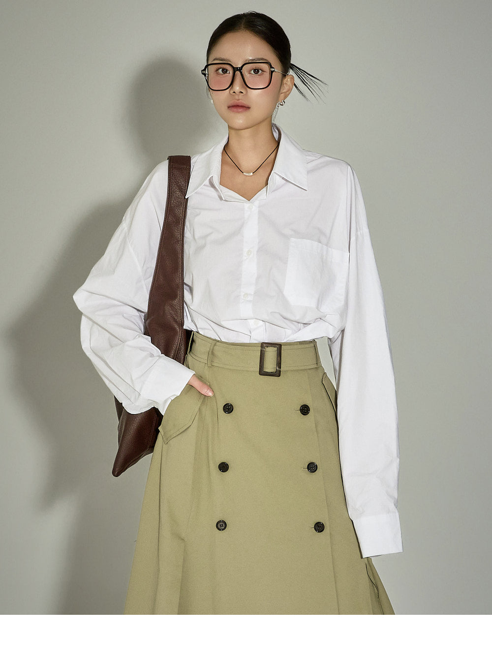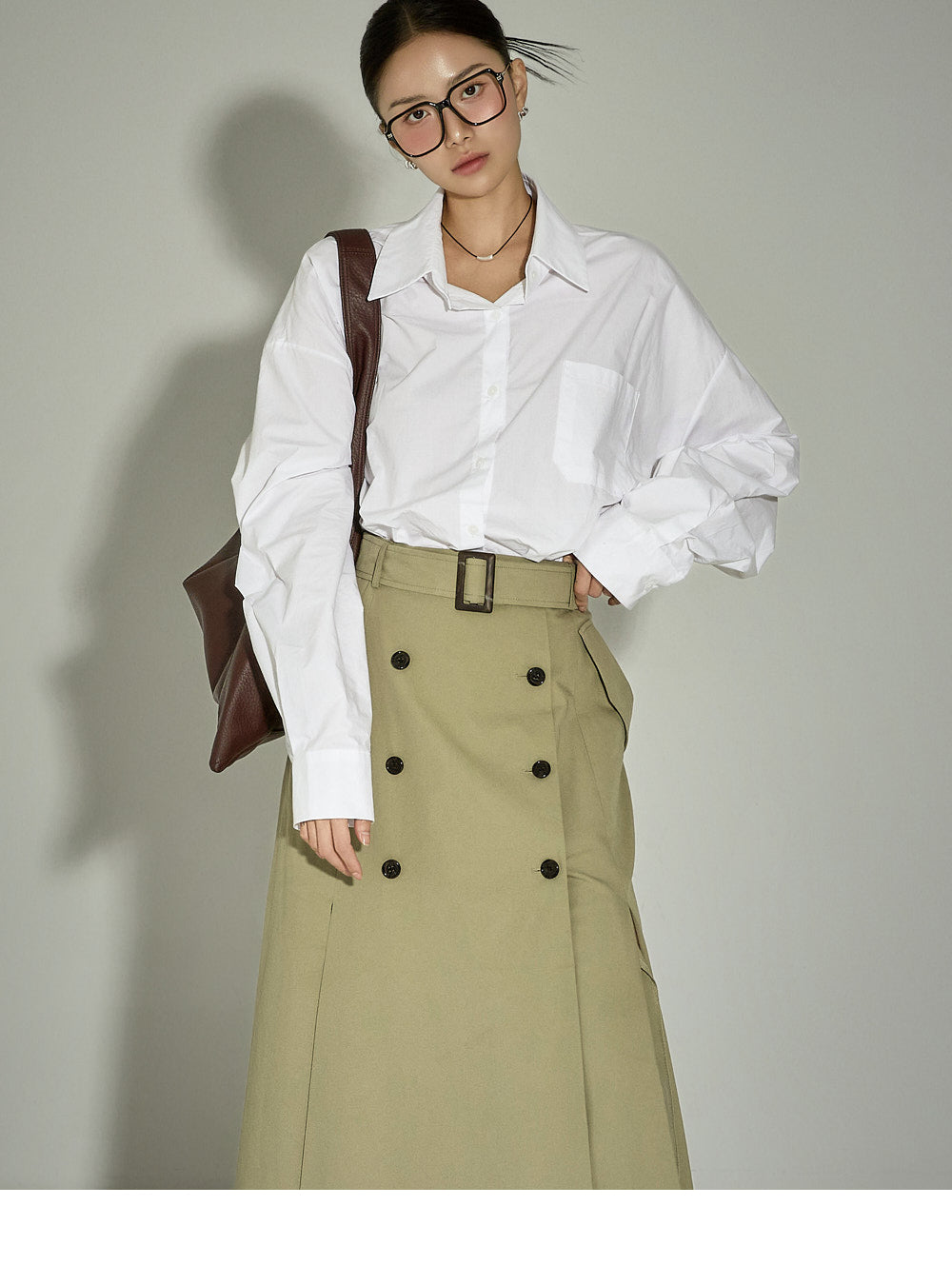 This belt set trench skirt exudes a casual vibe.
