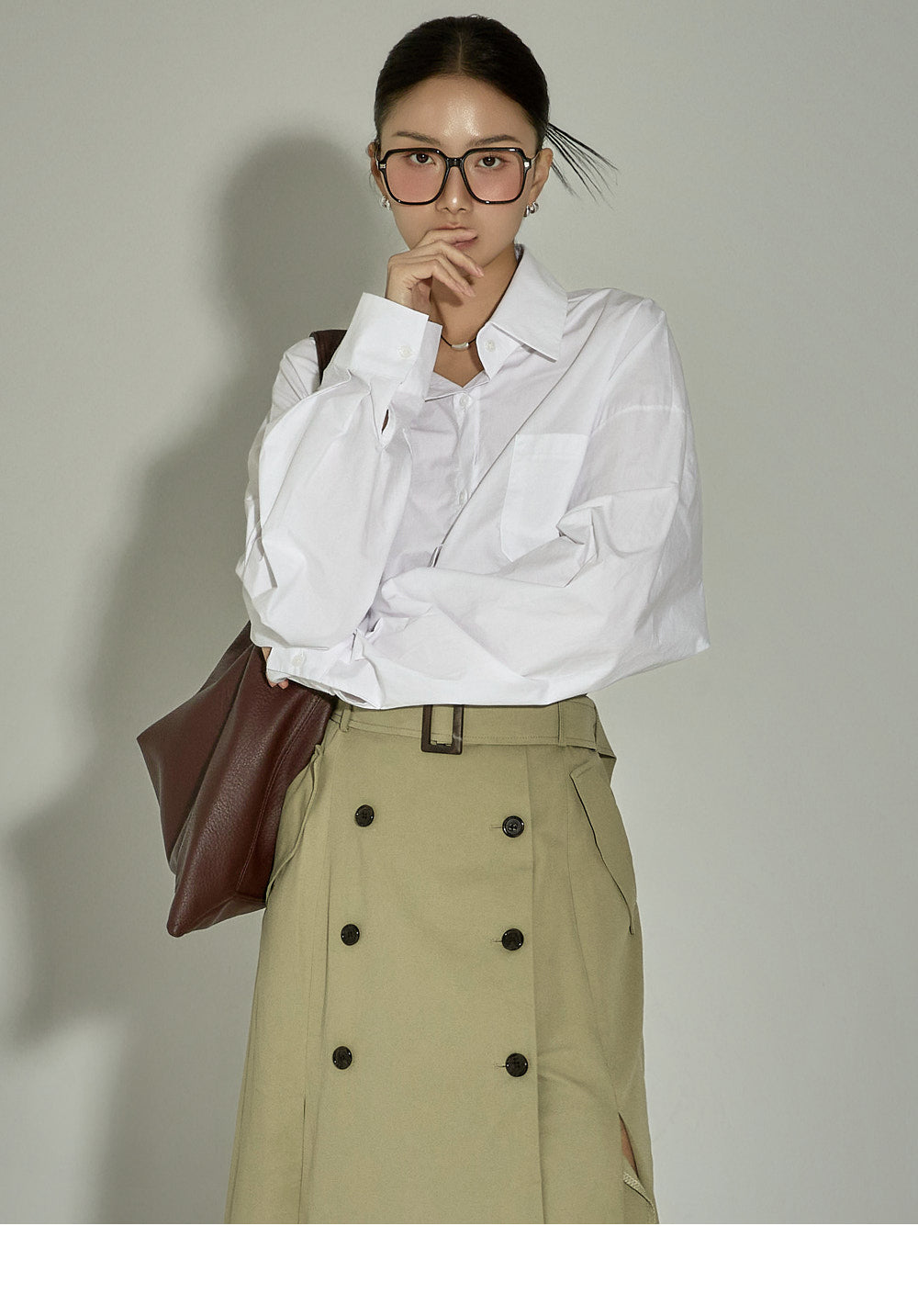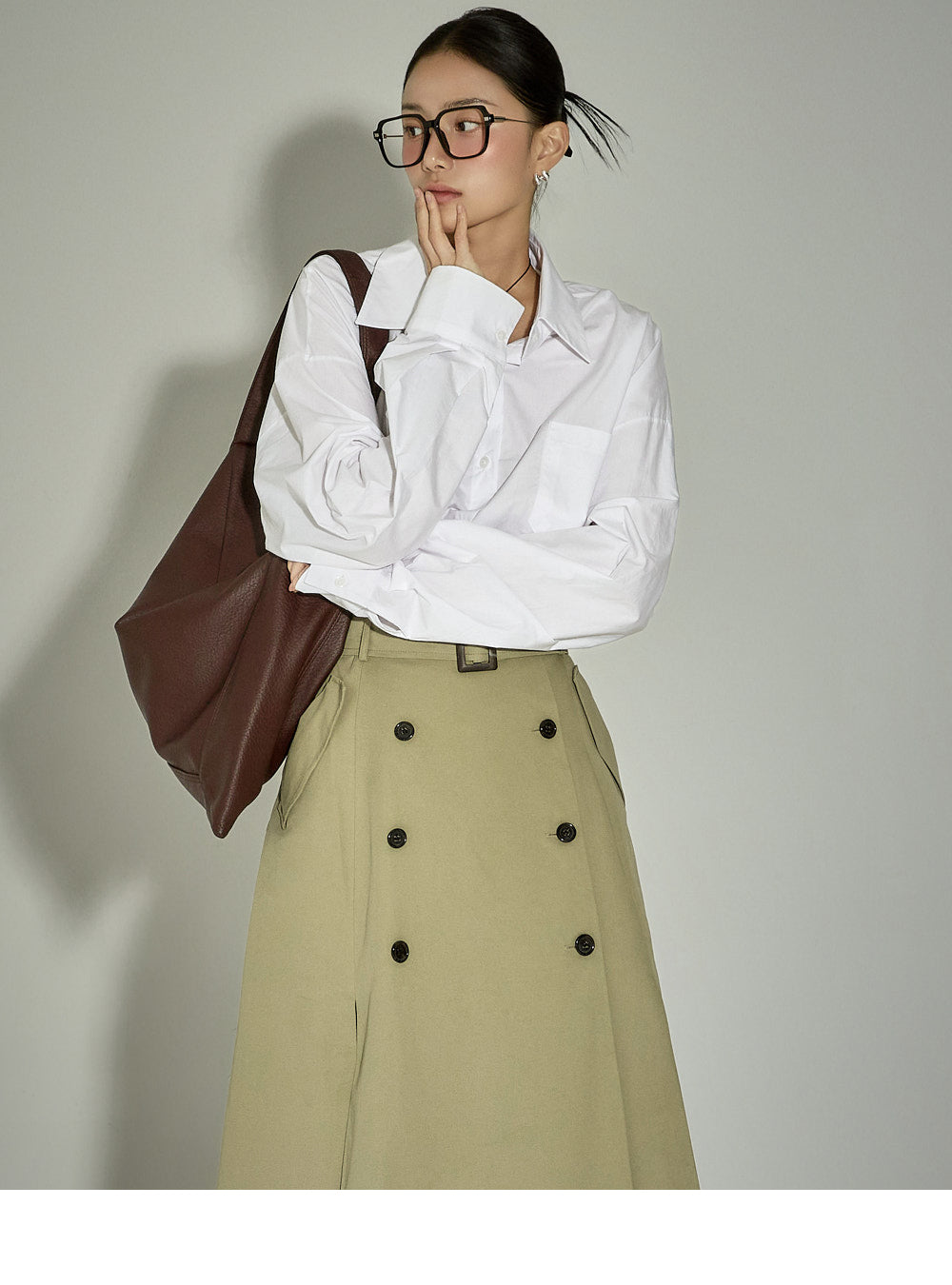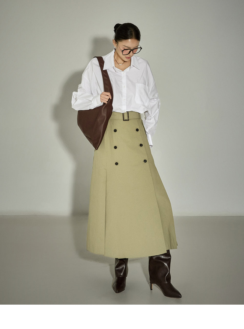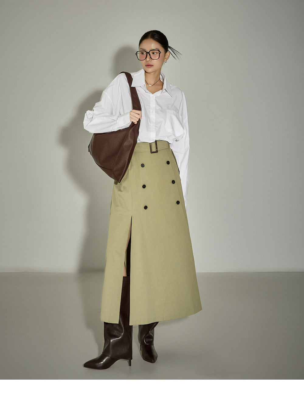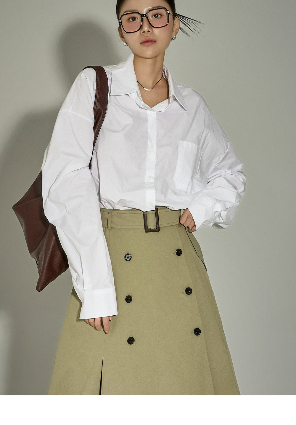 This belt set trench skirt exudes a casual vibe.