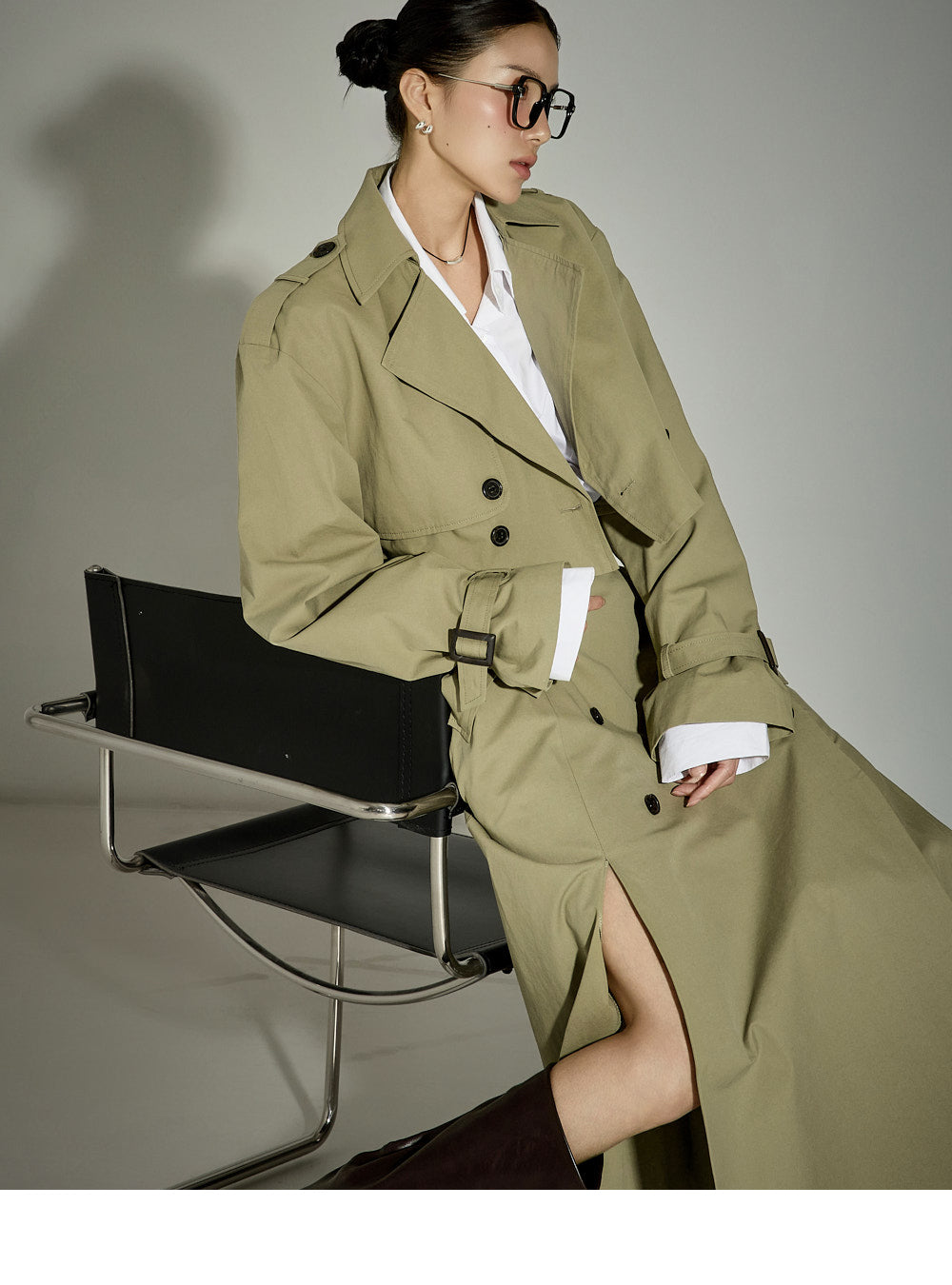 The 171cm model is wearing size ONE in the KHAKI color.