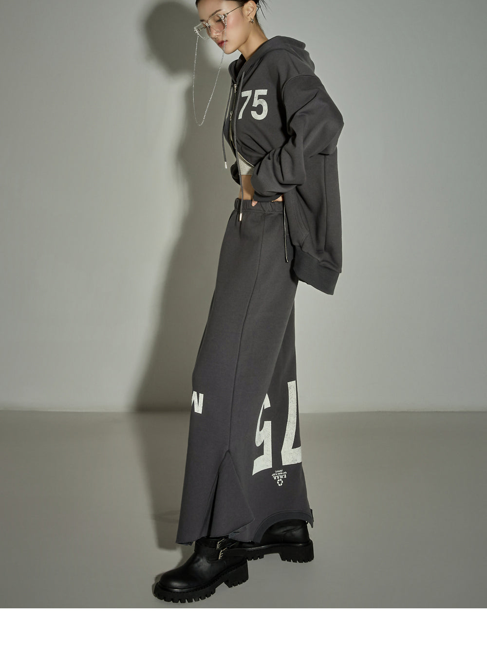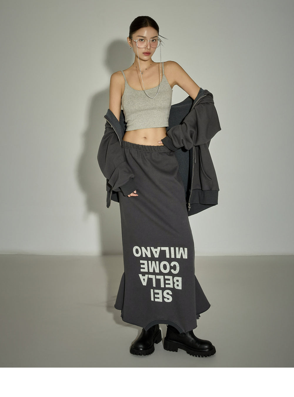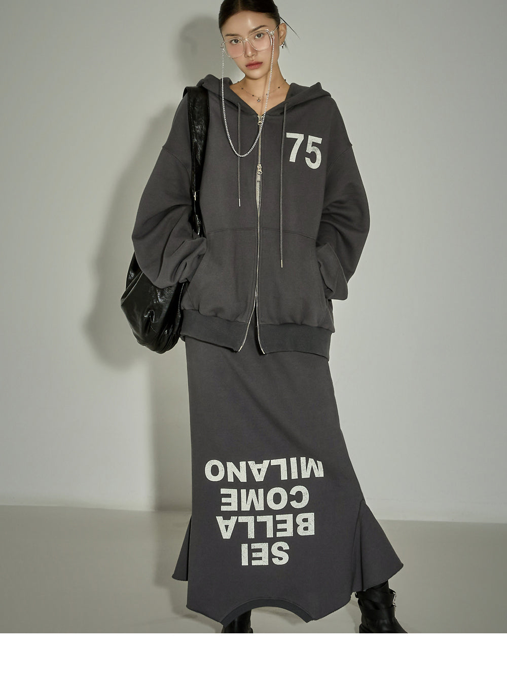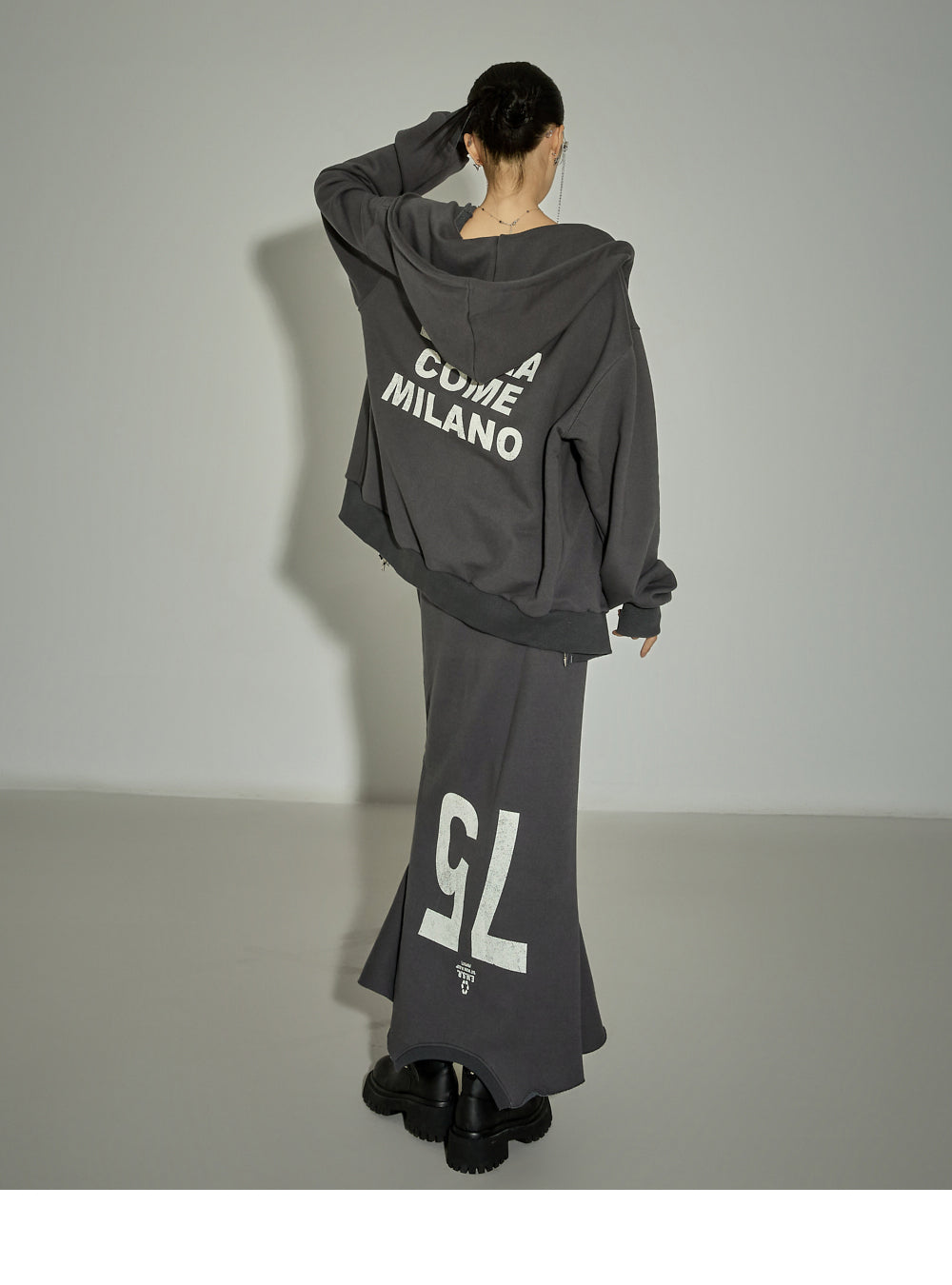 The 171cm model is wearing size One in CHARCOAL.