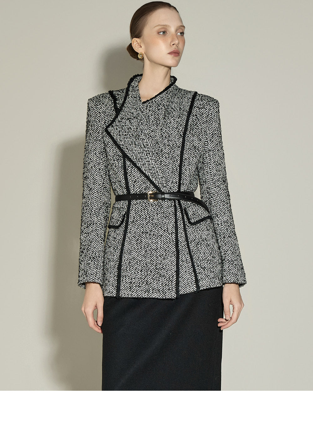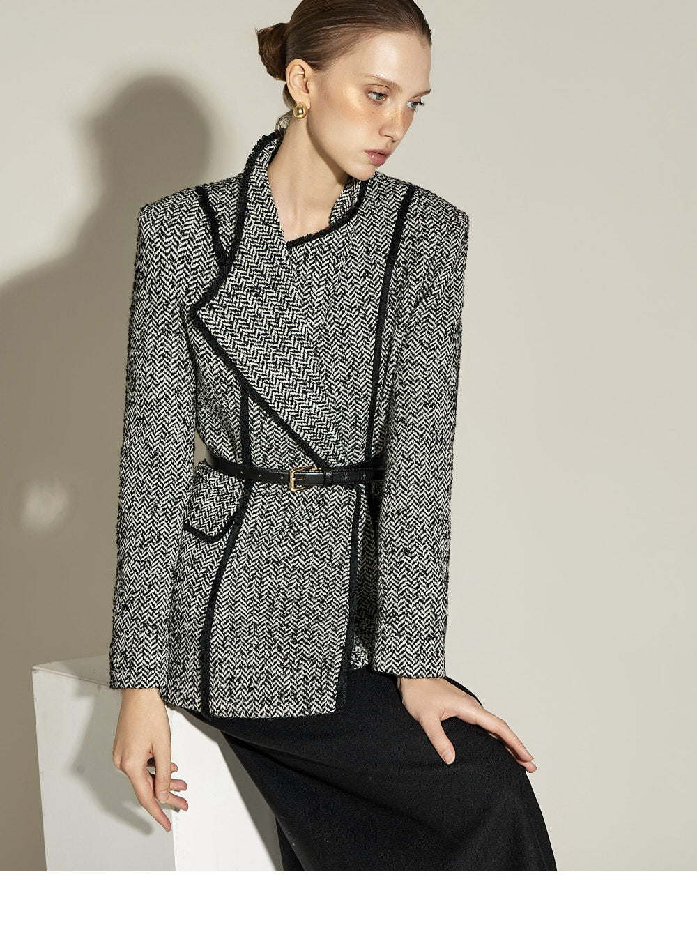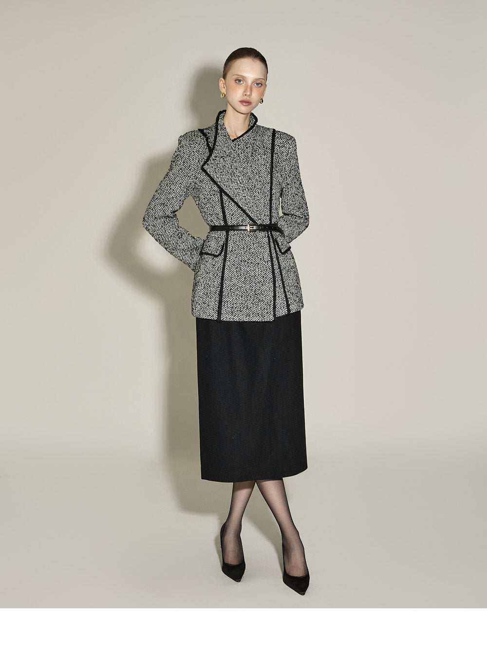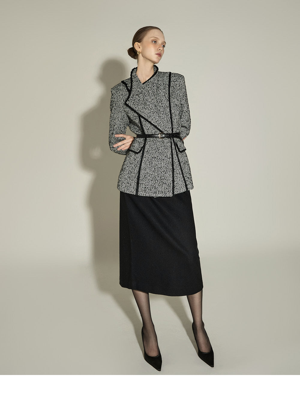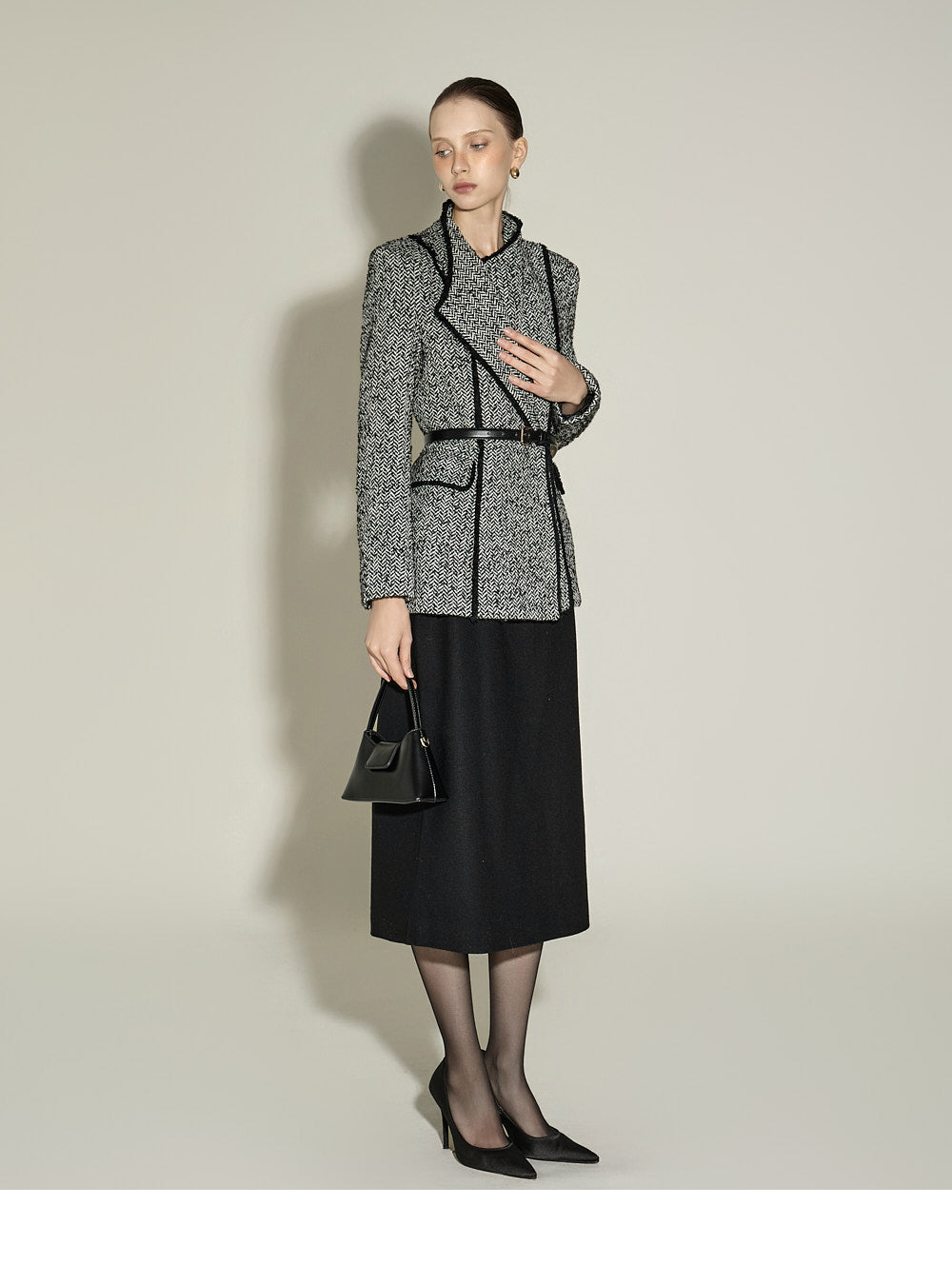 This is a slim H-line skirt with a modern vibe.