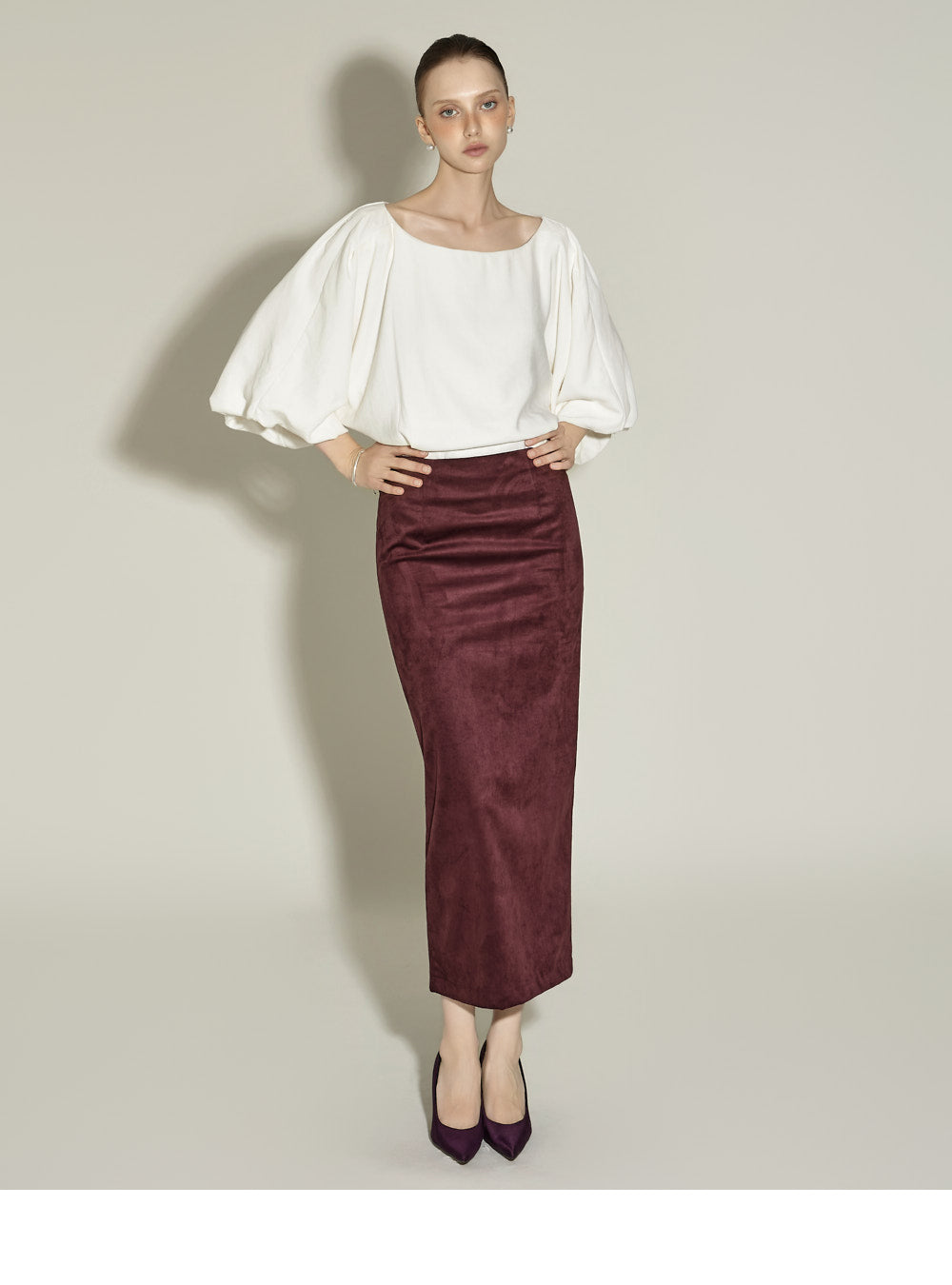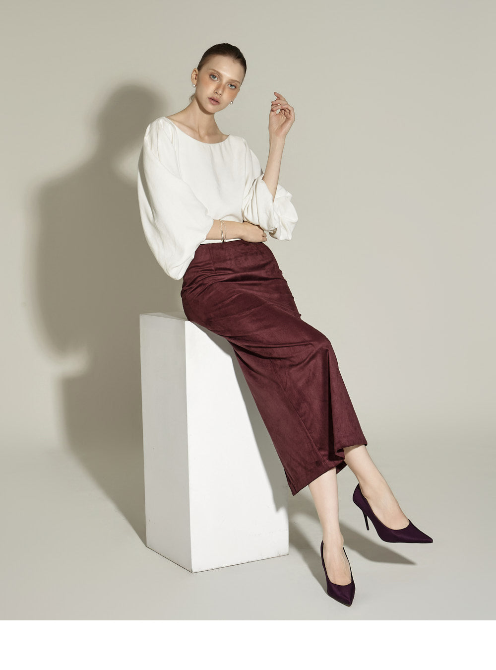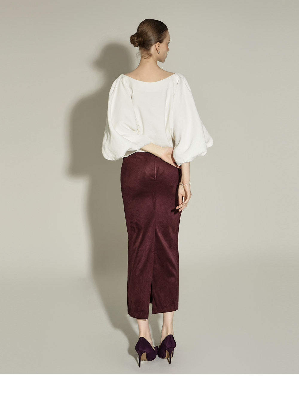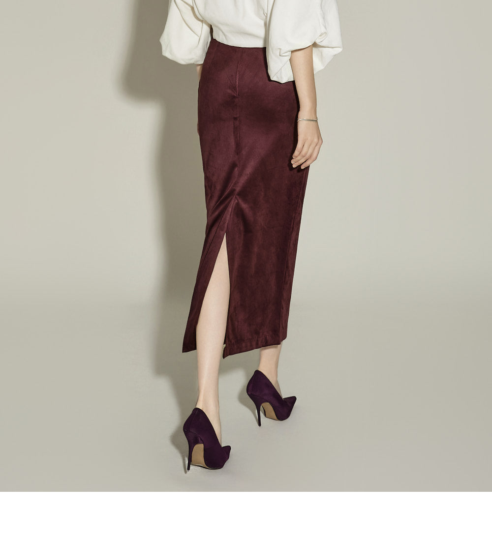 The back slit detail allows for easy movement, creating a feminine silhouette.
