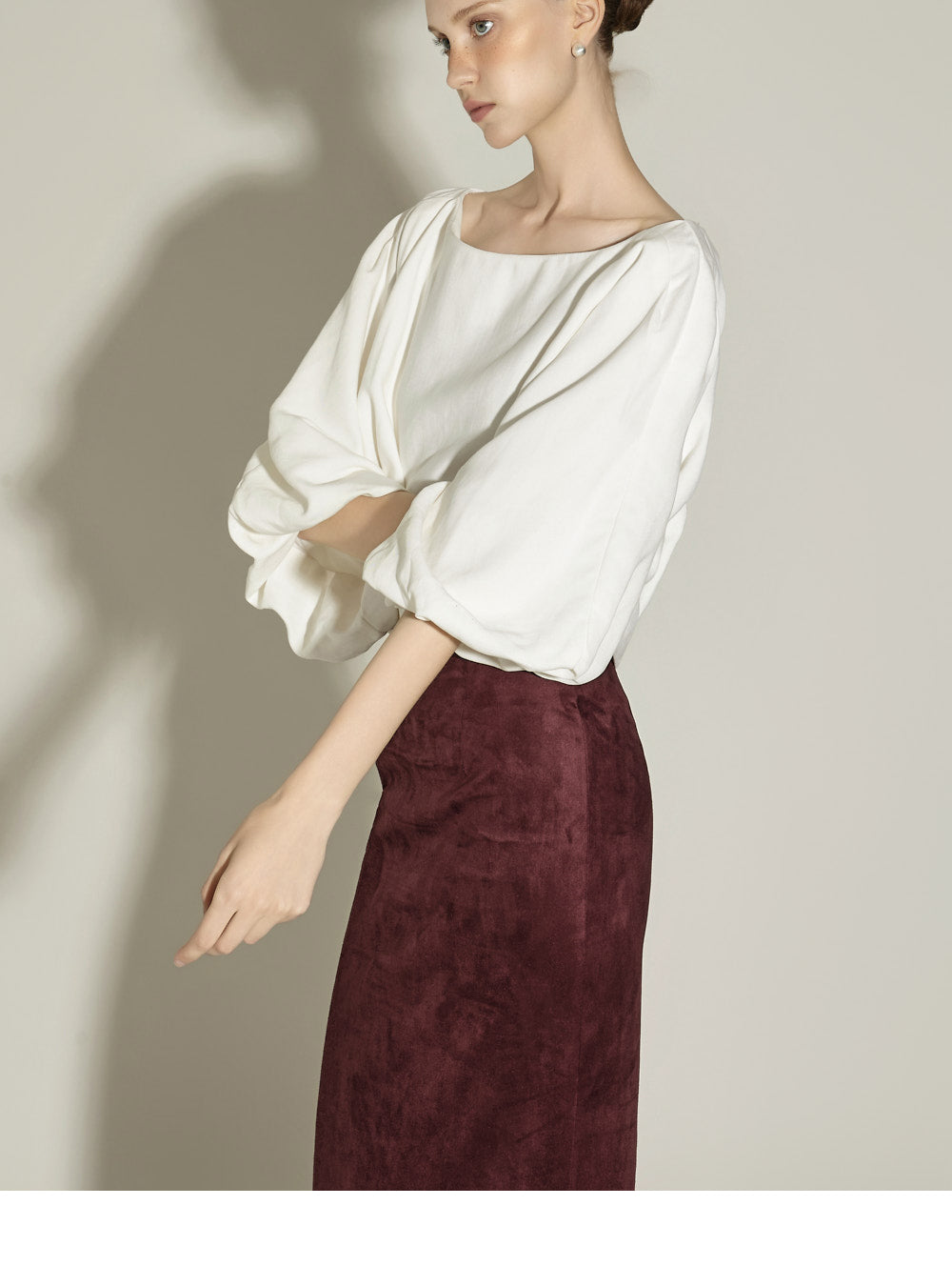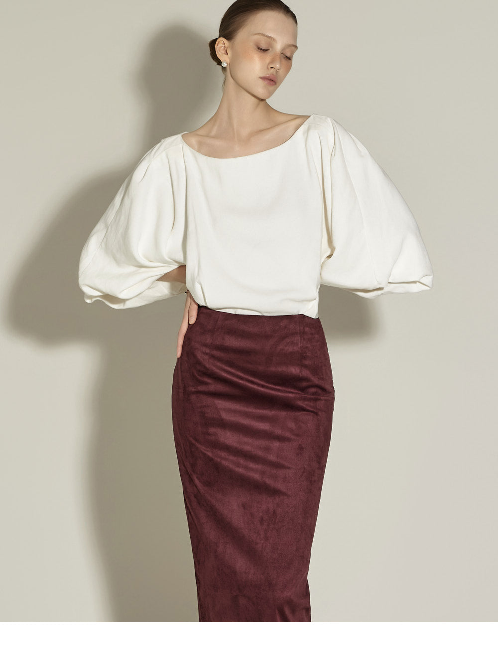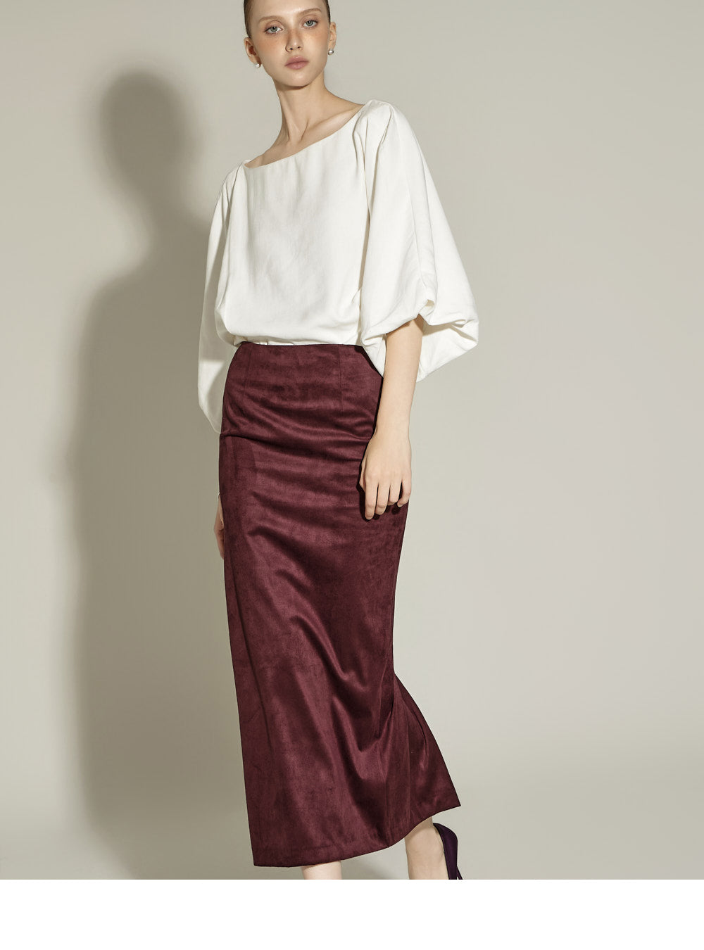 The back slit detail allows for easy movement, creating a feminine silhouette.