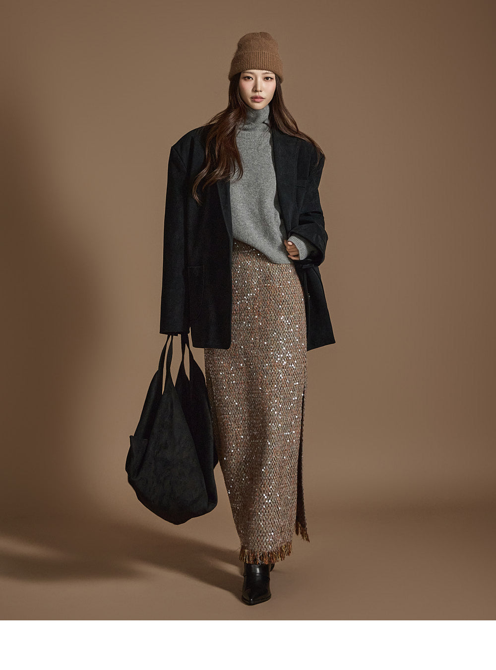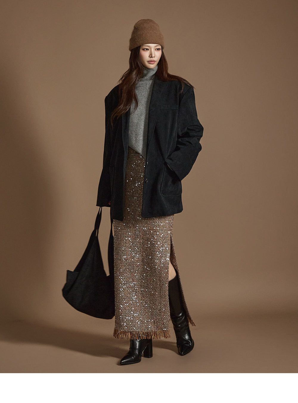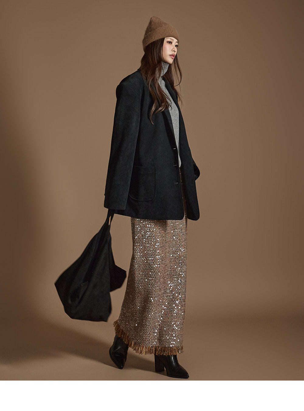 Crafted with full sequin tweed fabric, it boasts a unique texture,
