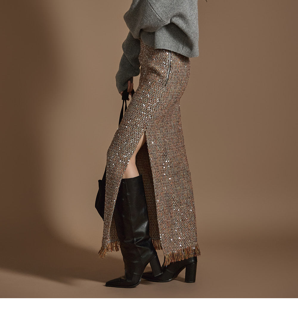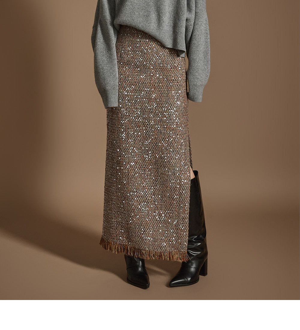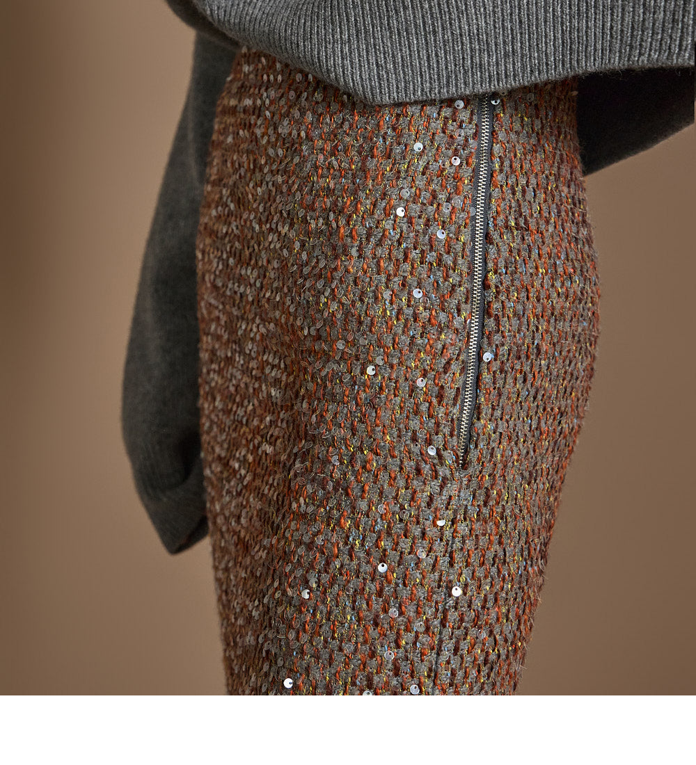 Crafted with full sequin tweed fabric, it boasts a unique texture,