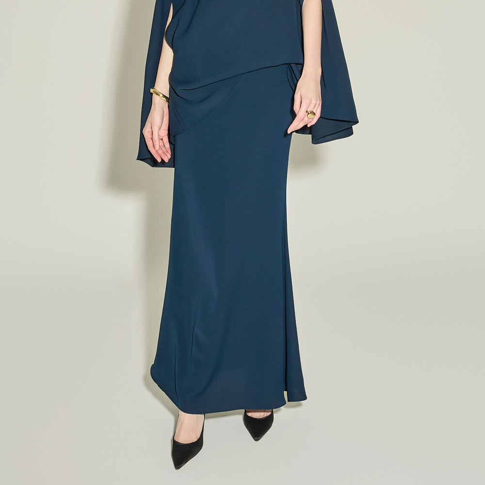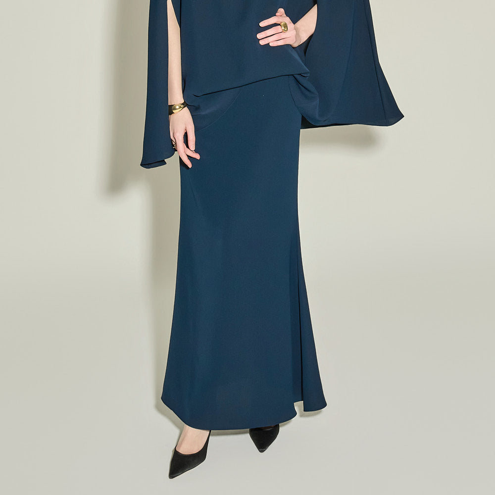 This high-waisted long skirt exudes a feminine vibe.