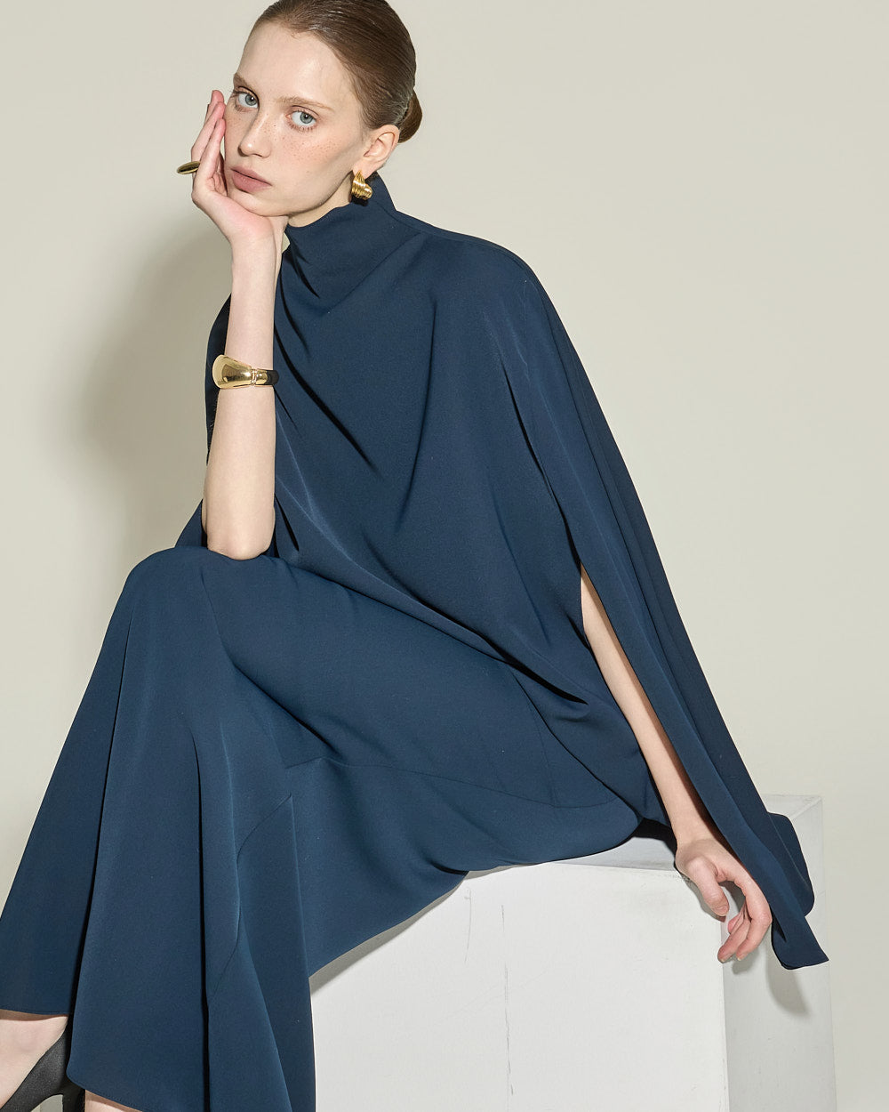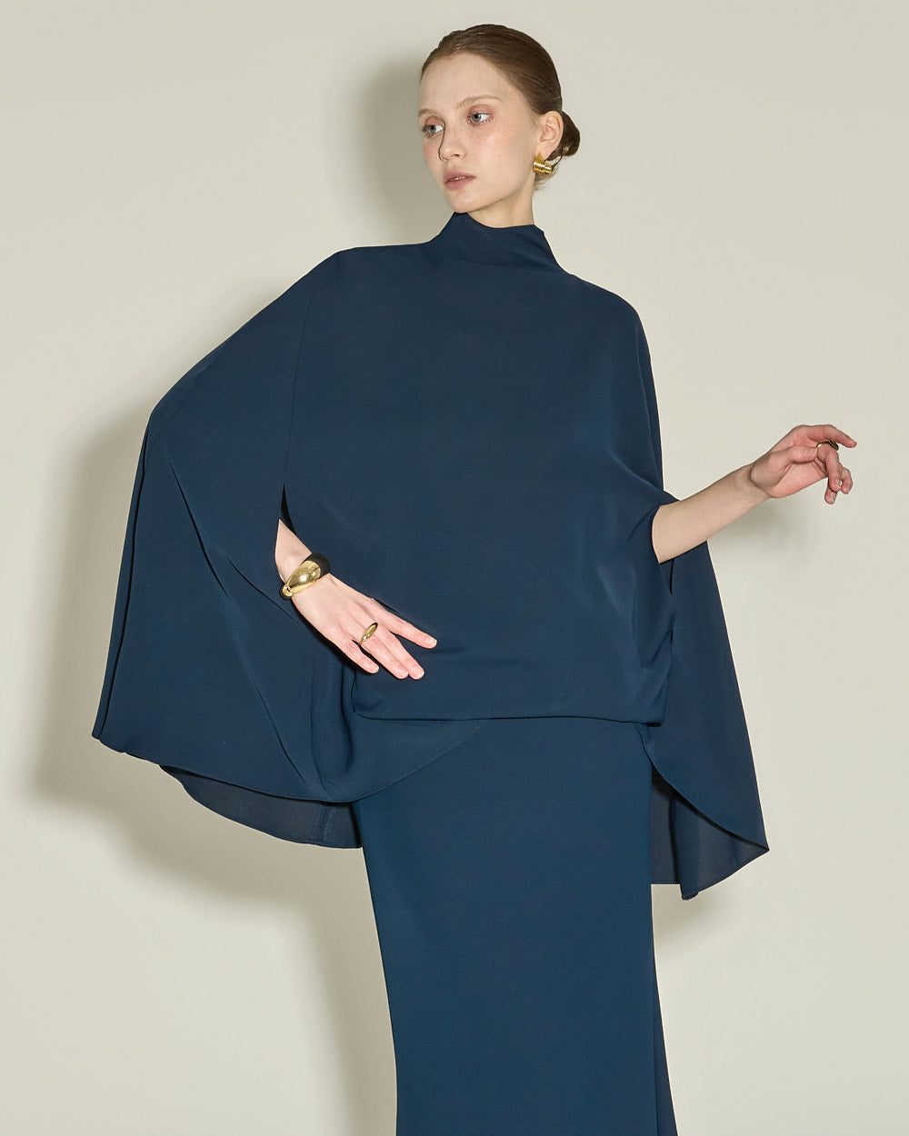Model is 174cm tall and wearing size S in NAVY.