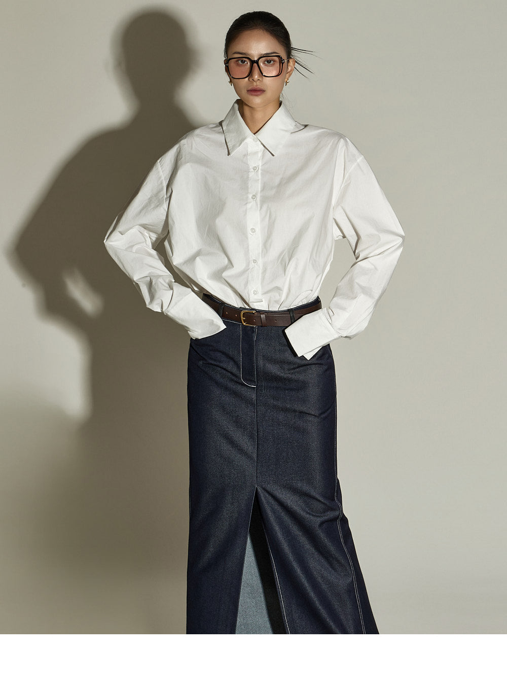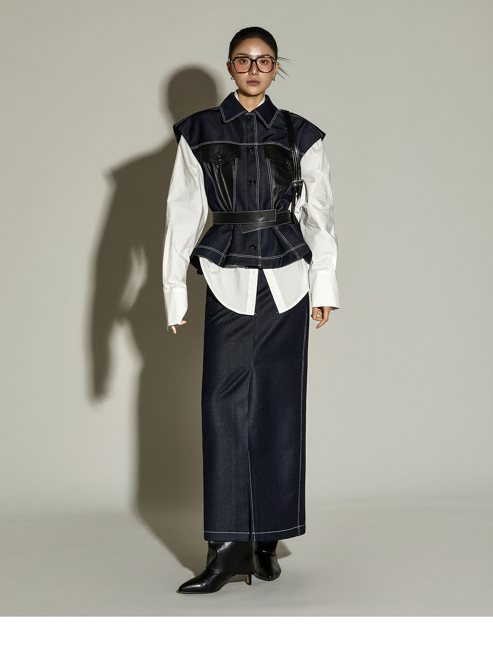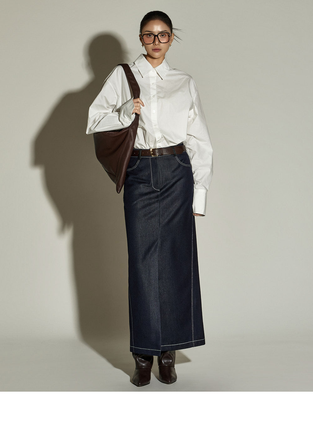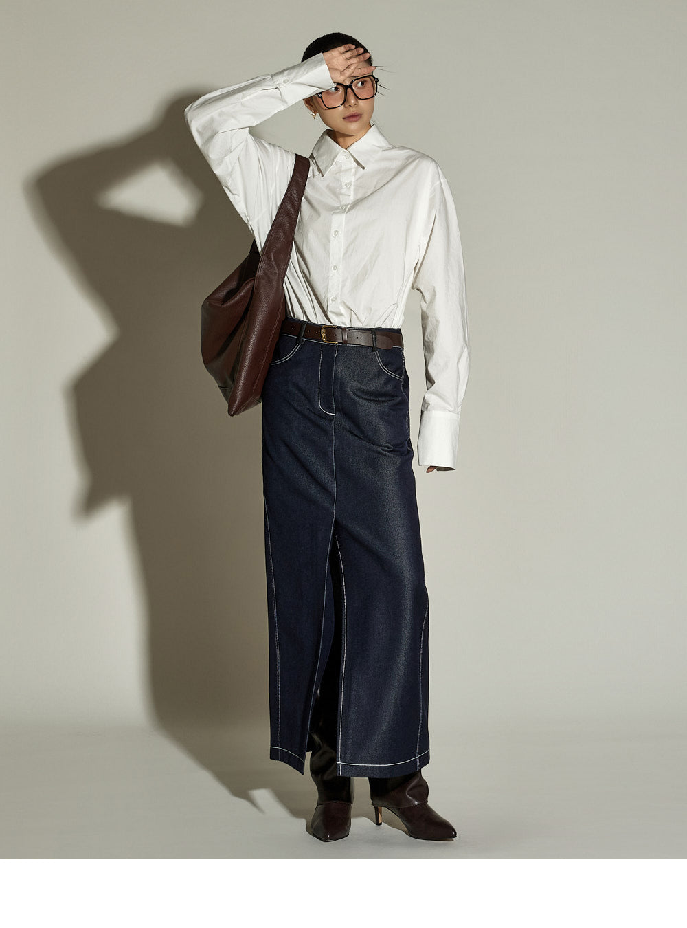 This stitched H-line skirt has a modern vibe.