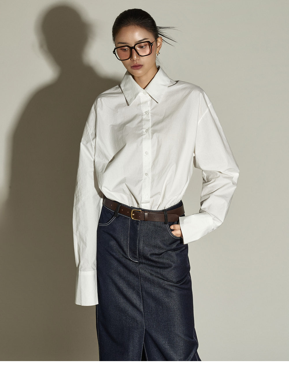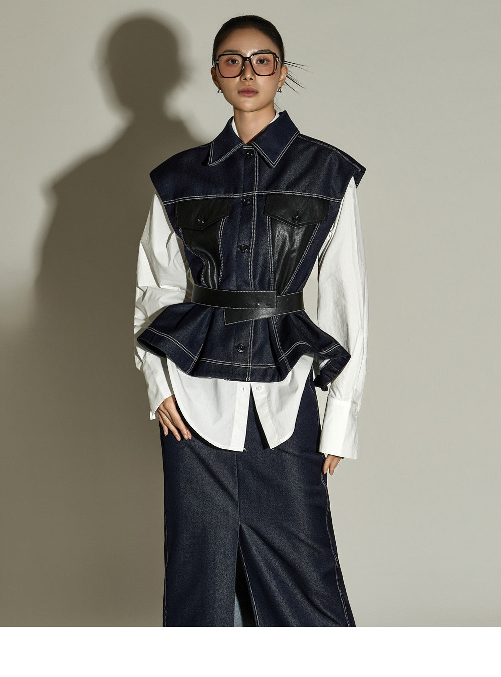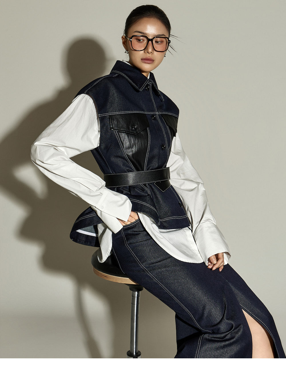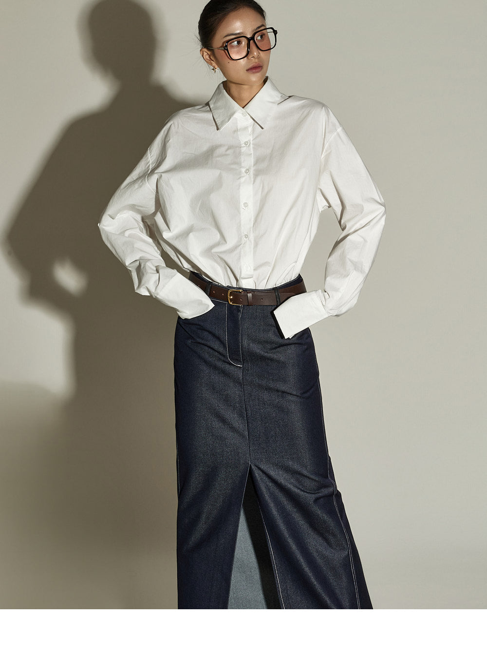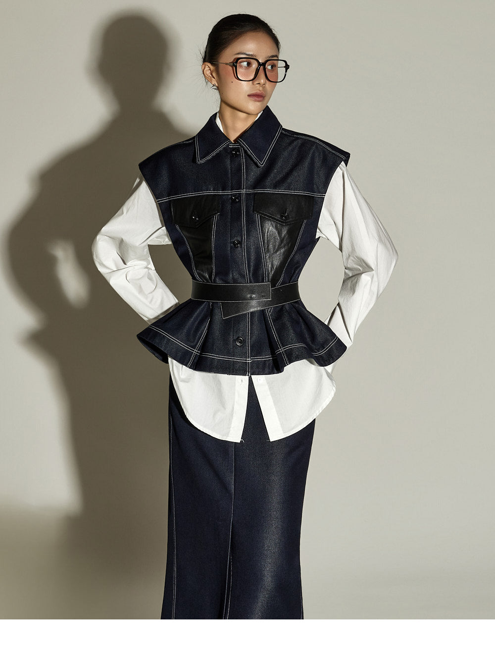 This stitched H-line skirt has a modern vibe.