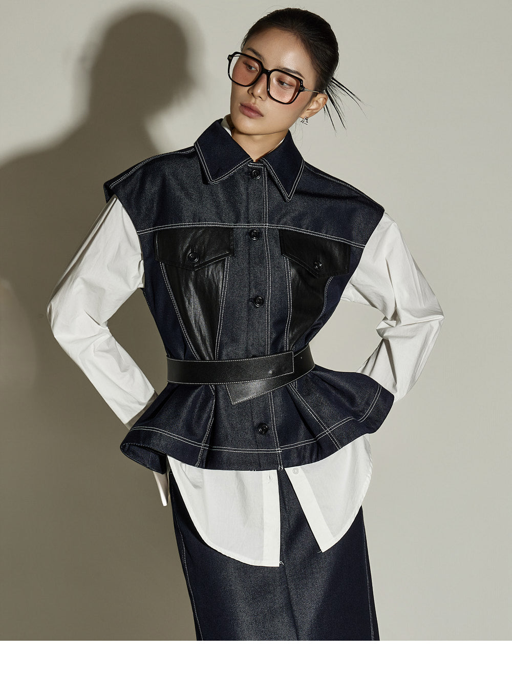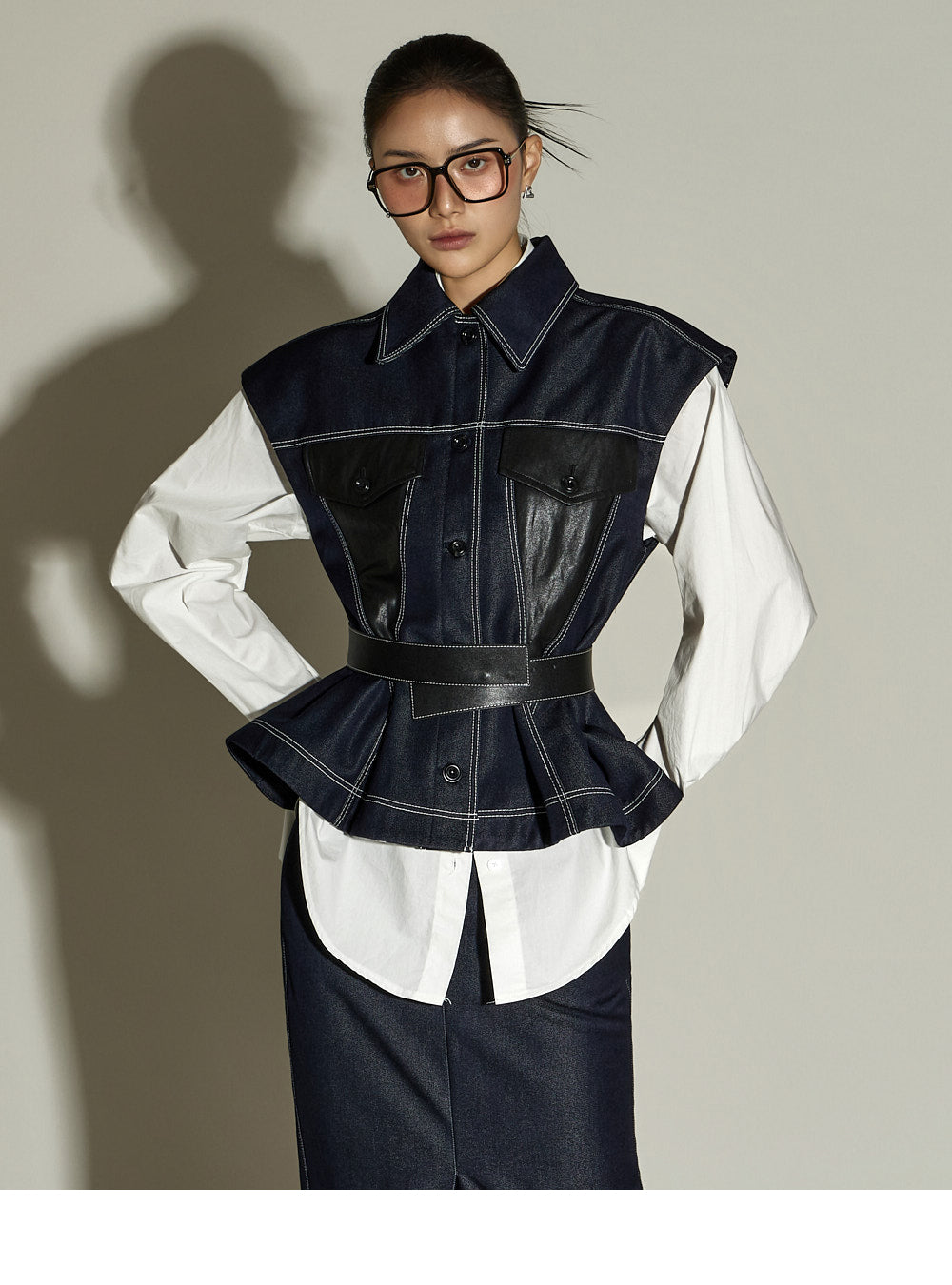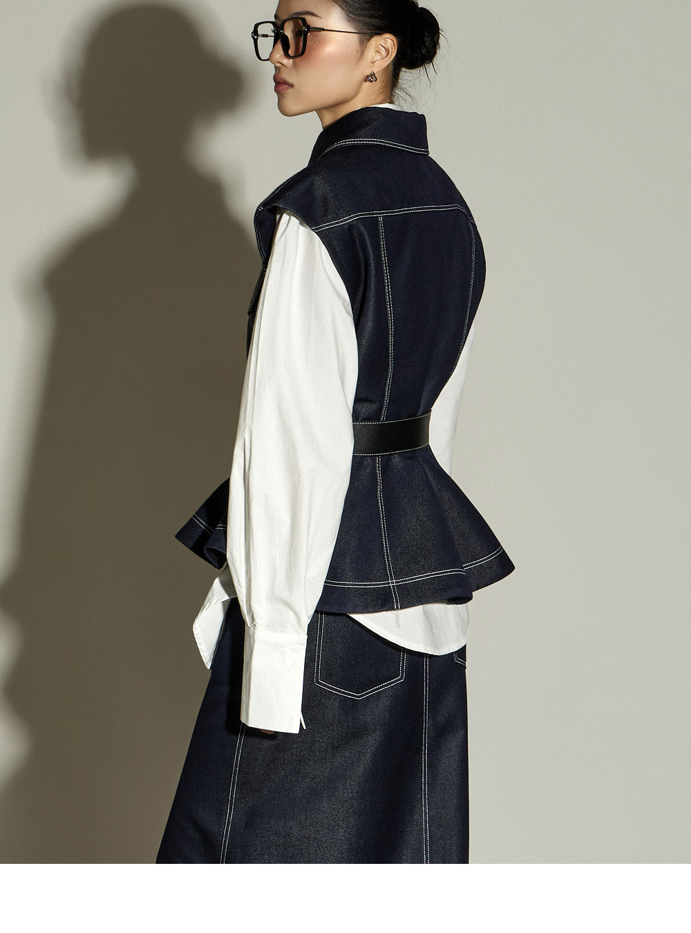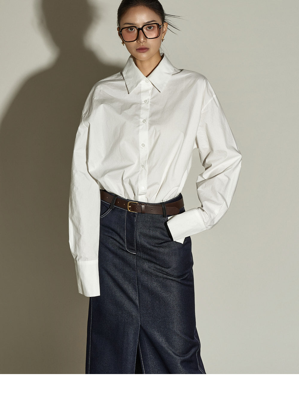 This stitched H-line skirt has a modern vibe.