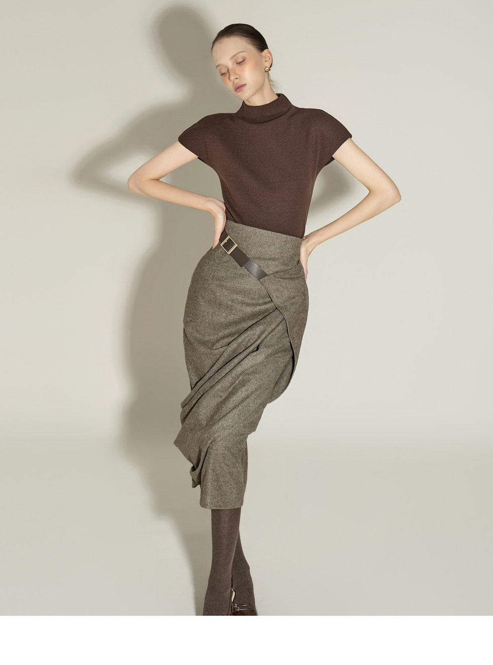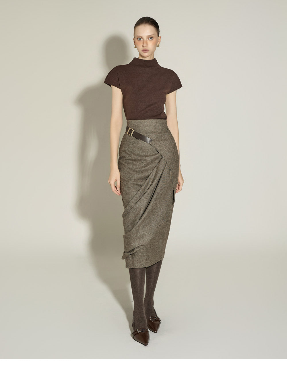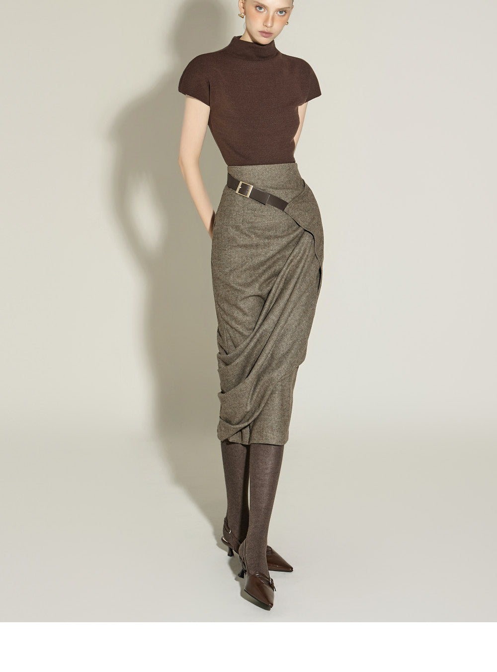 This elegant draped wrap belt skirt has a sophisticated feel.
