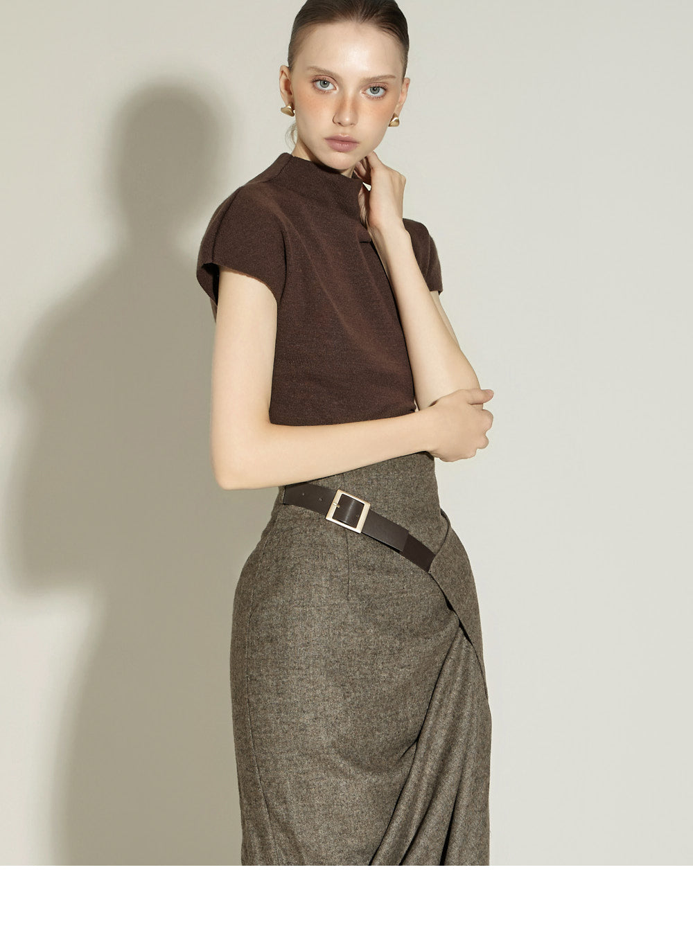 Model is 174cm tall and wearing size S in BROWN.