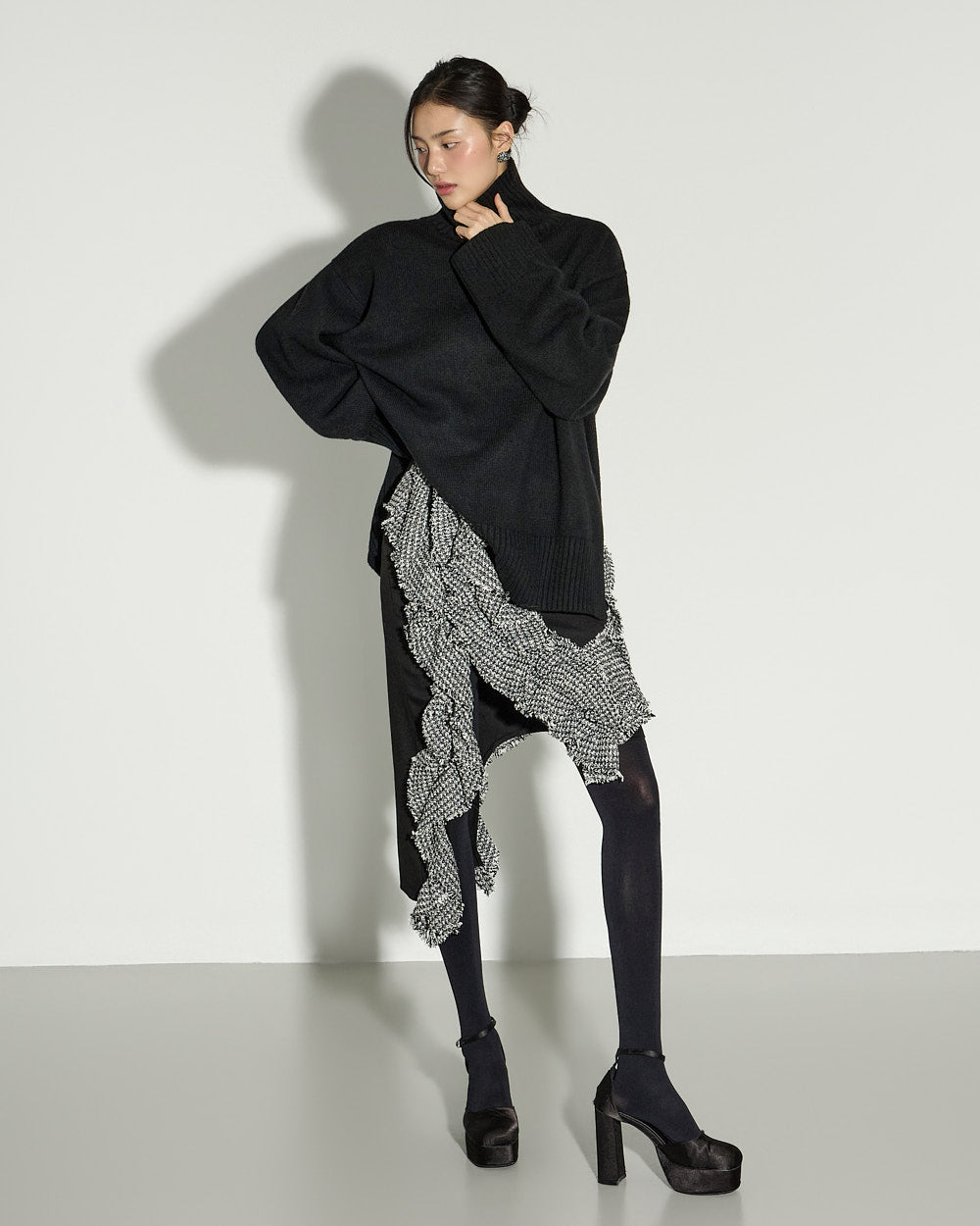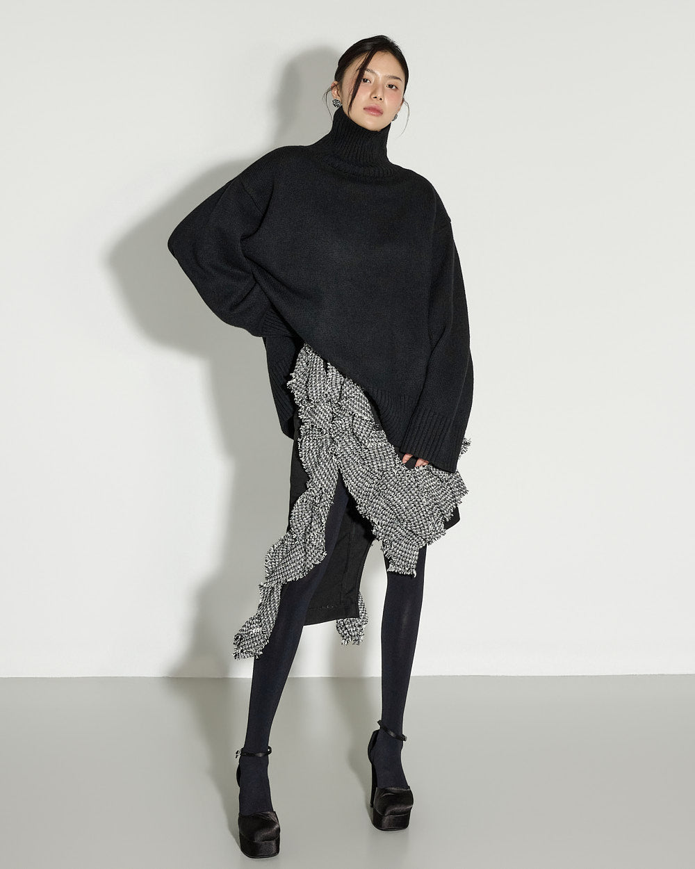 The model is 171cm tall and is wearing size S in BLACK.
