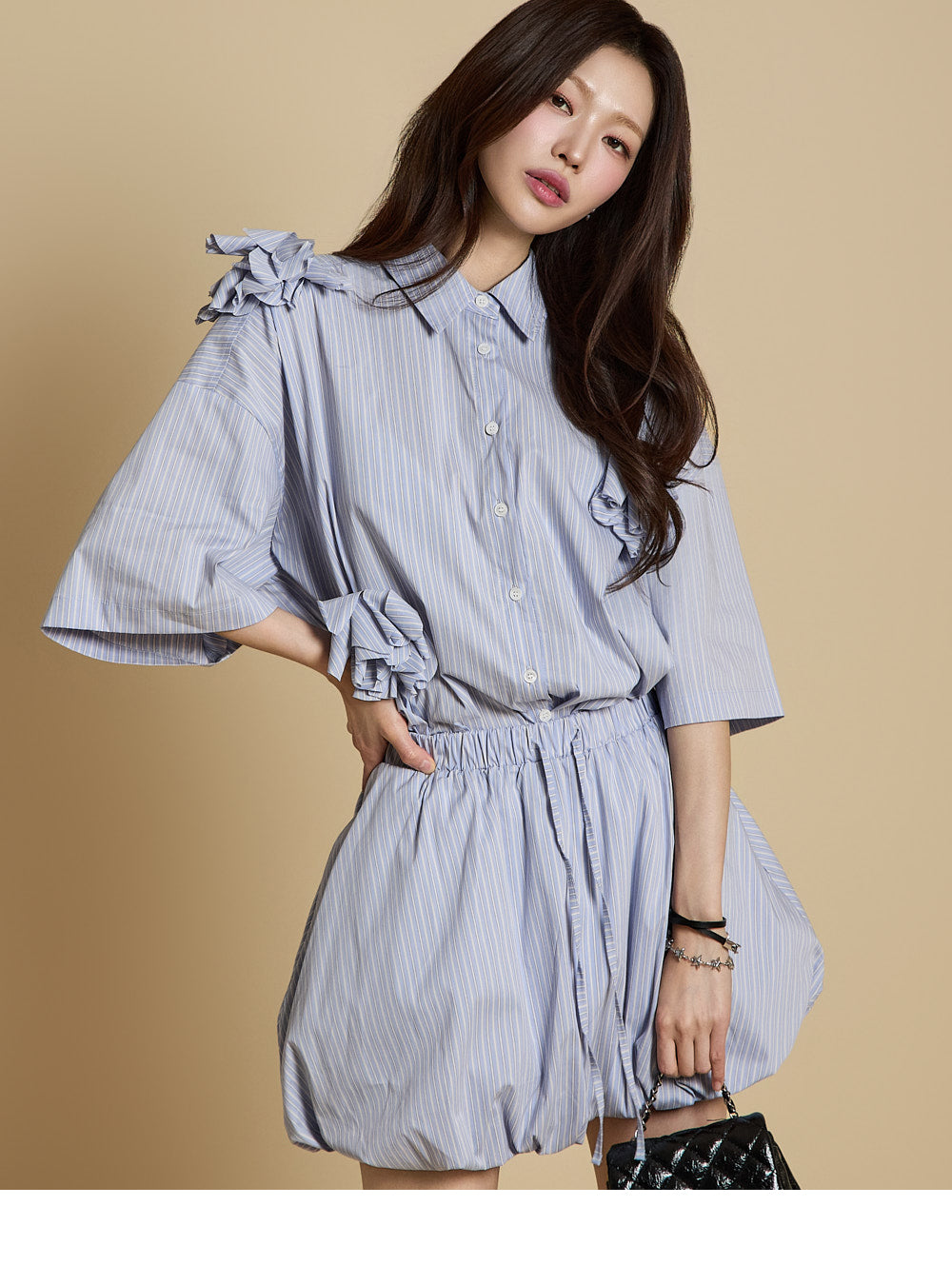 Worn together, the shirt and skirt create a complete lovely casual look,