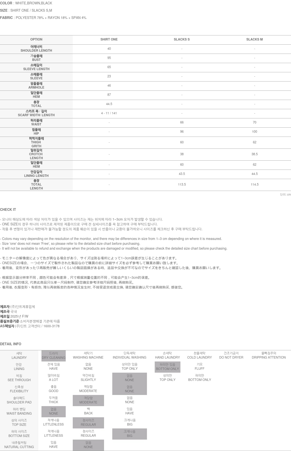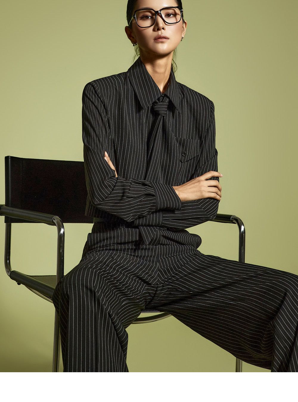Model height: 173cm, shirt ONE SIZE / trousers S size, black.