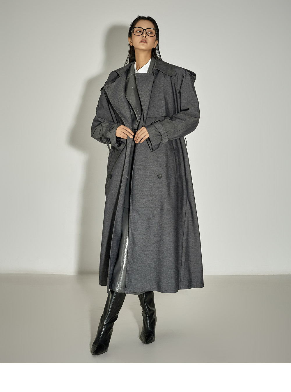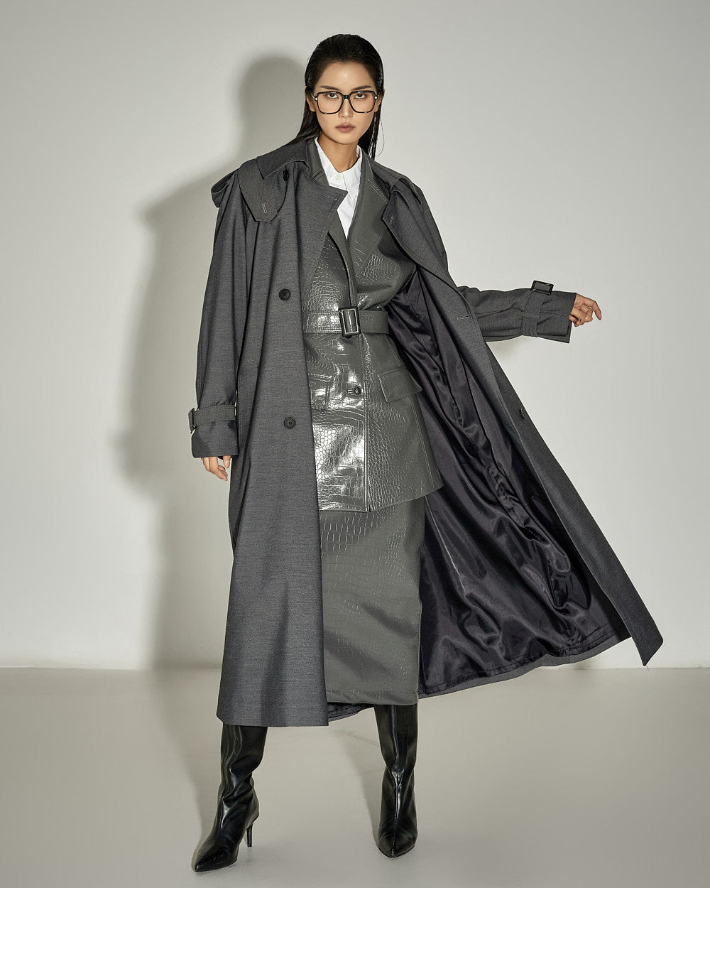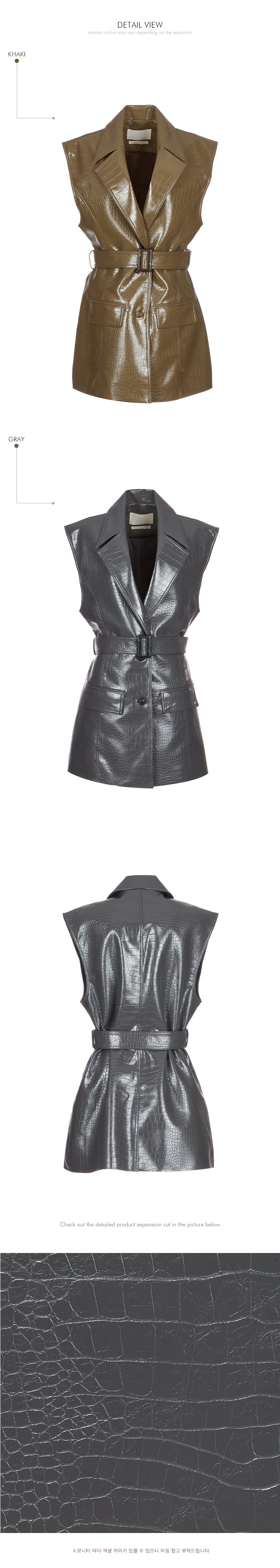 The vest includes a matching belt to cinch the waist and flatter the figure.
