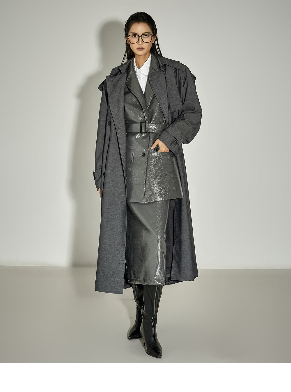 This is a stylish vest and skirt set that exudes a unique, sophisticated charm.