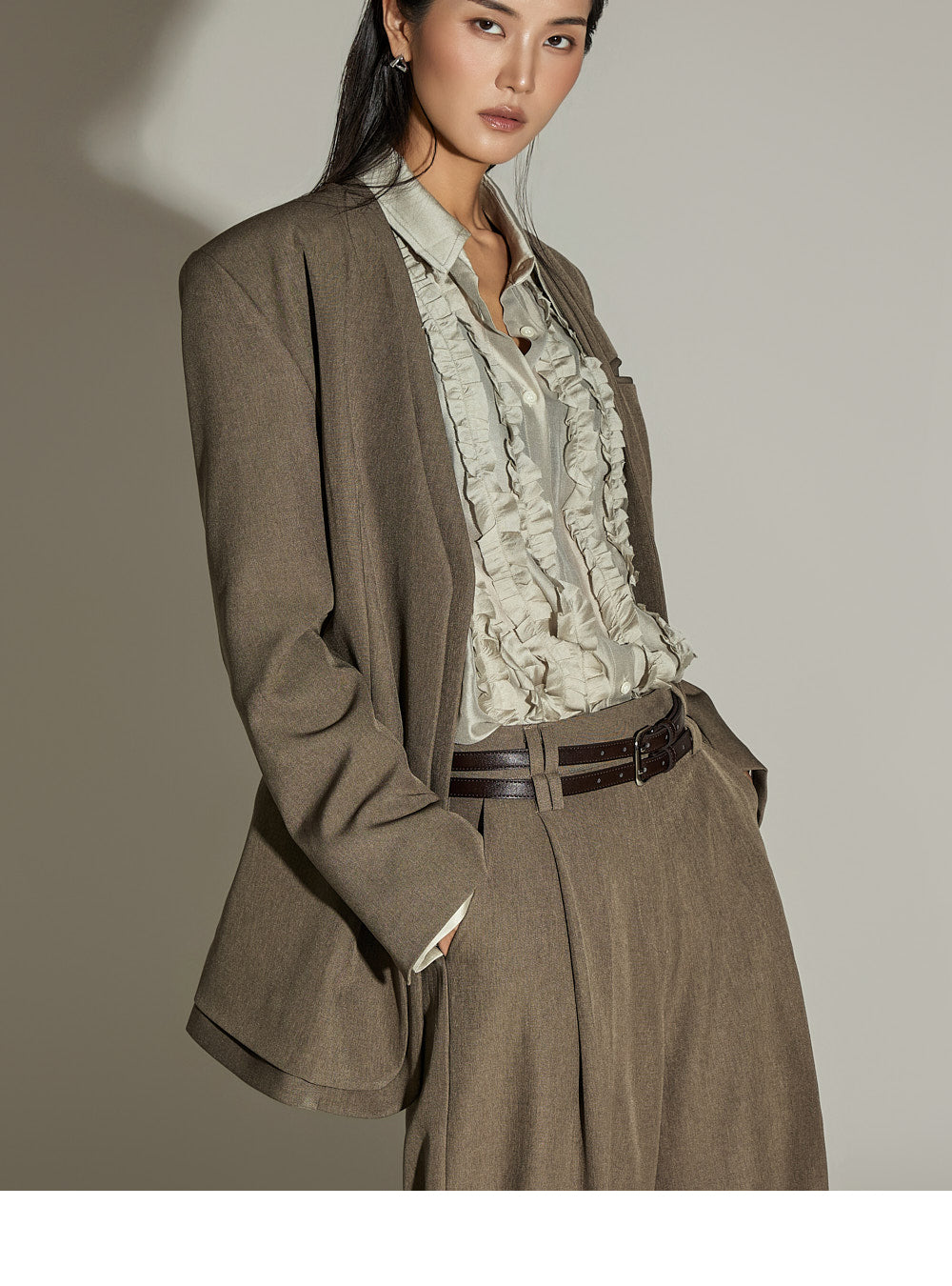 Model (173cm) is wearing a size ONE jacket and size S slacks,