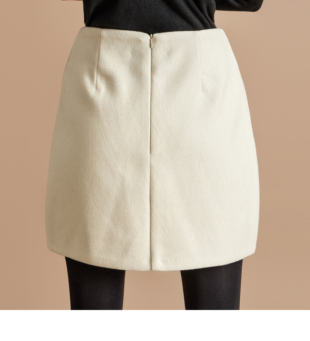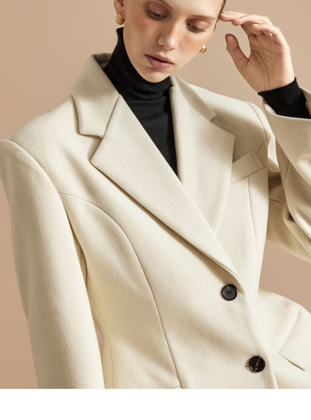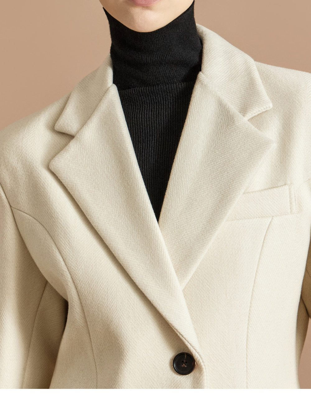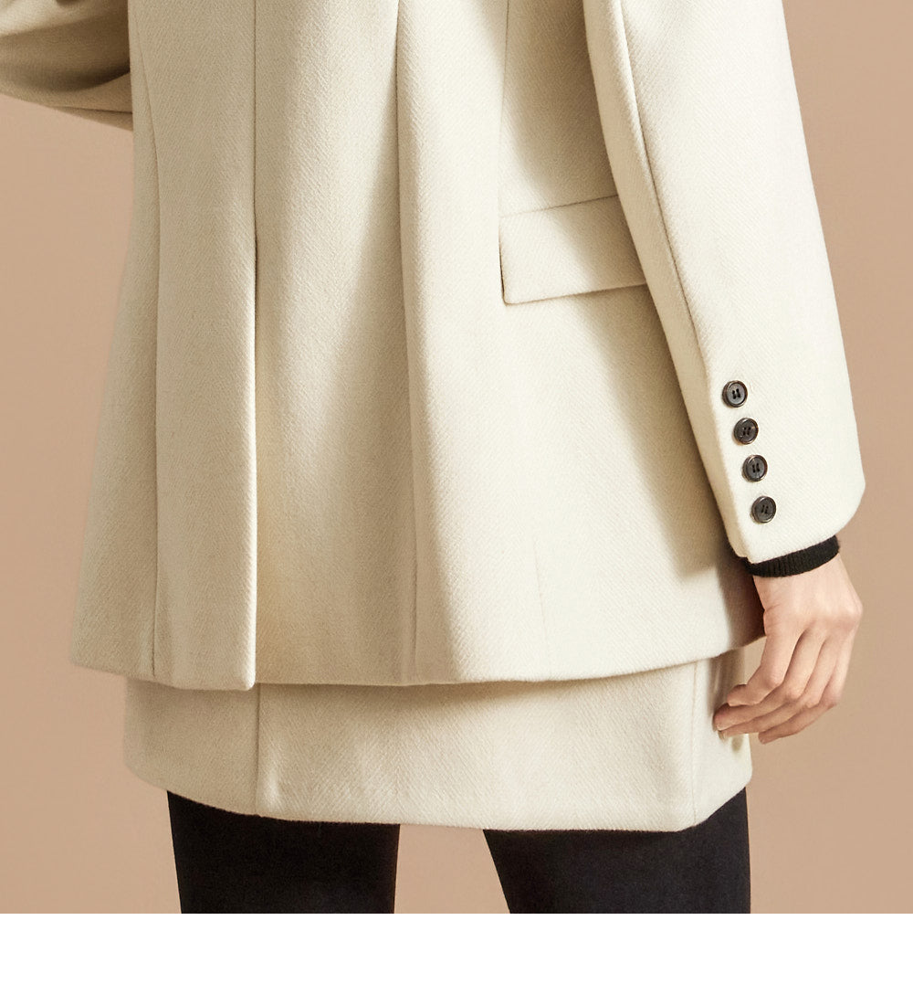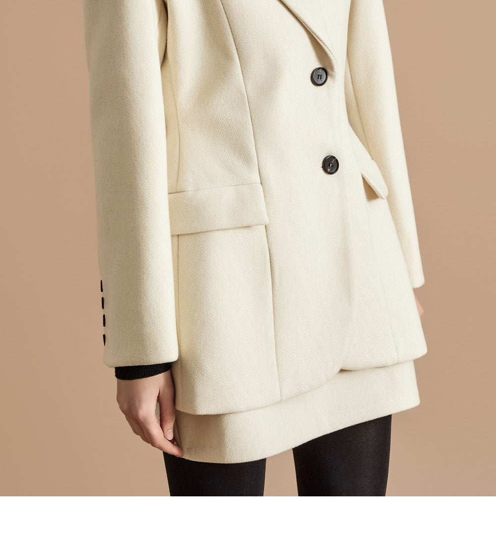 The 174cm model is wearing a size ONE jacket, a size S skirt, and the color Ivory.