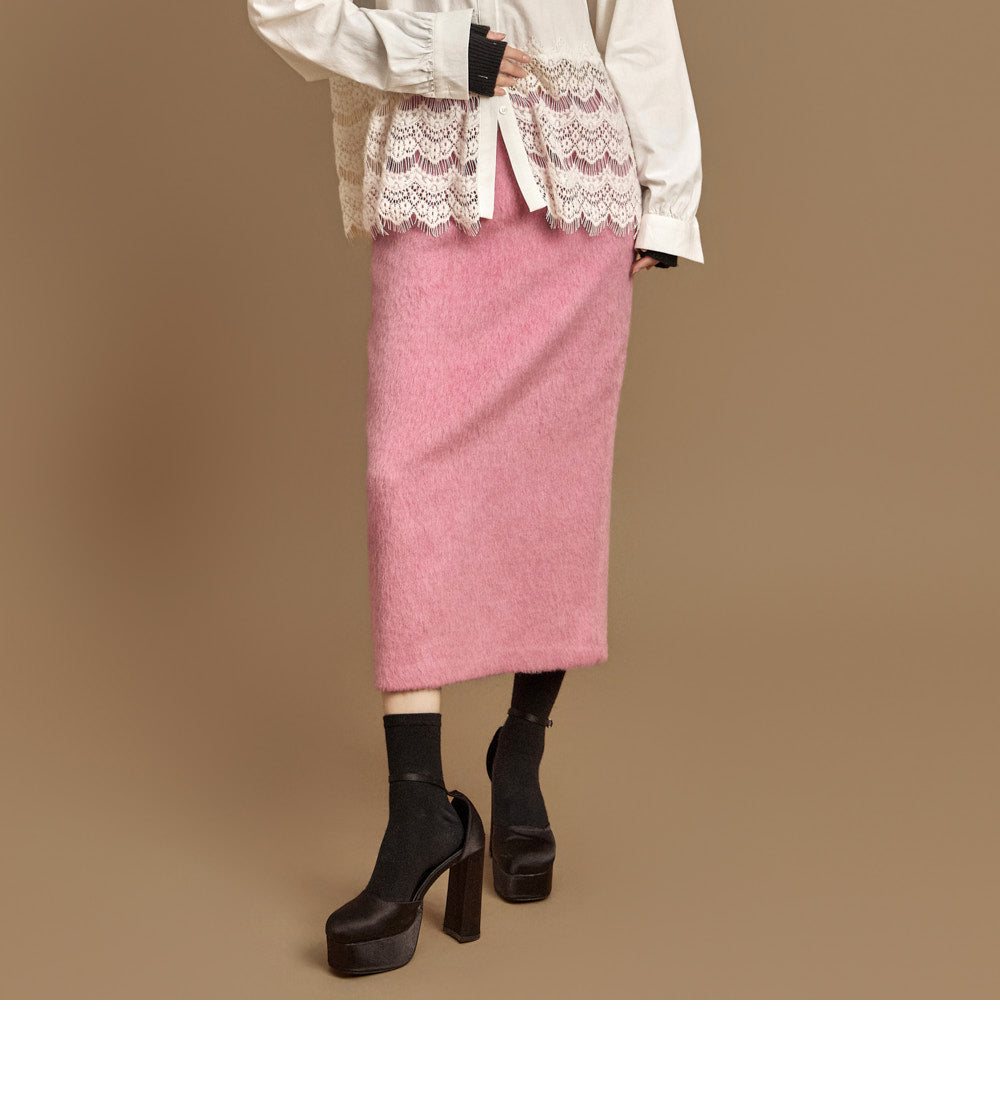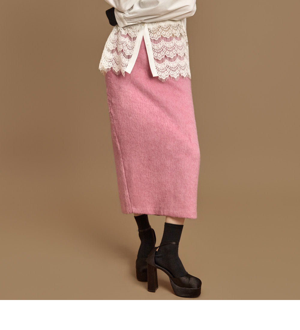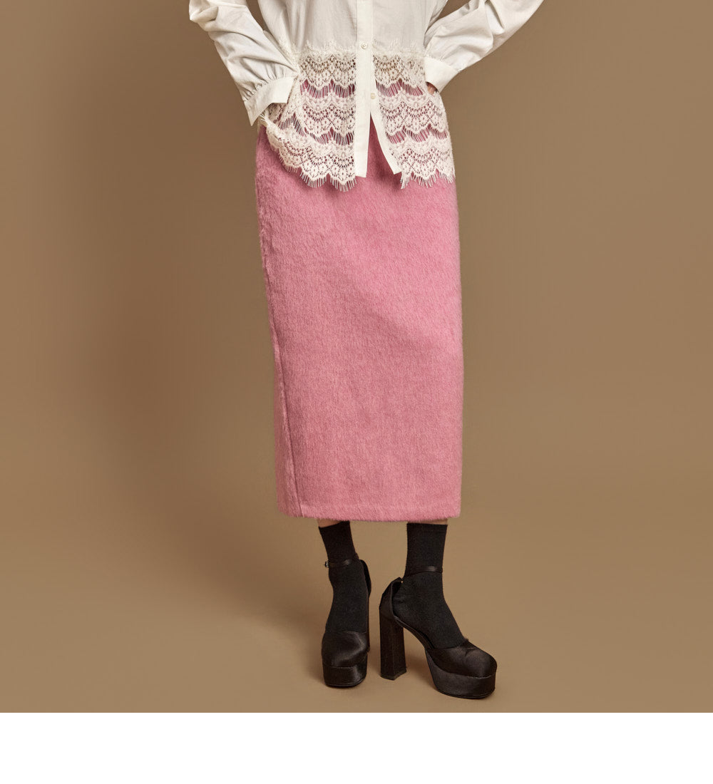 The skirt features a side zipper closure and a loose back elasticated waistband for a comfortable fit,