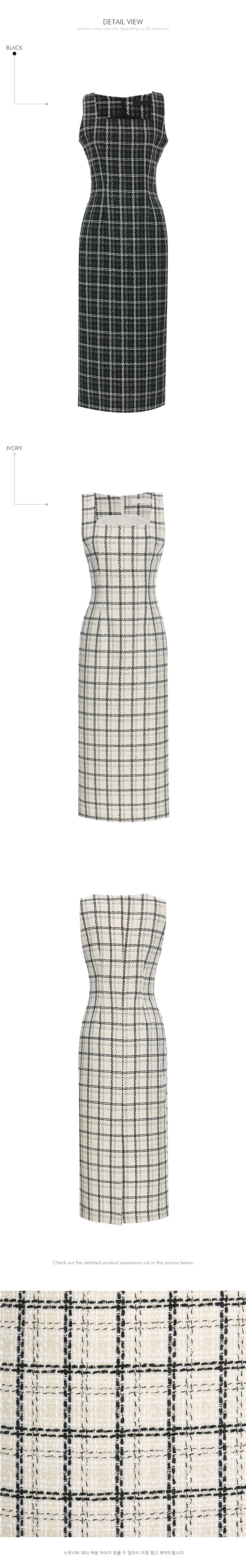 The dress is a sleeveless, midi-length H-line,