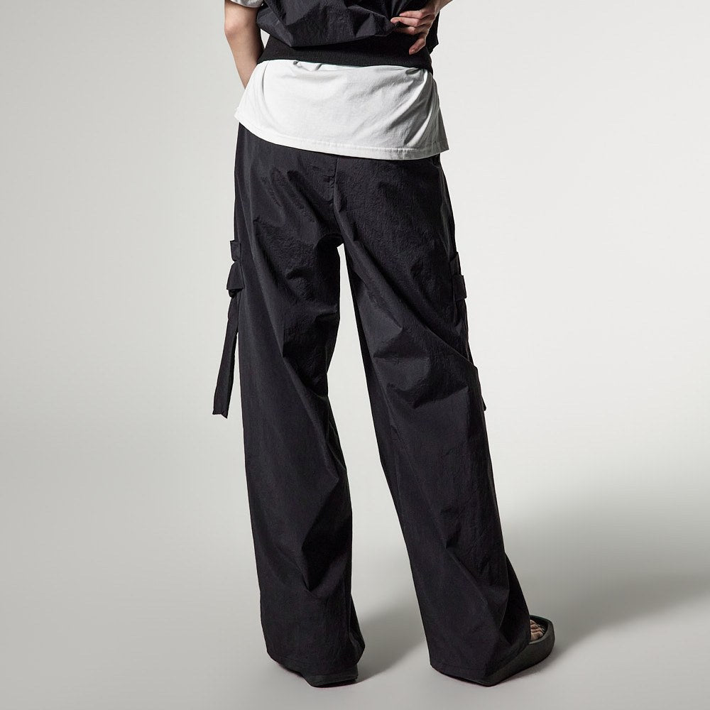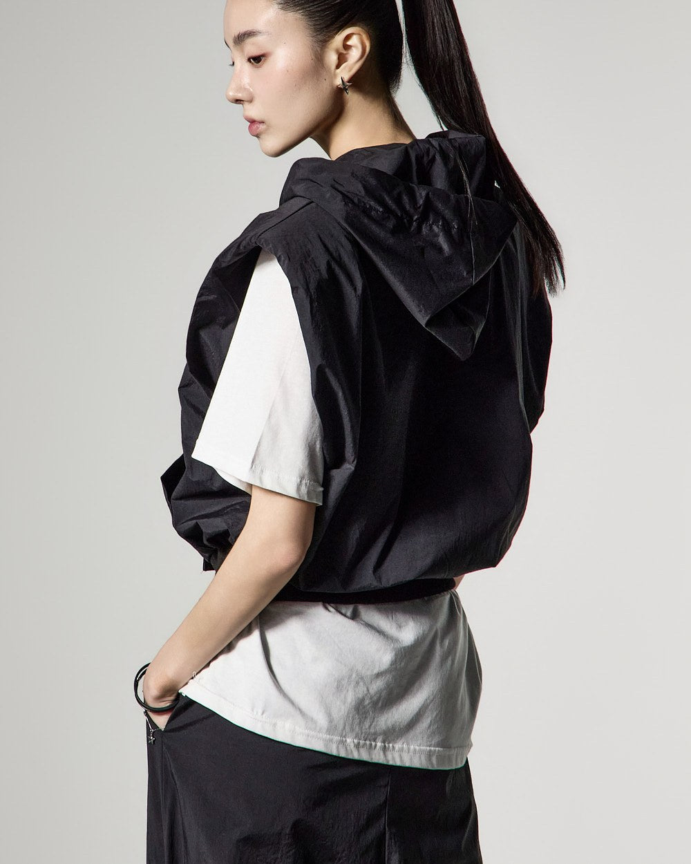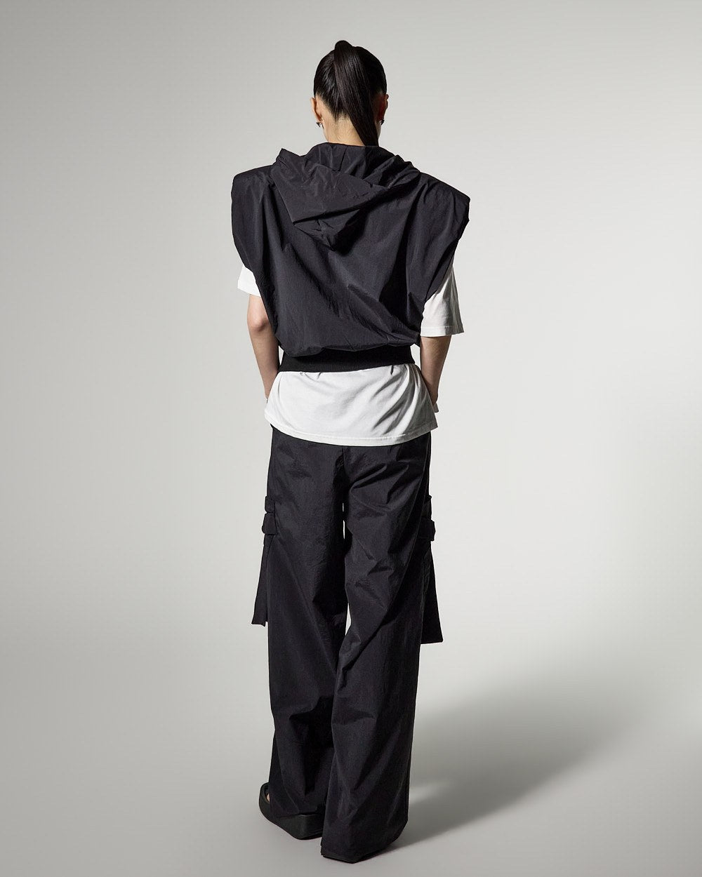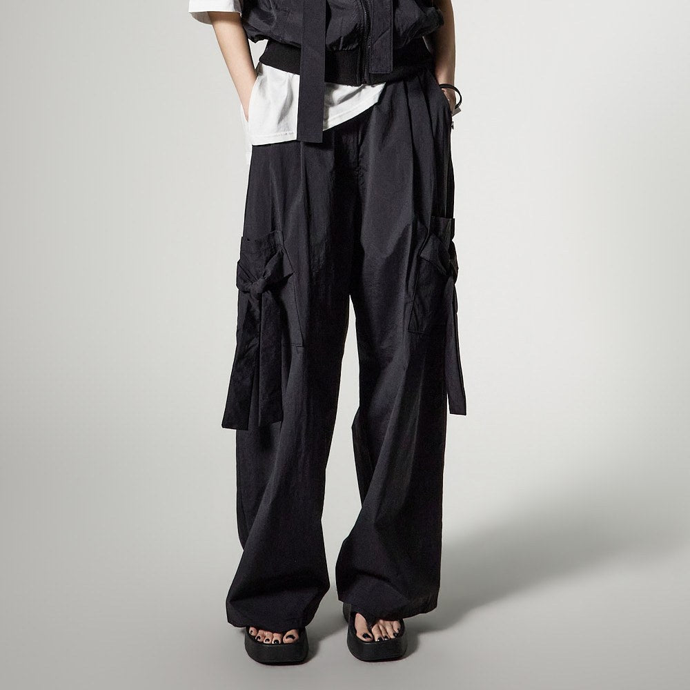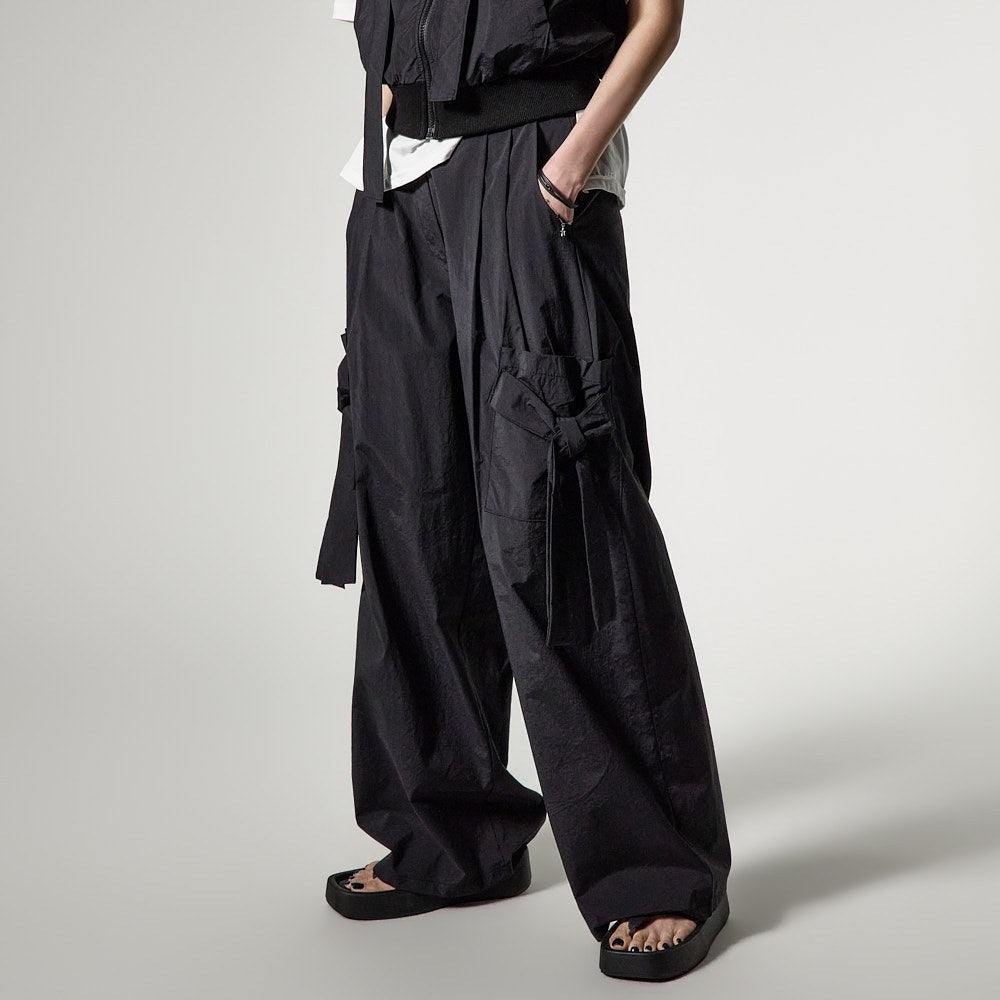 The button closure ensures a secure fit, and the addition of side pockets and ribbon details completes a stylish yet unique look. When worn as a set, it creates a polished sporty look,