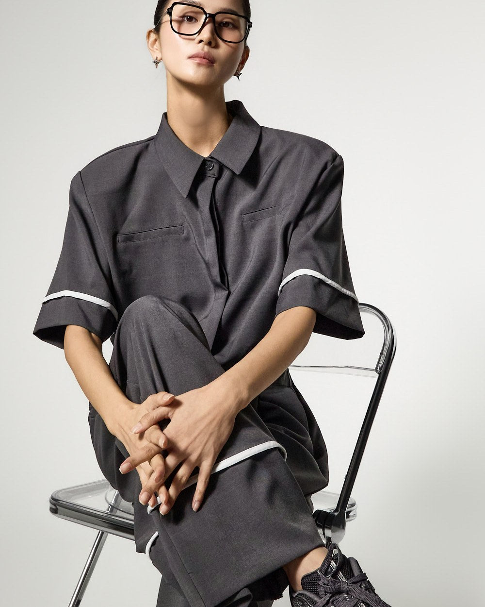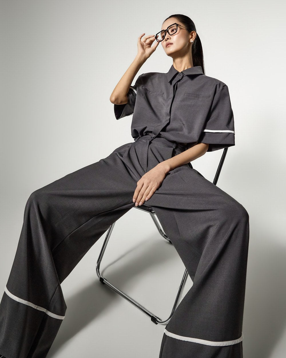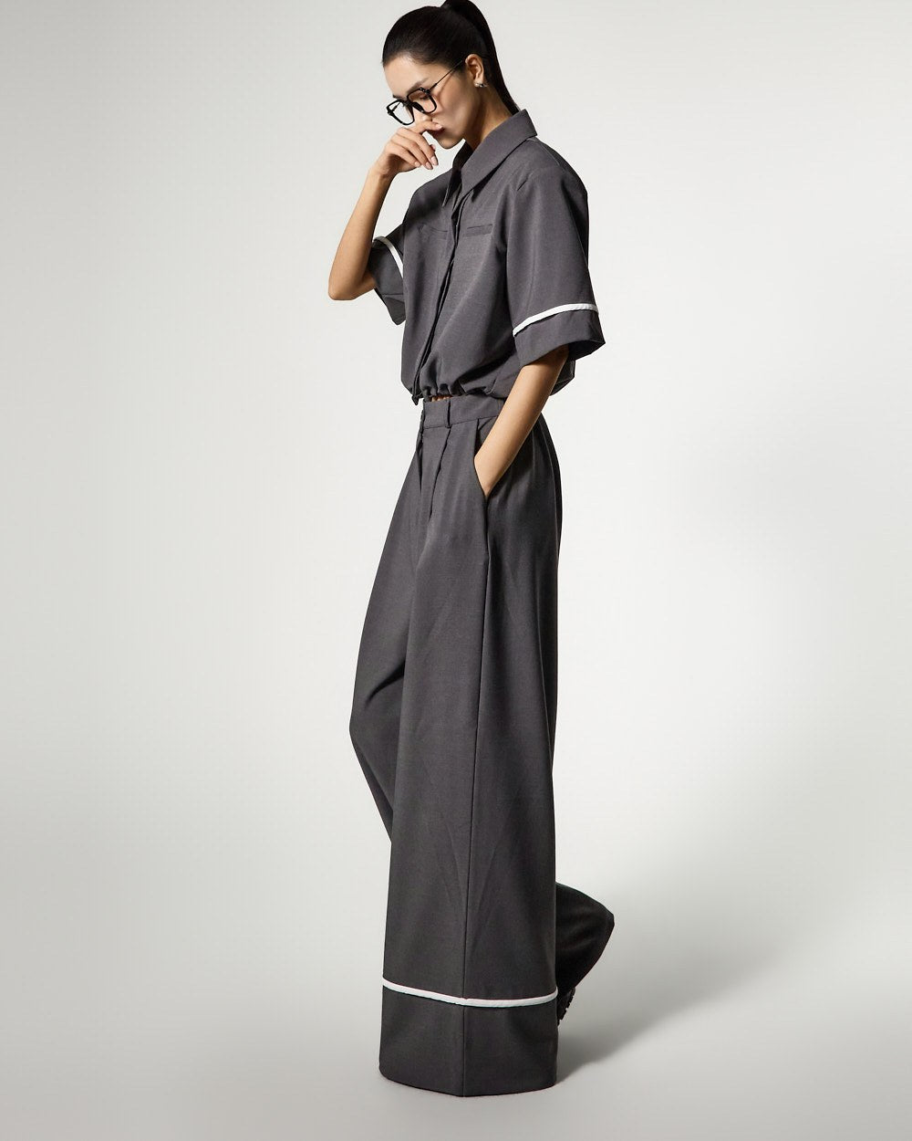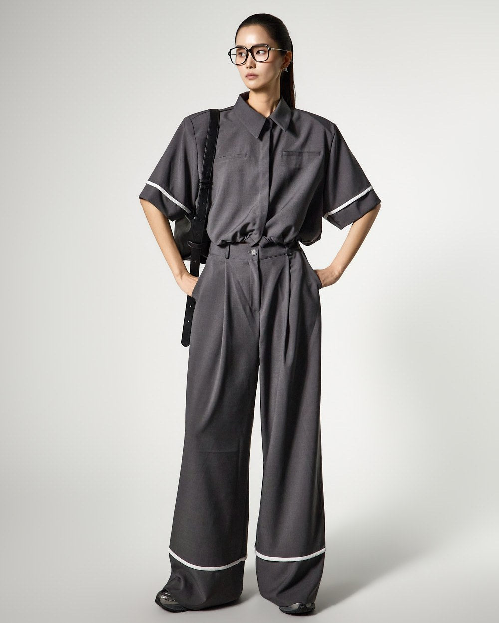 Model (173cm) wearing Shirt ONE / Pants ONE,