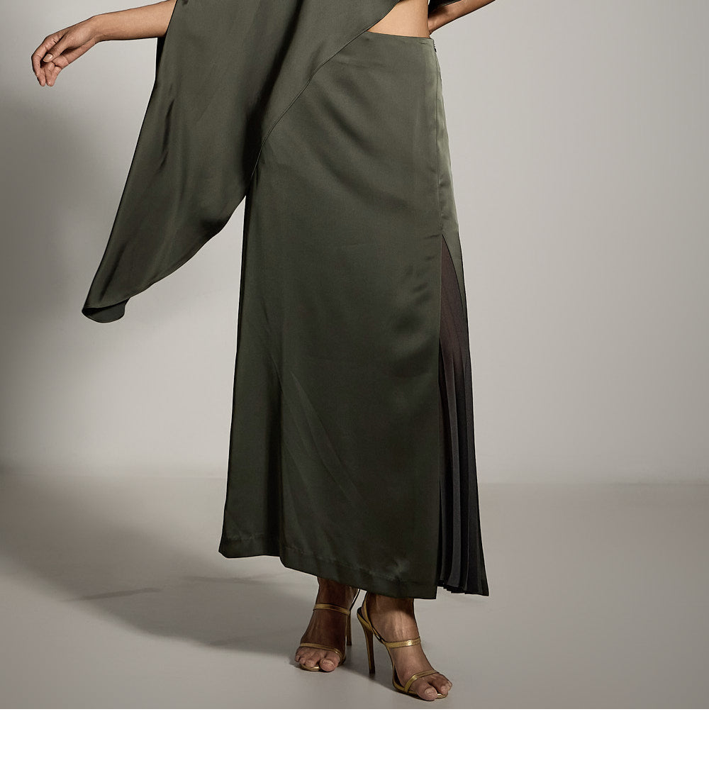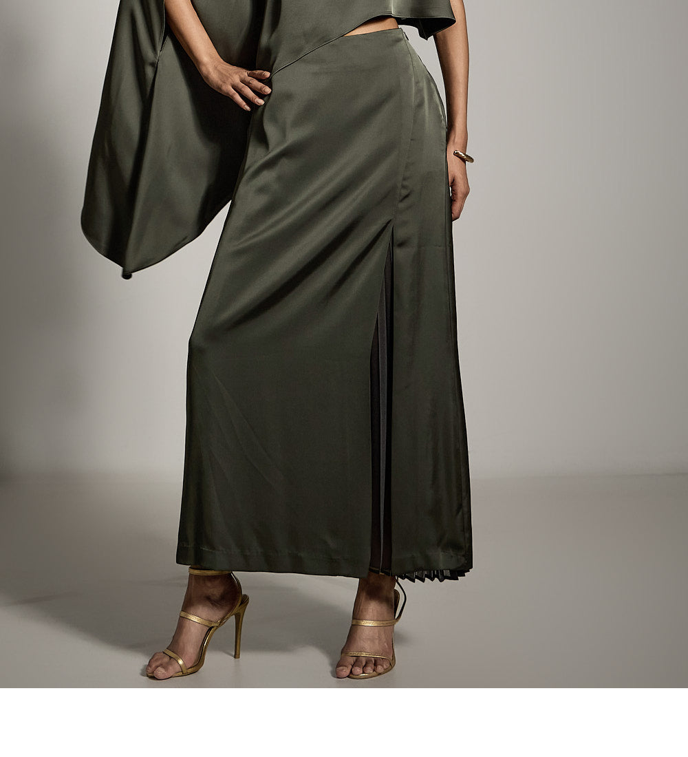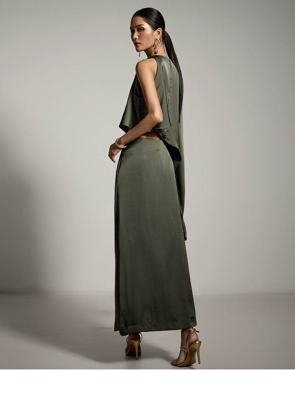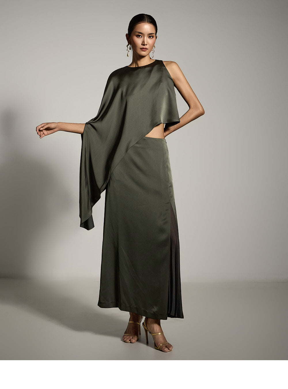 Model is 173cm tall, wearing top in ONE size and skirt in S, Khaki color.