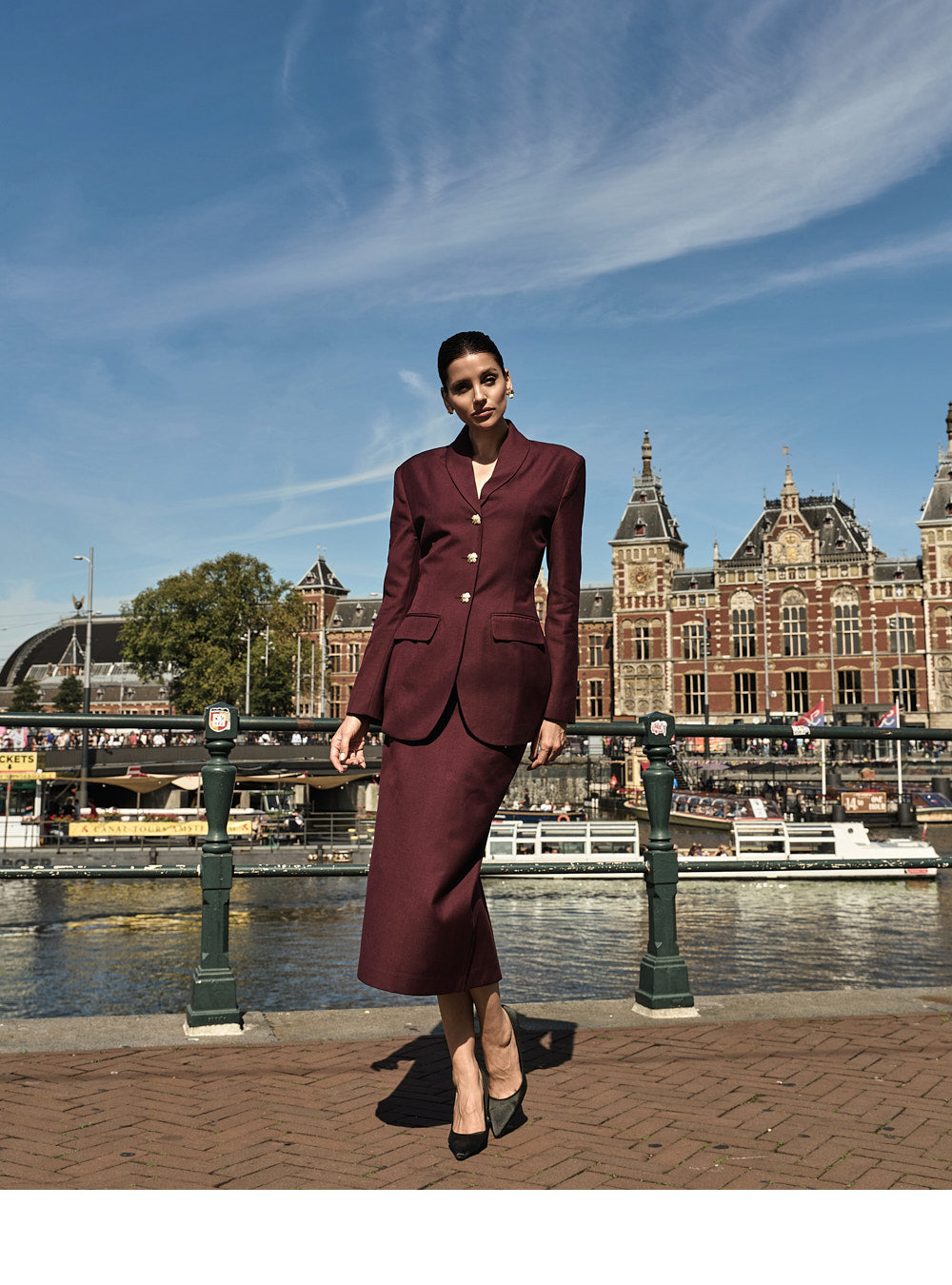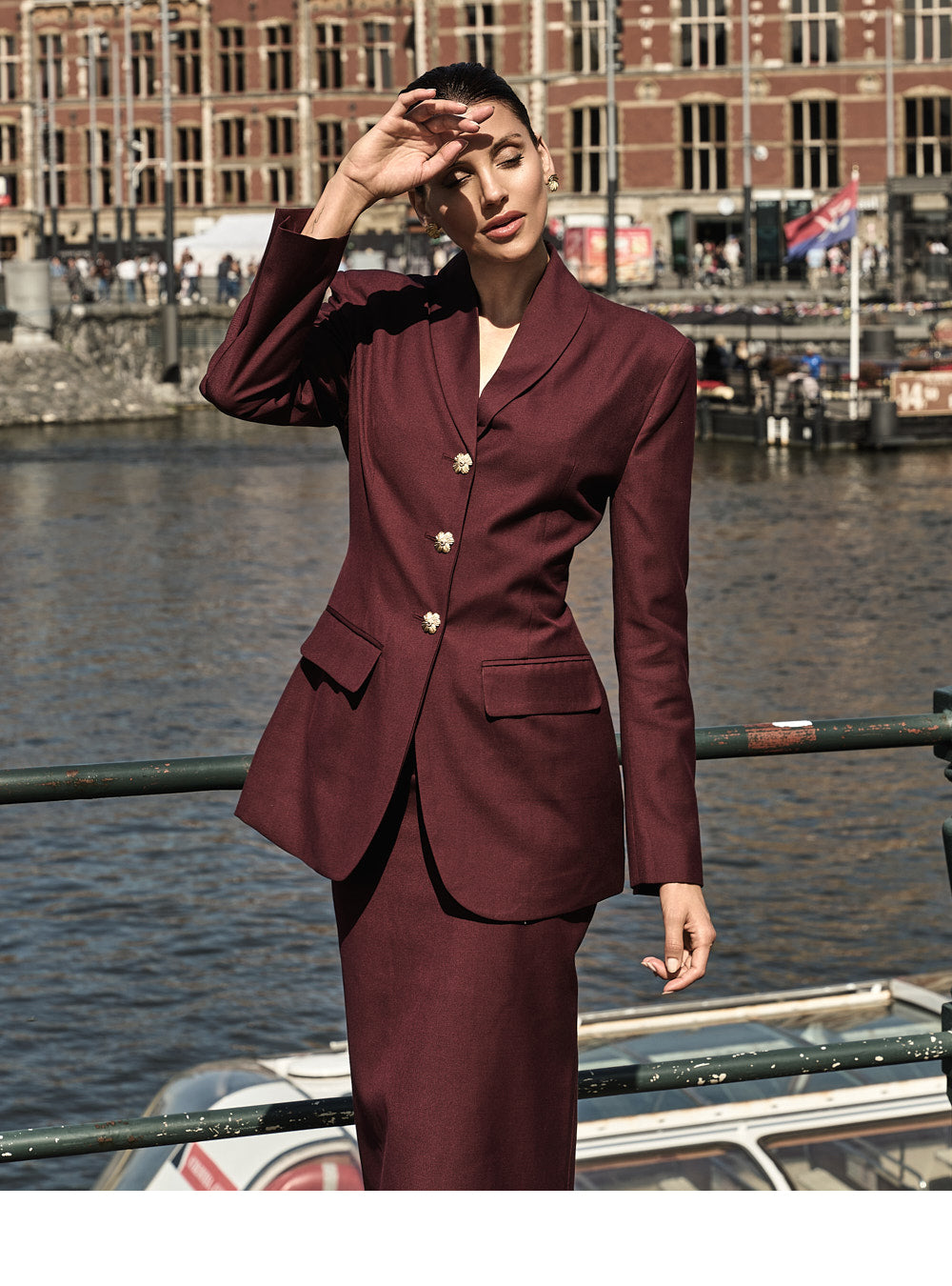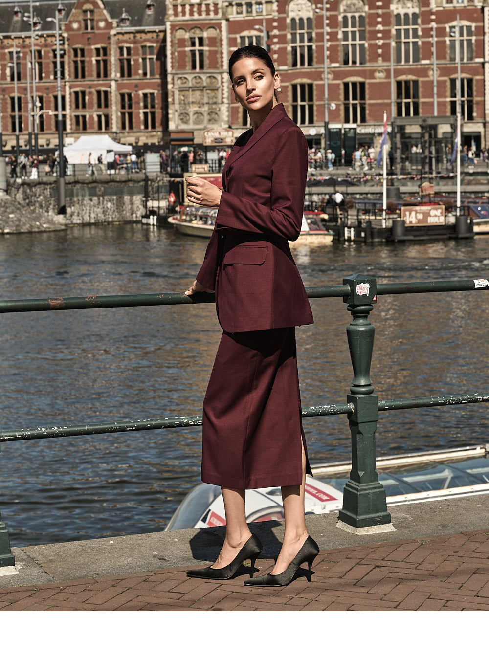 This autumn-inspired jacket and skirt set is perfect for fall.