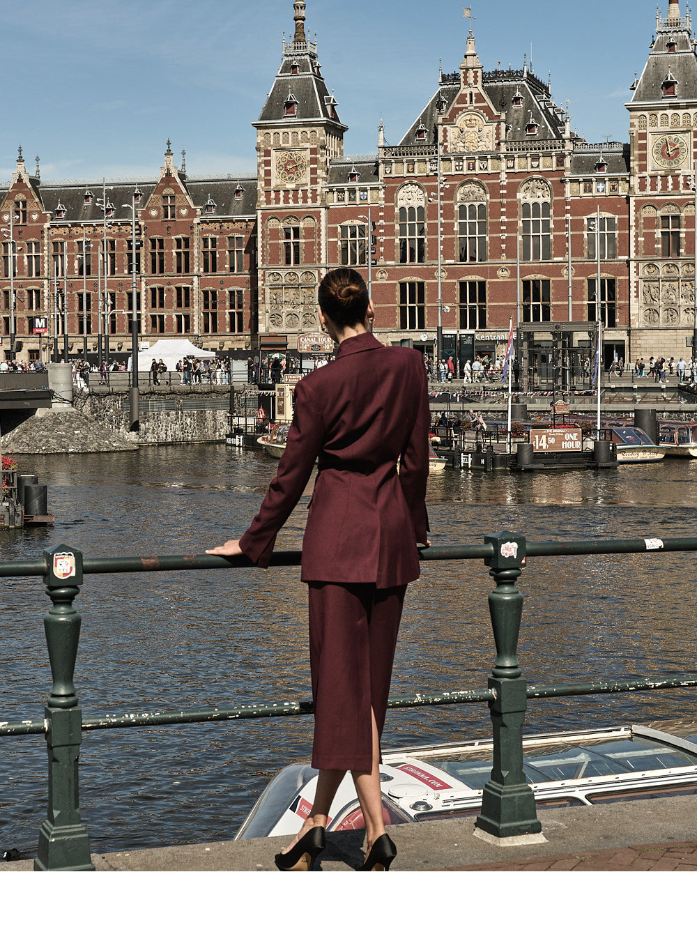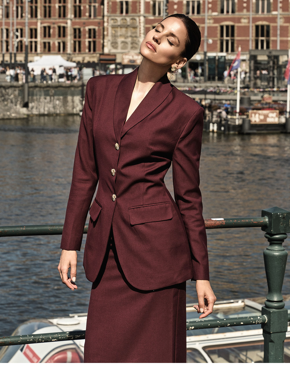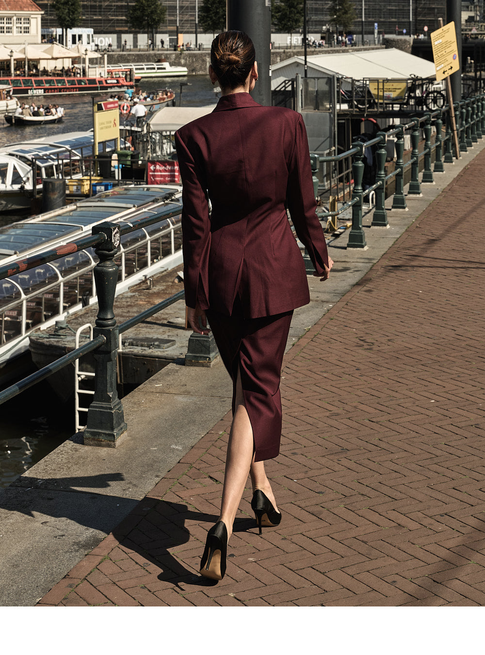 This autumn-inspired jacket and skirt set is perfect for fall.