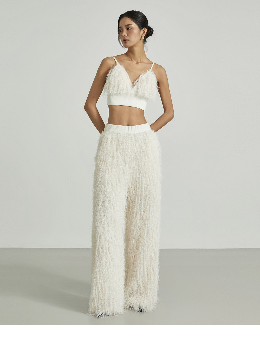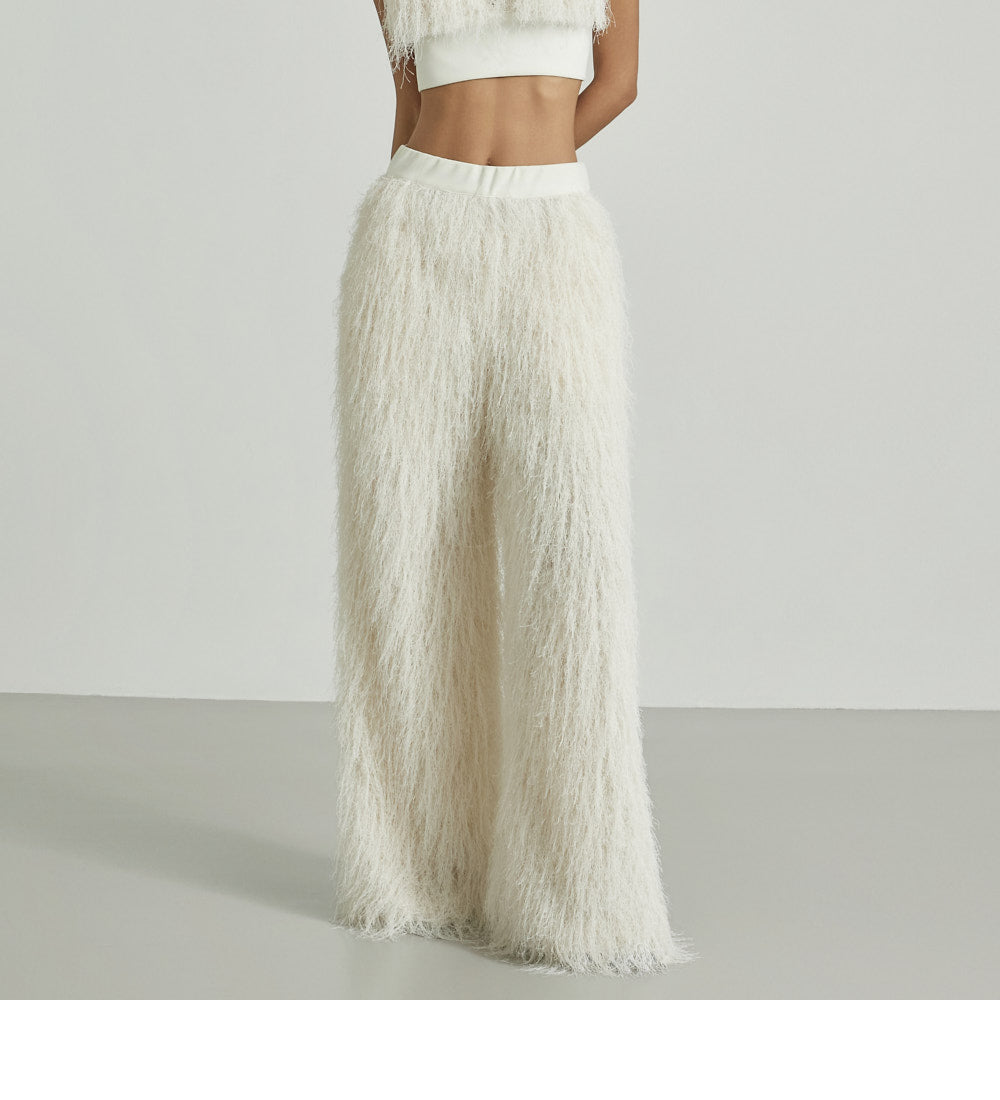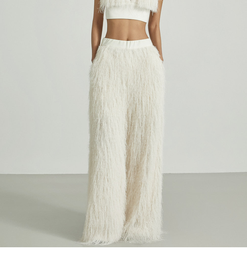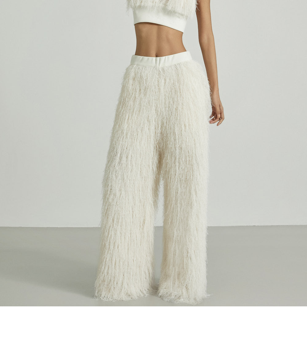 The pants are long and wide-fitting, creating a natural, slim leg silhouette,