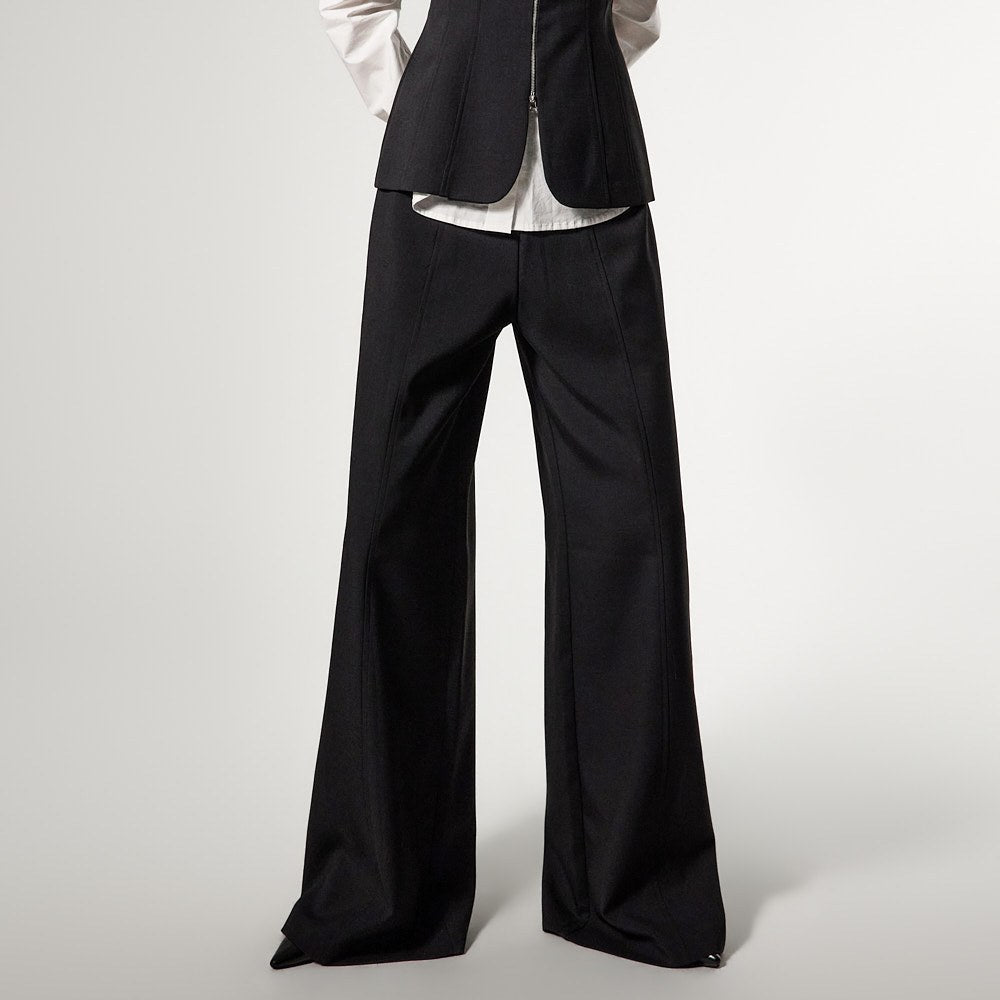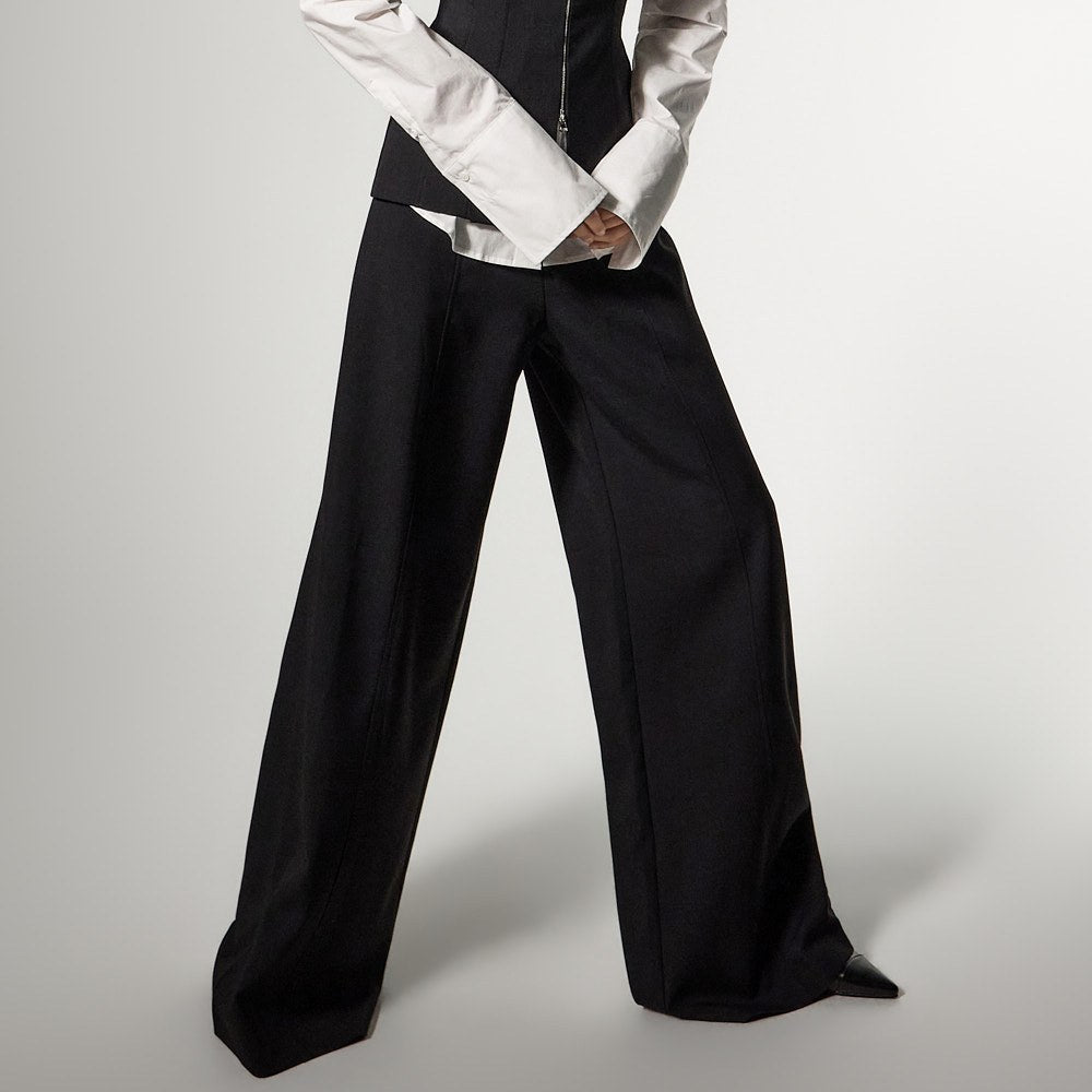 The wide fit, which falls naturally along the hip line, creates a sophisticated silhouette.