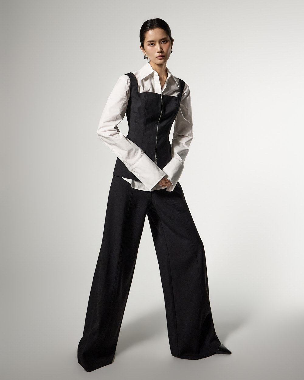 We recommend this item for styling alone with minimalist tops, as well as for completing a modern office look or a stylish formal look when worn as a set.