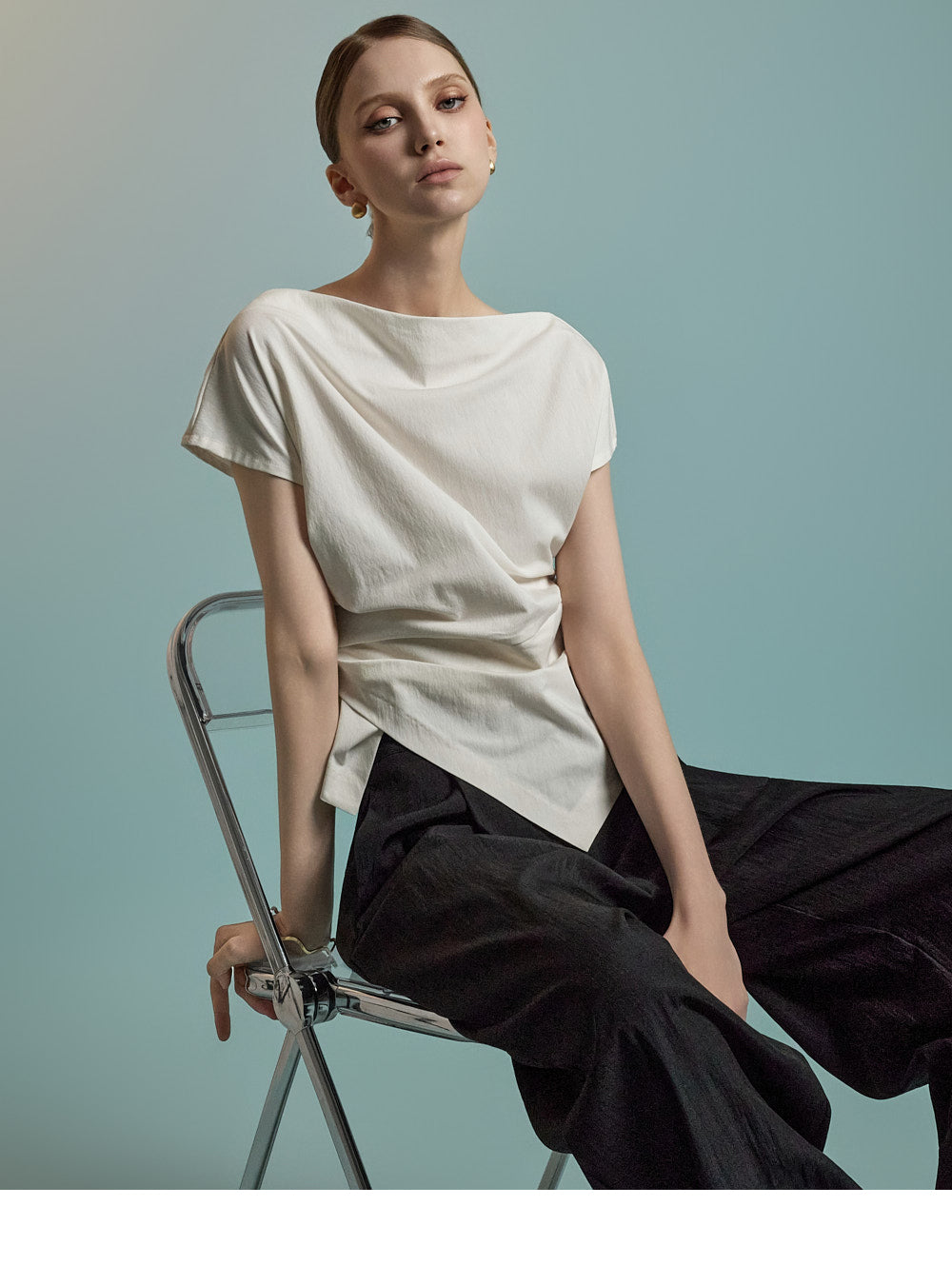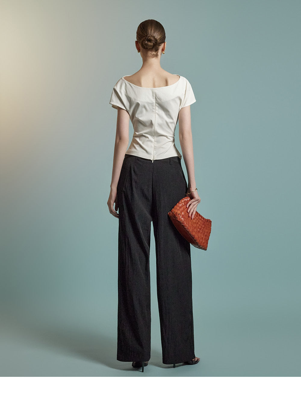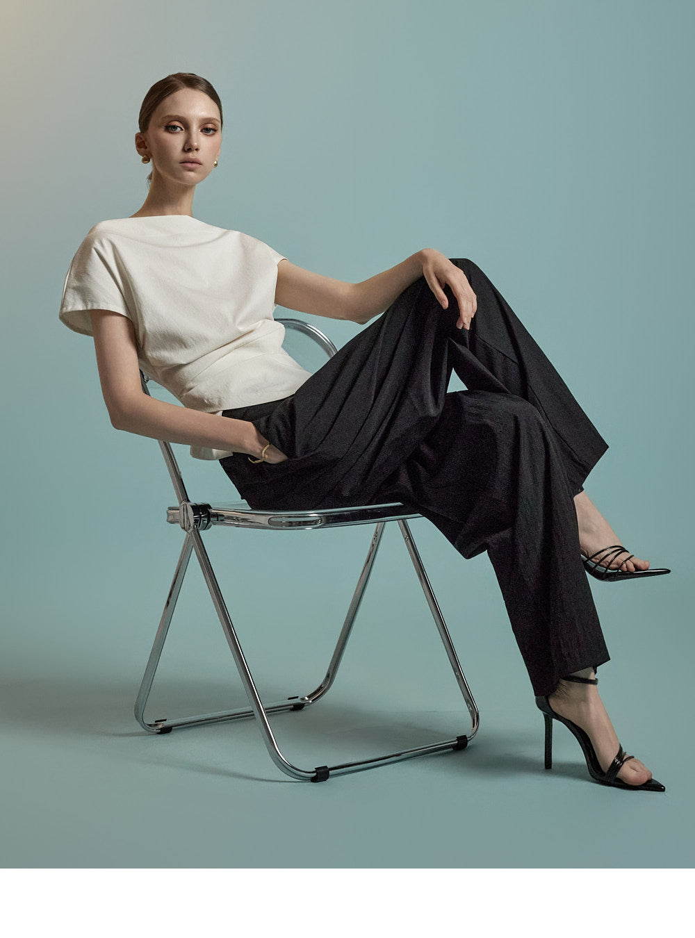 while the boat neckline delicately highlights the neckline for a feminine touch.
