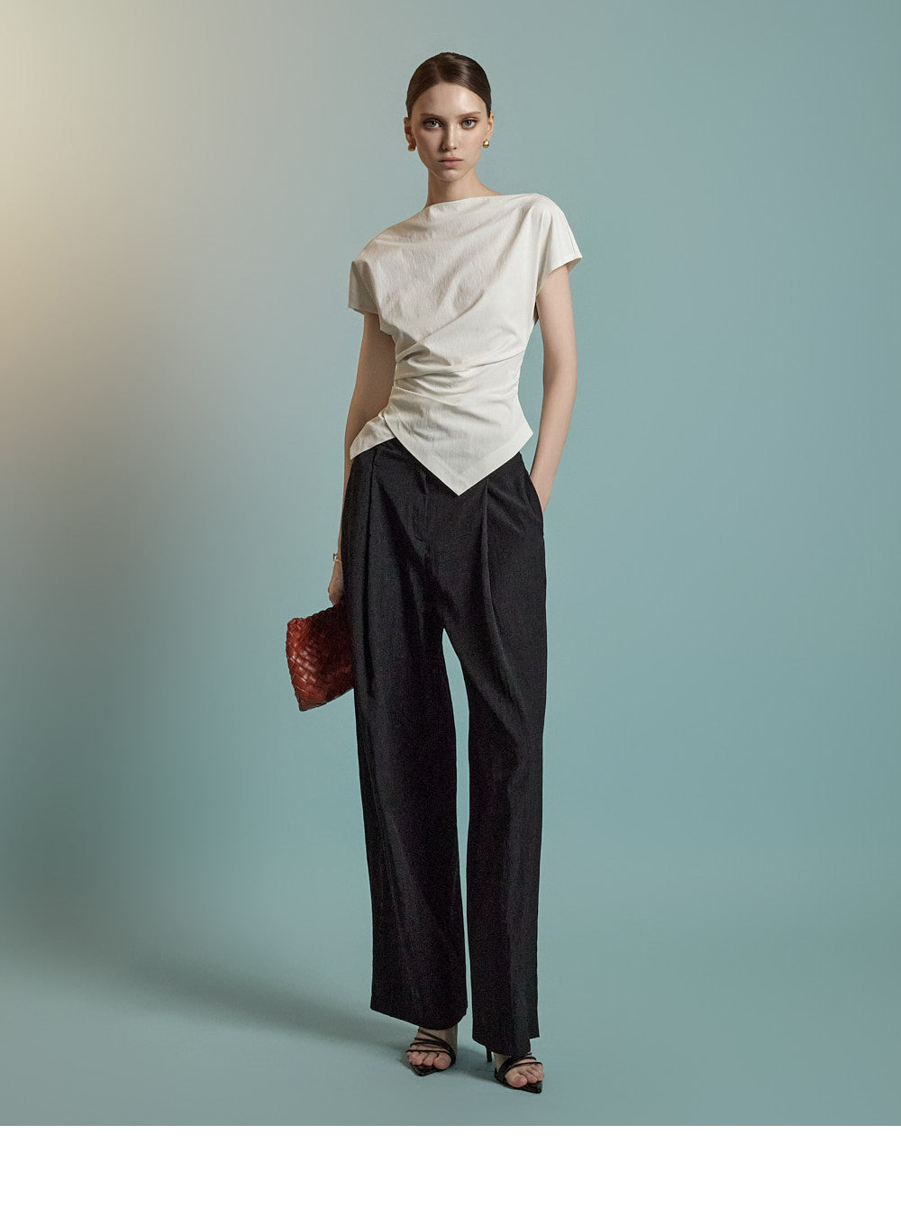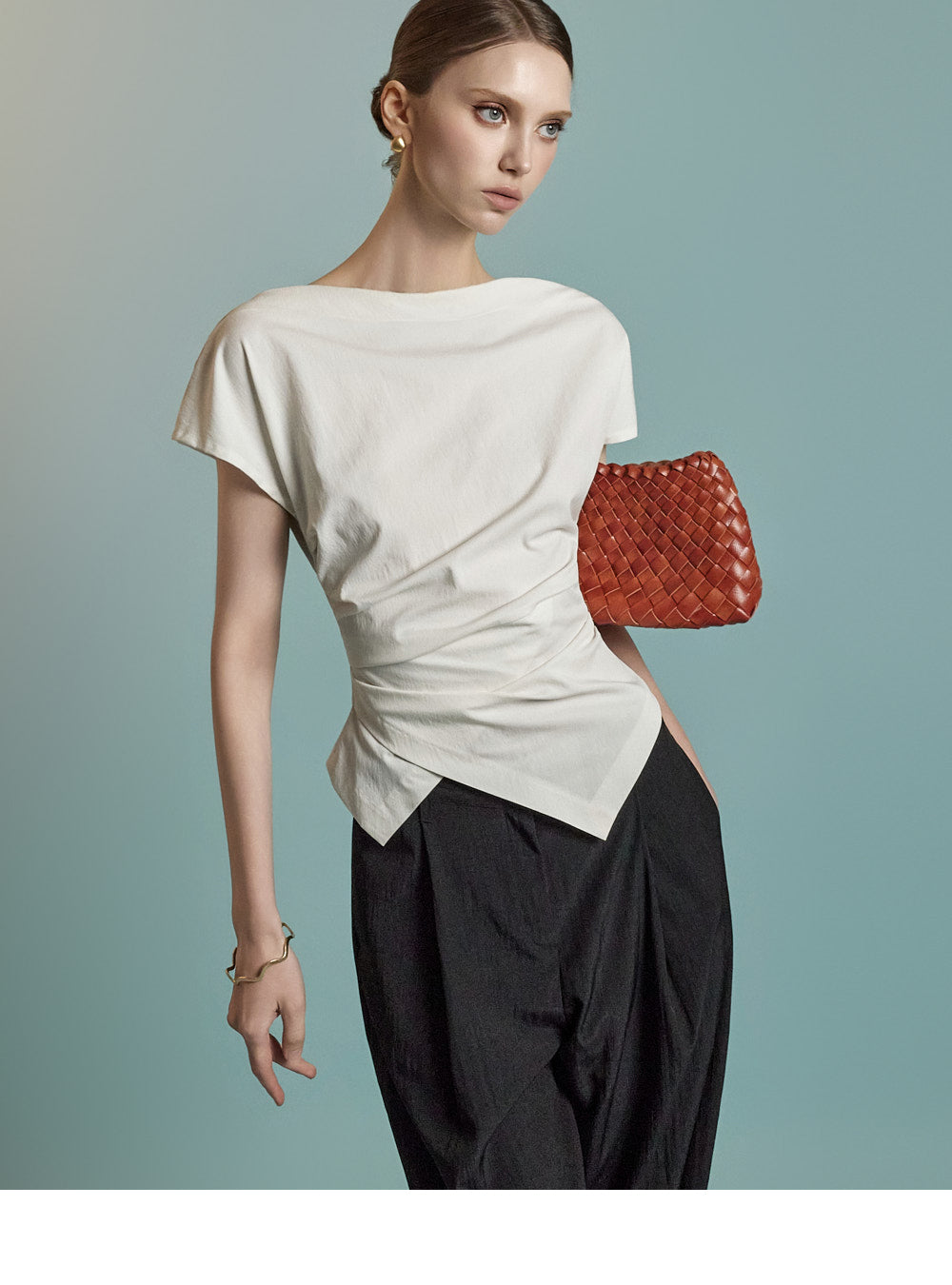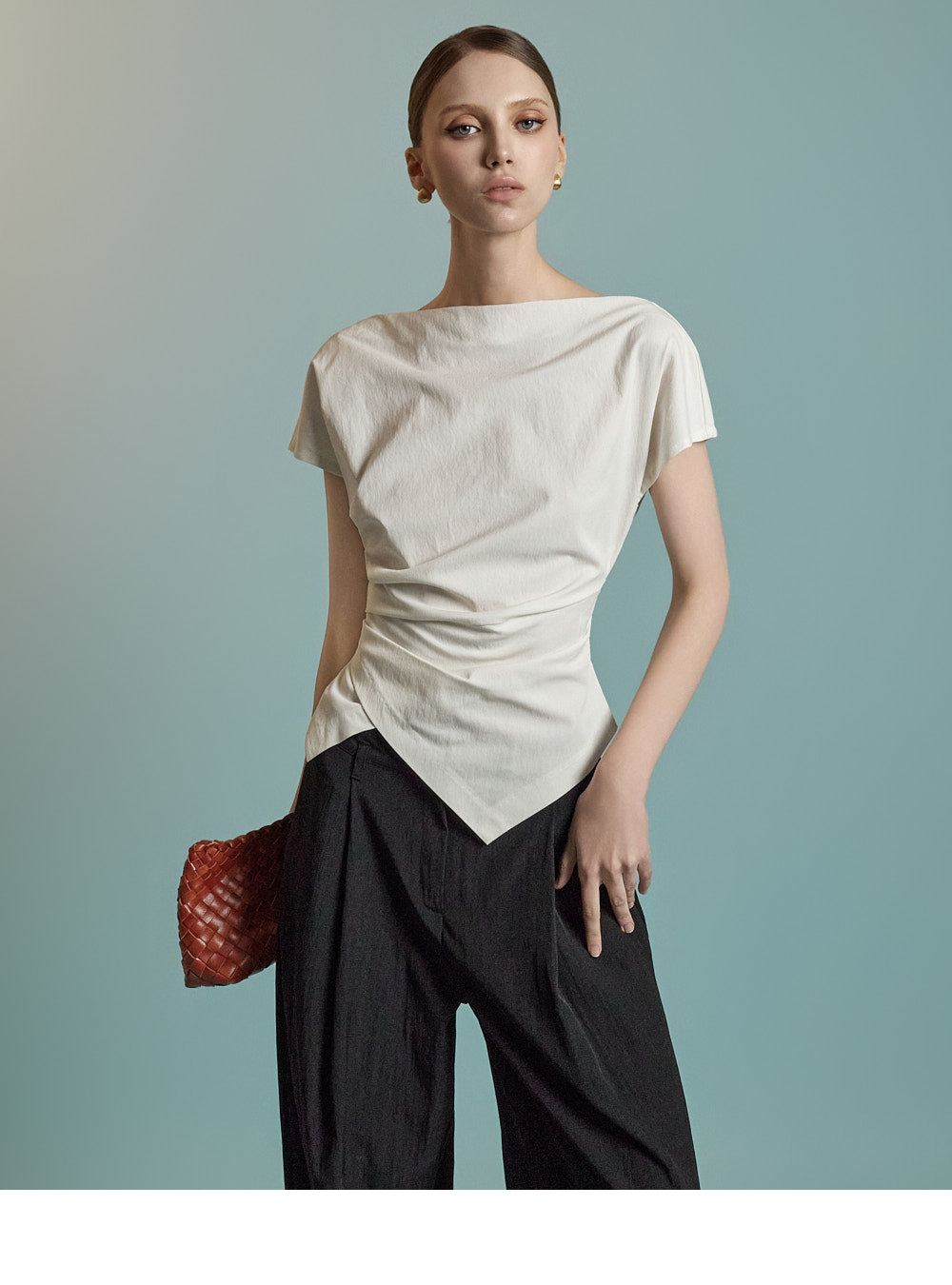 while the boat neckline delicately highlights the neckline for a feminine touch.