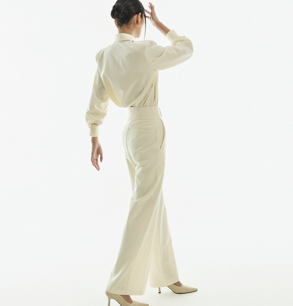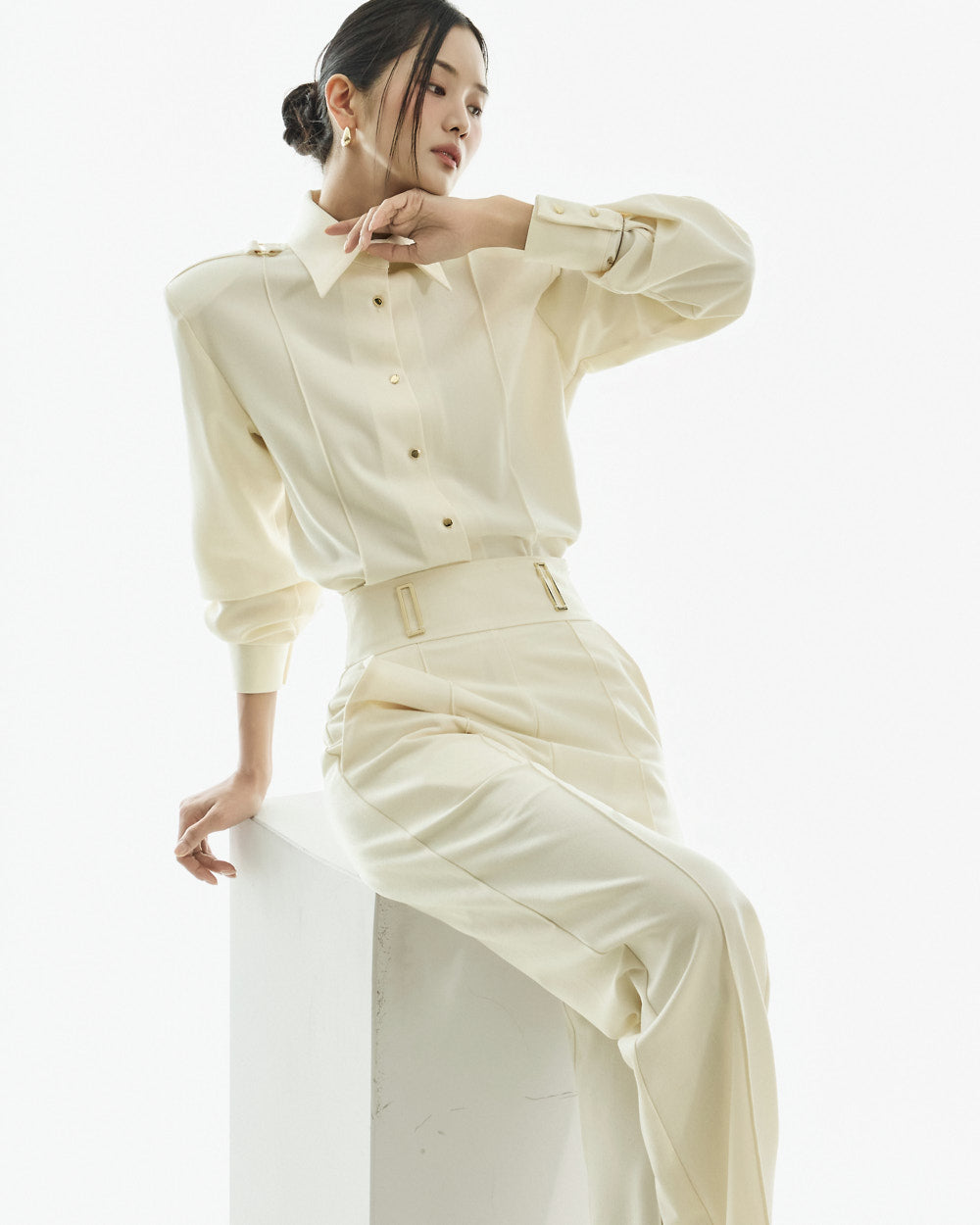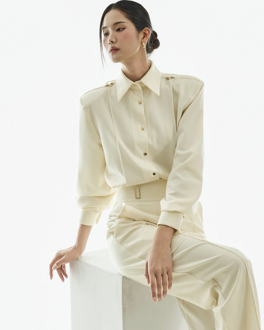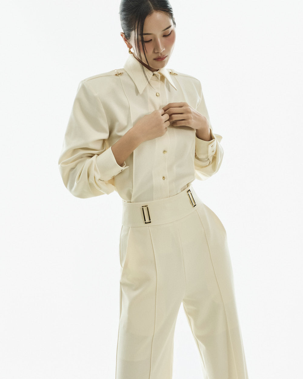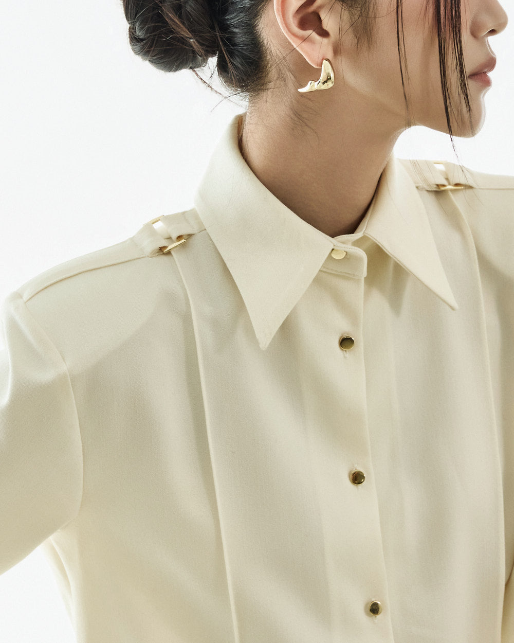 This classic epaulette blouse is perfect for a modern and elegant office look,