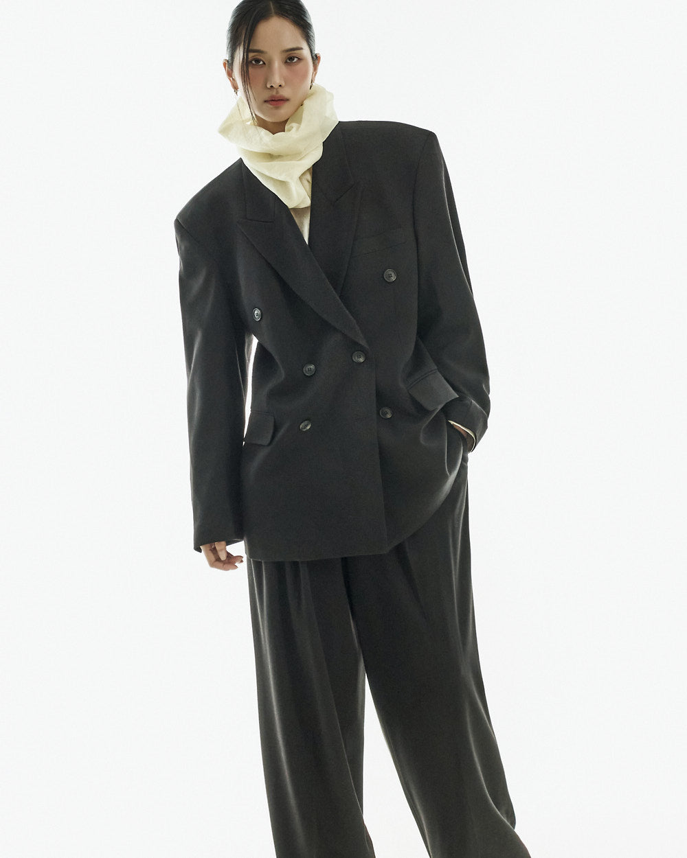 The 173cm model is wearing size ONE, color IVORY.