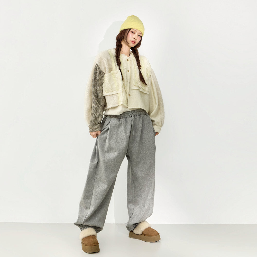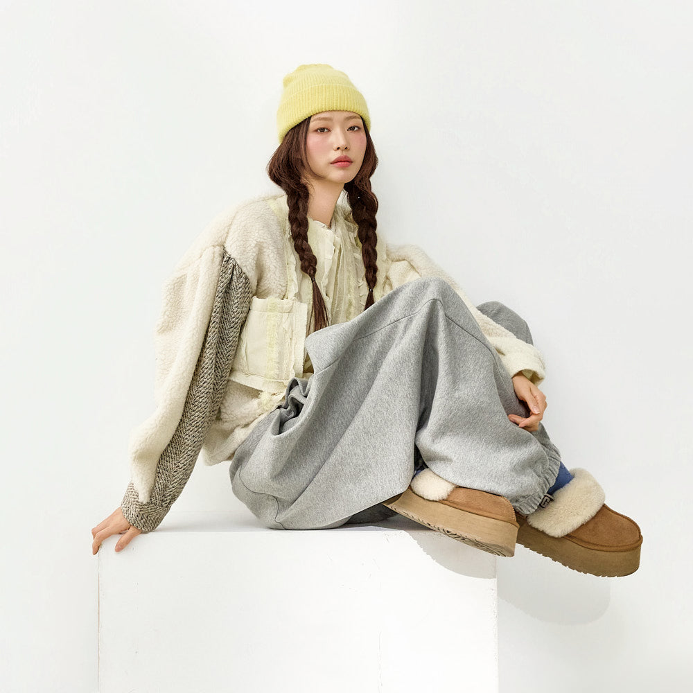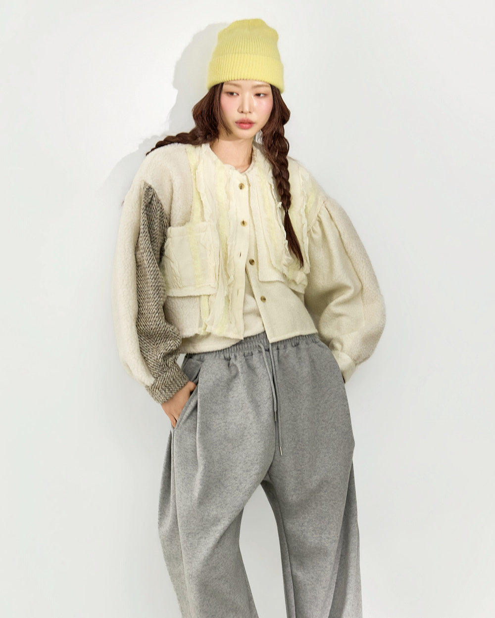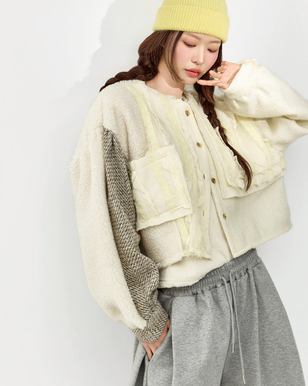 The fabric mix of frill details and knit fabric