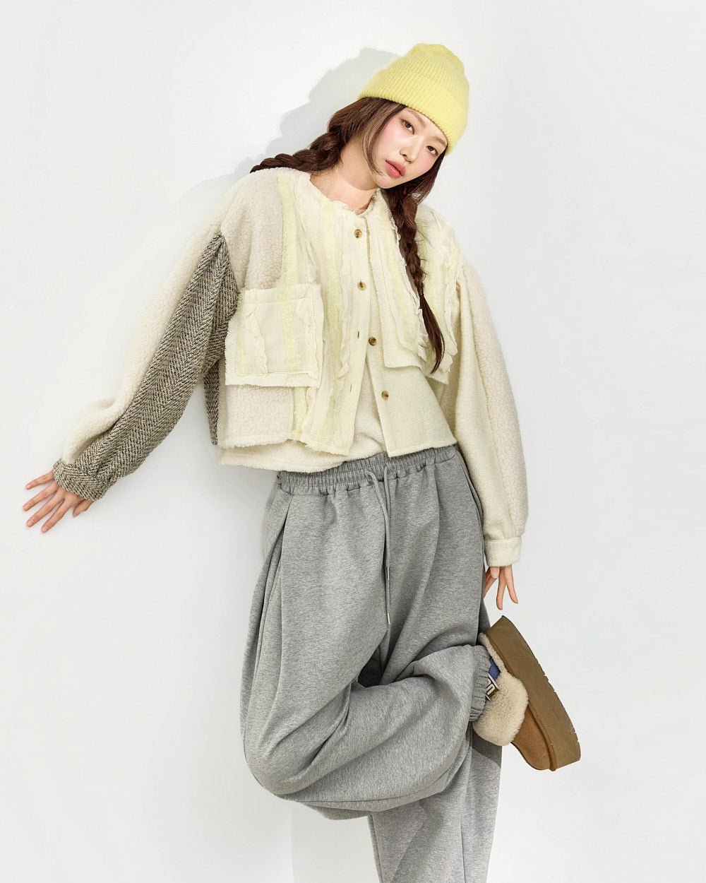 The 171cm model is wearing size ONE, color IVORY.