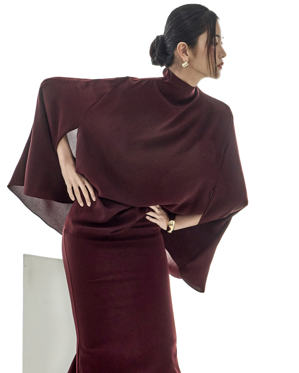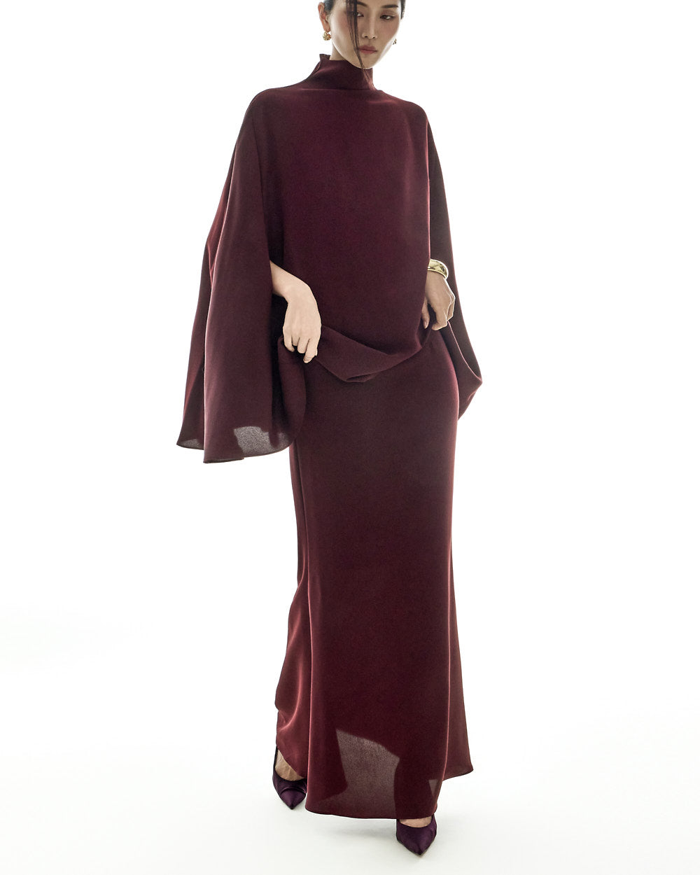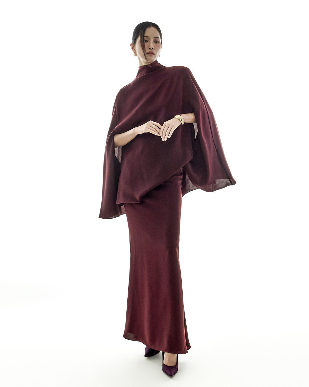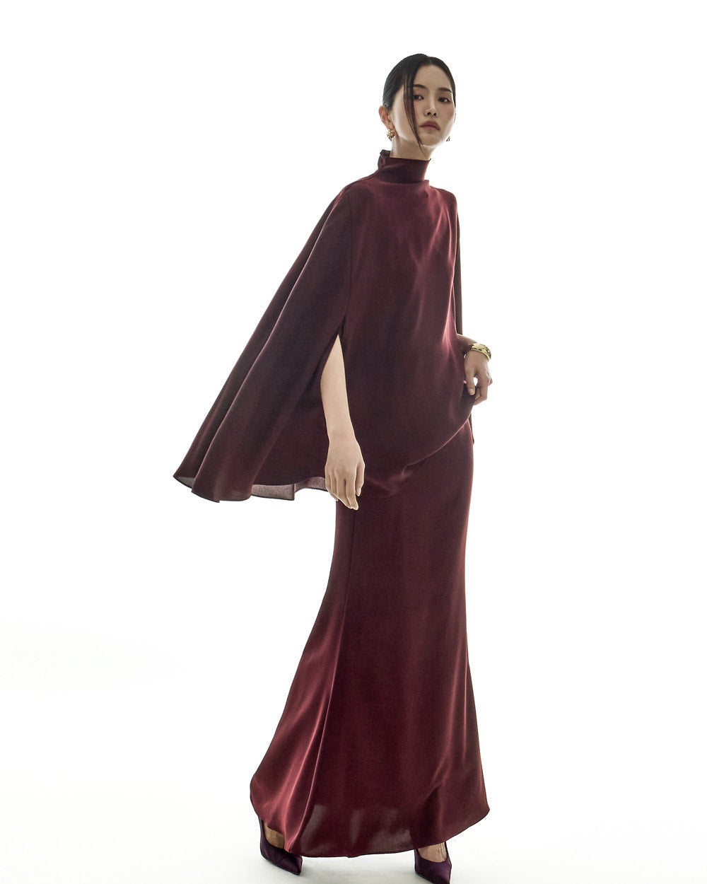 and the cape design offers a light, flowing silhouette.