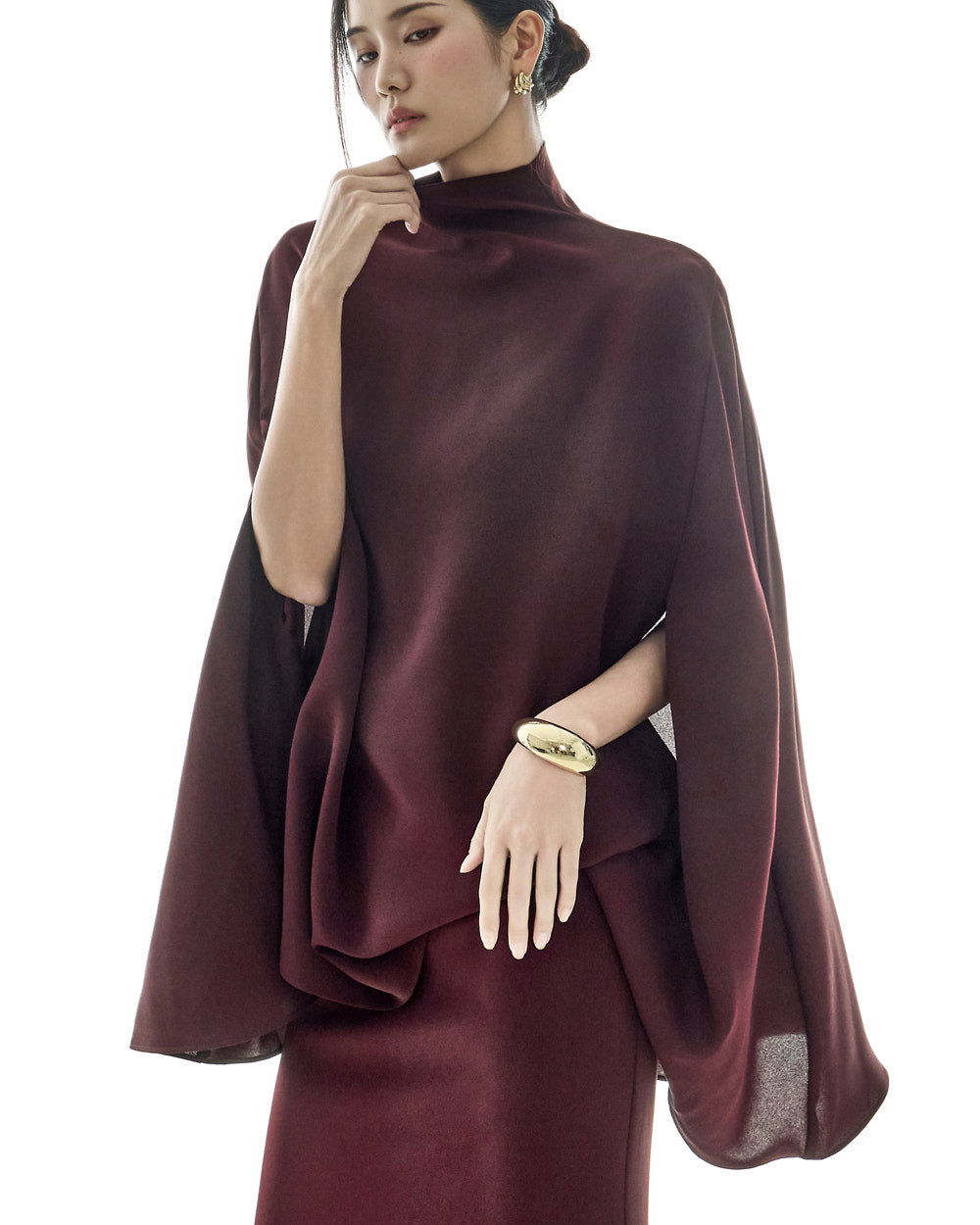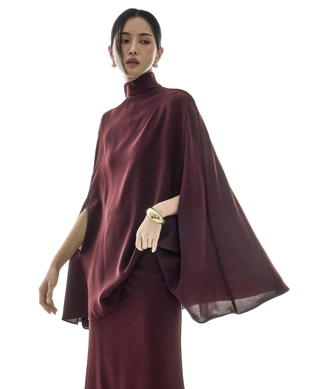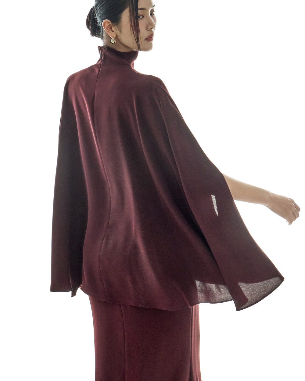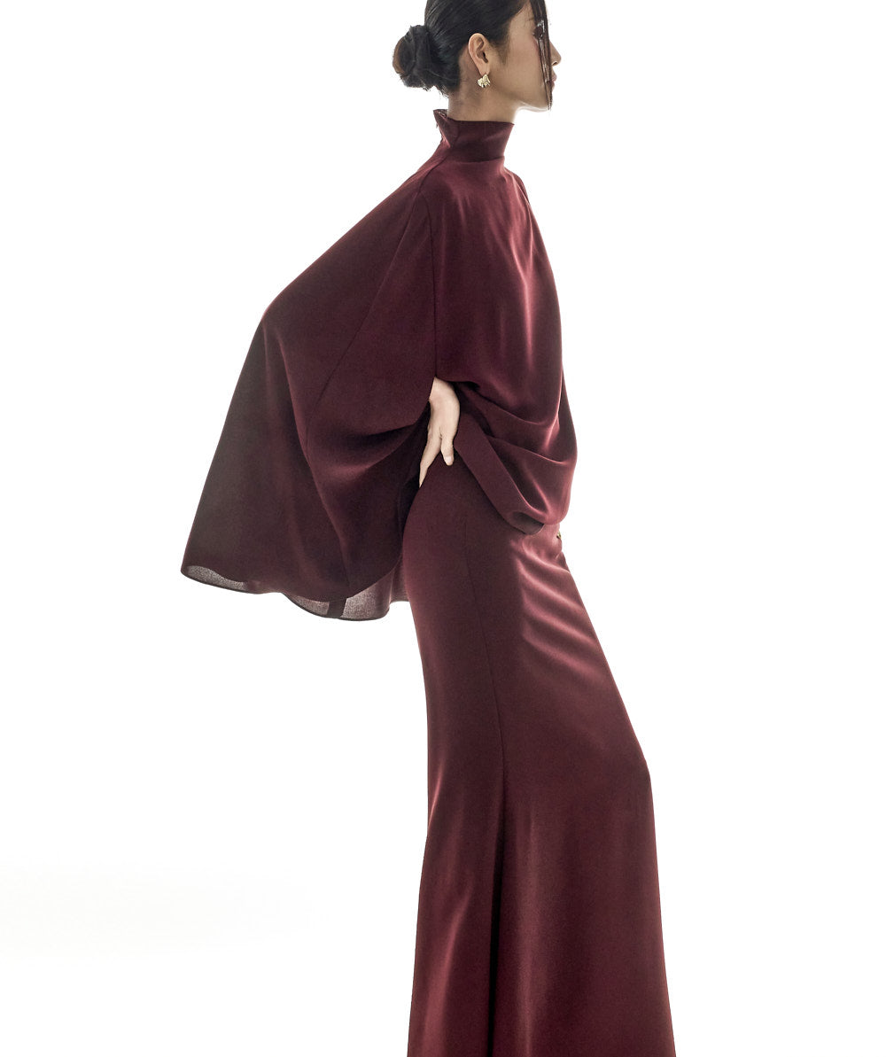 This cape blouse exudes elegance.