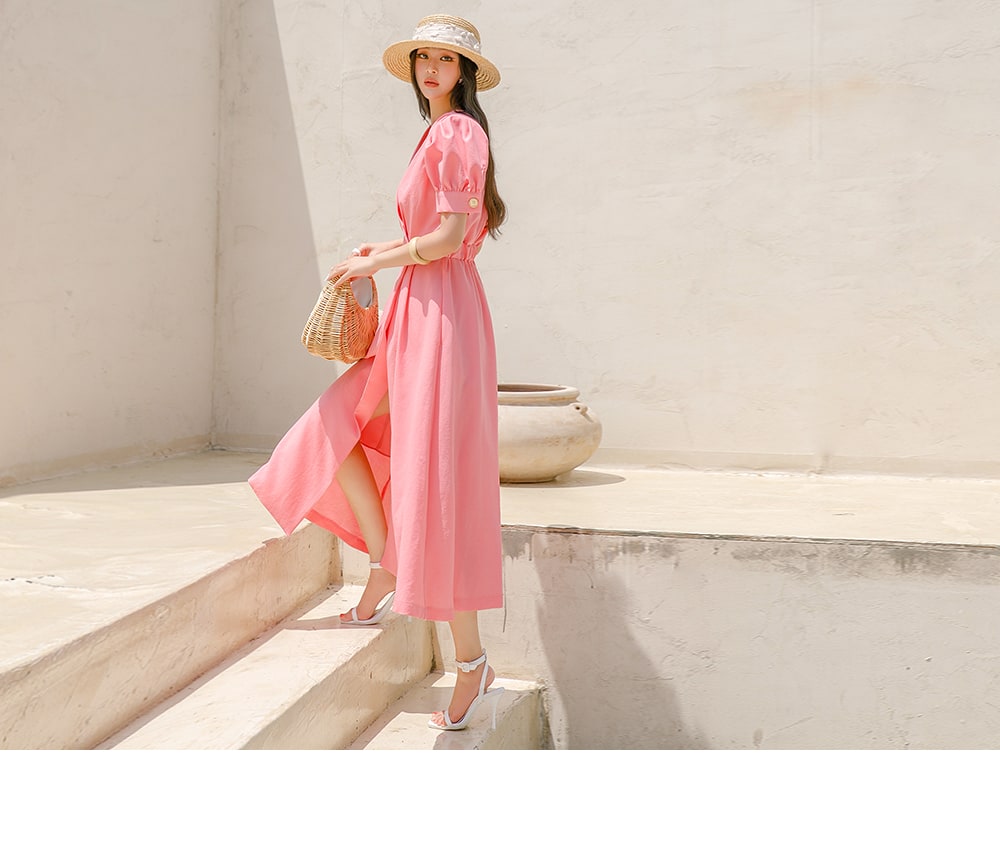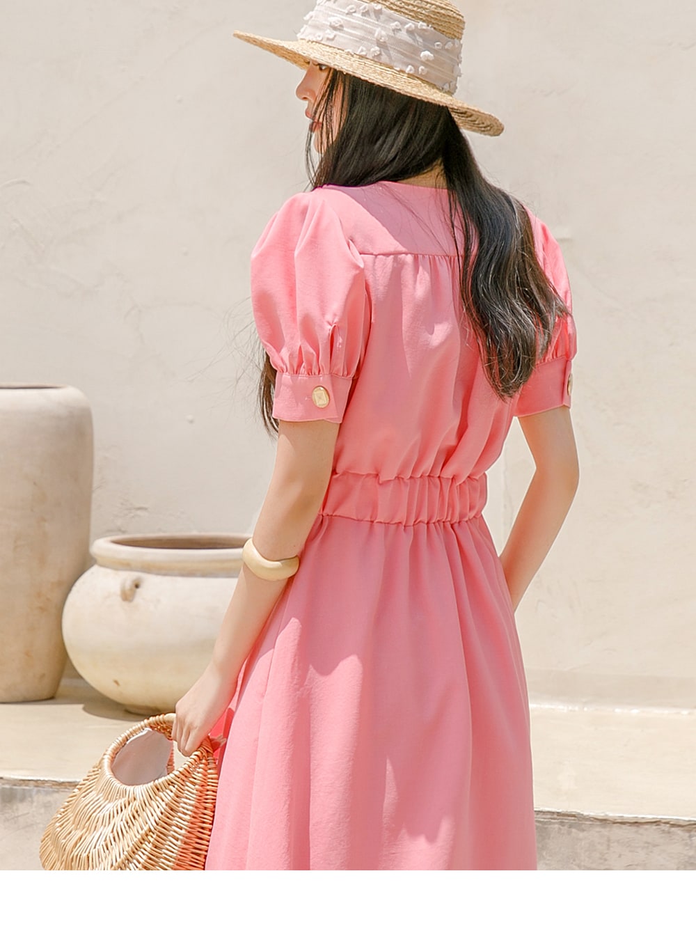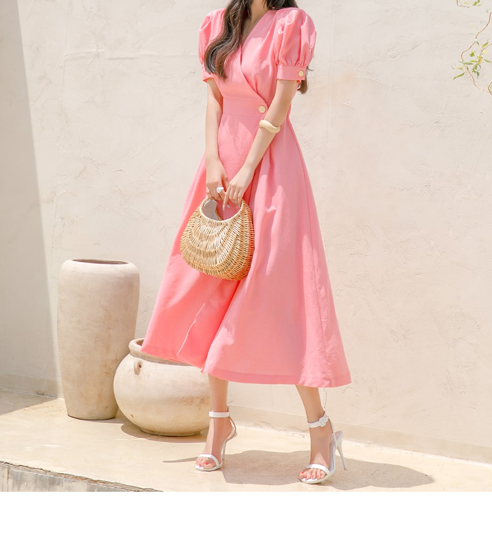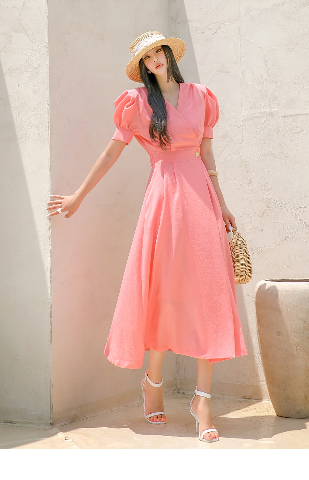 这款女性化的中长连衣裙采用柔软的涤纶制成,
