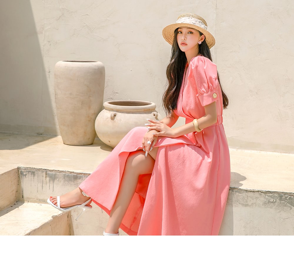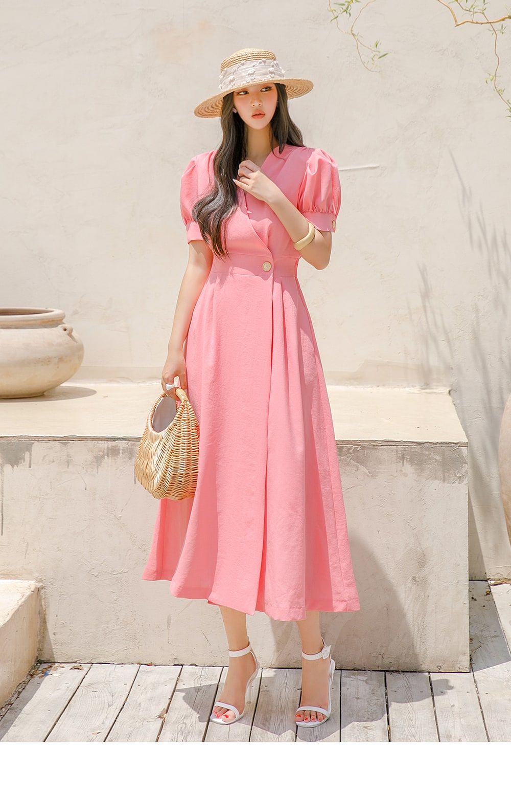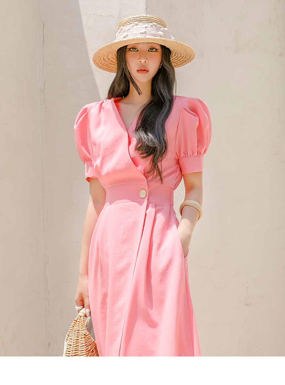蓬松的泡泡袖搭配垫肩,打造出结构感十足的廓形,